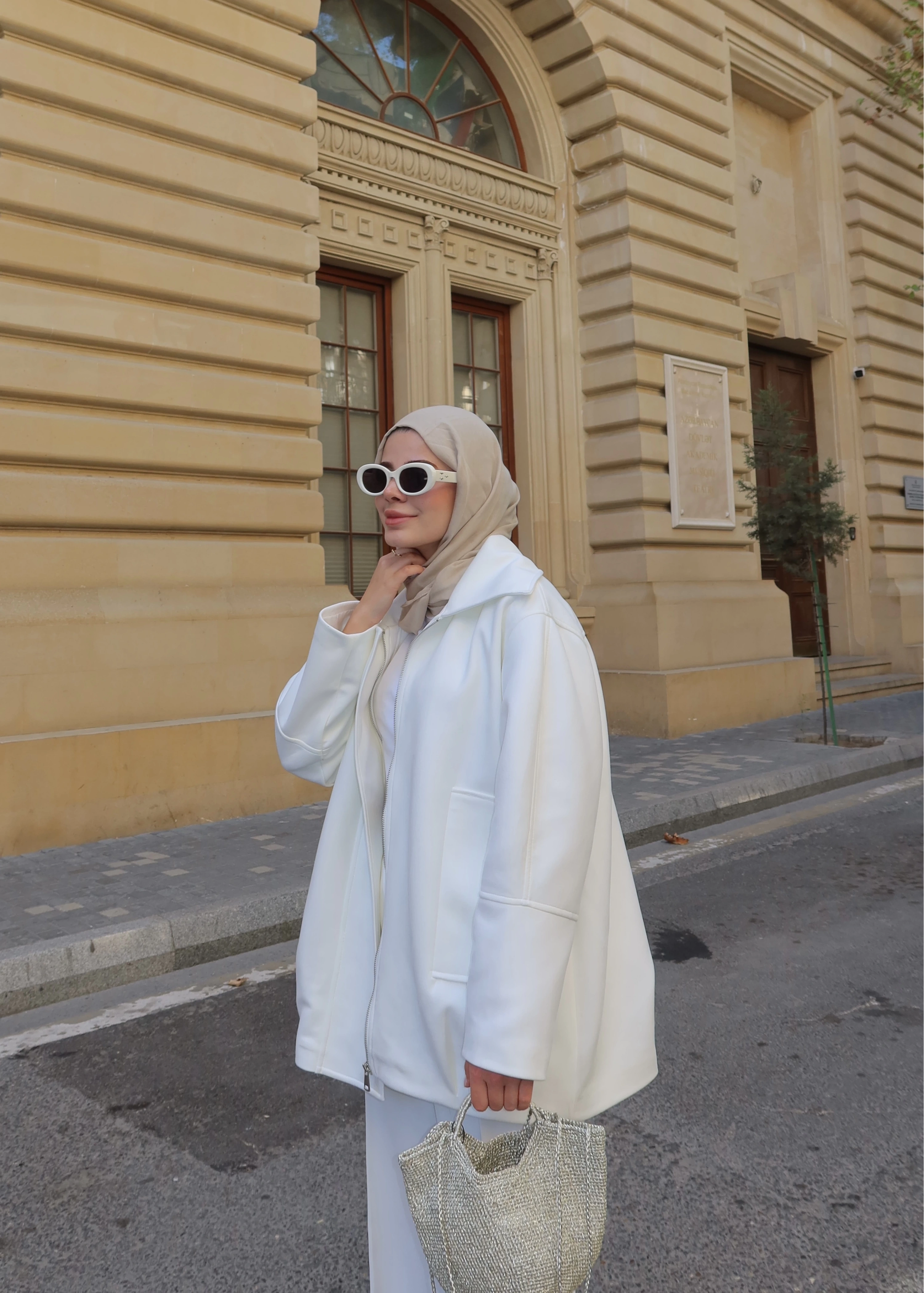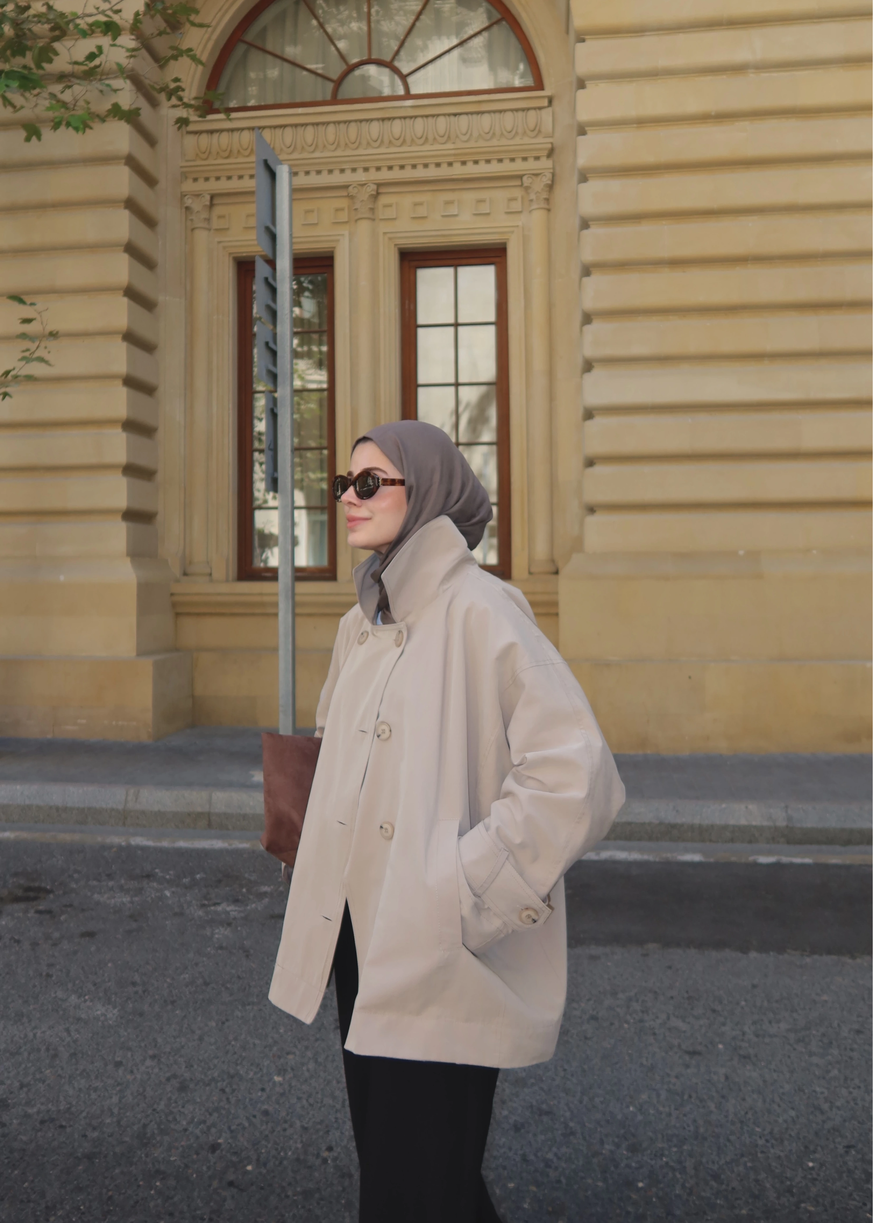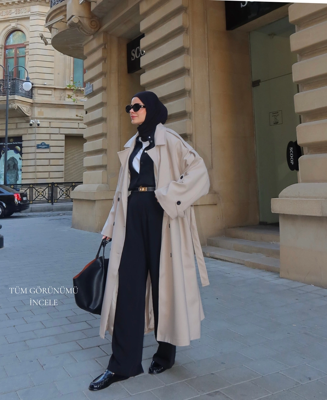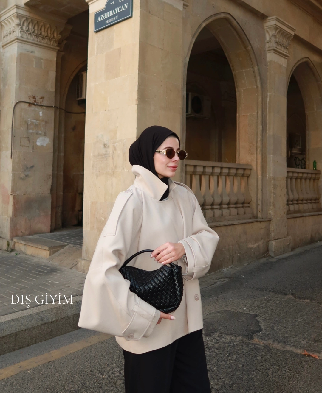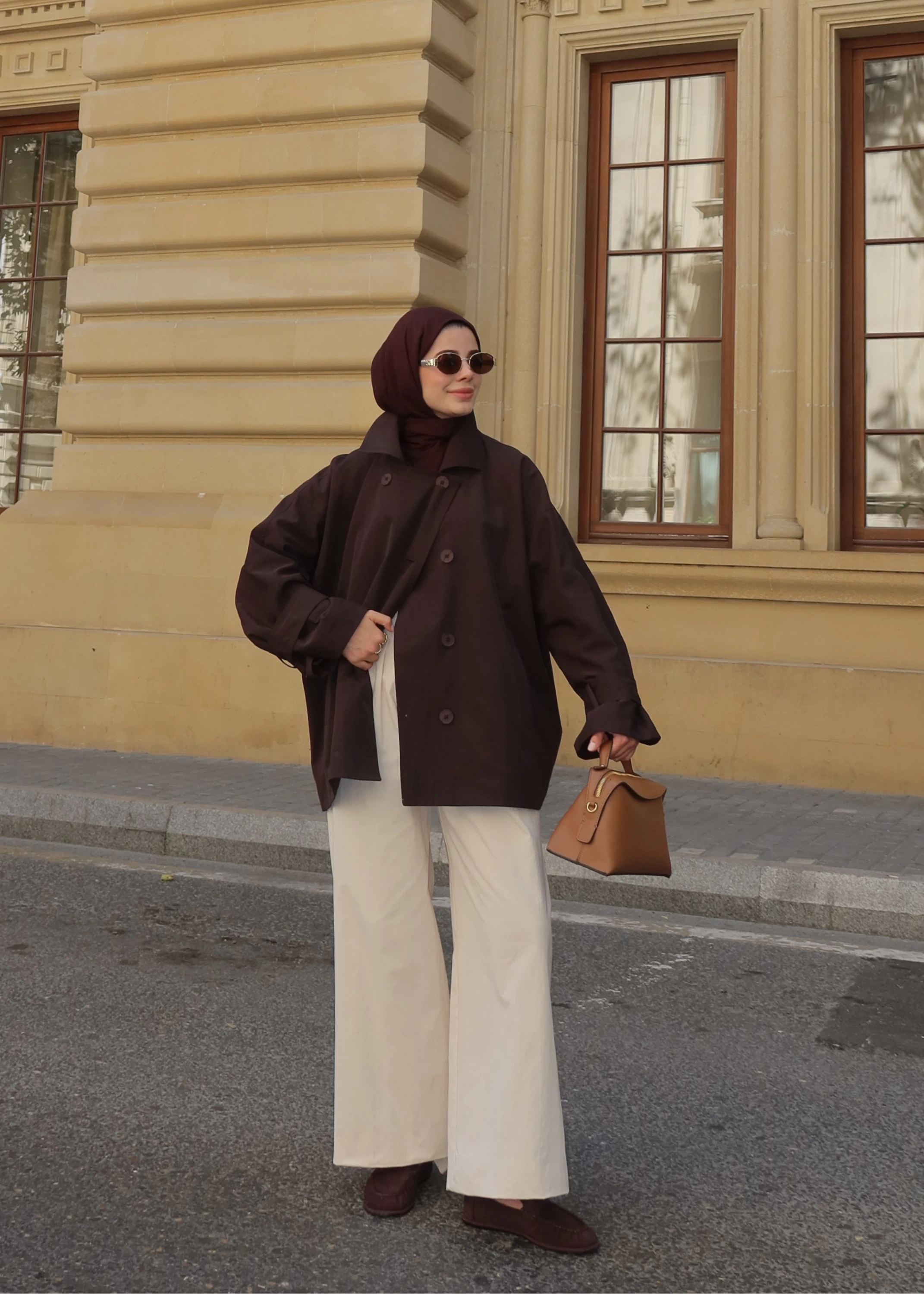 Oversize Premium Kalite Kaban Bej // Siyah Düğmeli