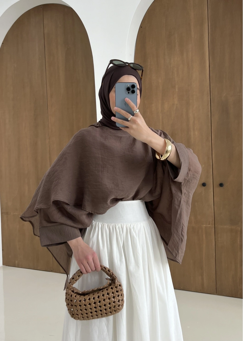 5026 Ucuşan Pelerin Bluz Kahve
