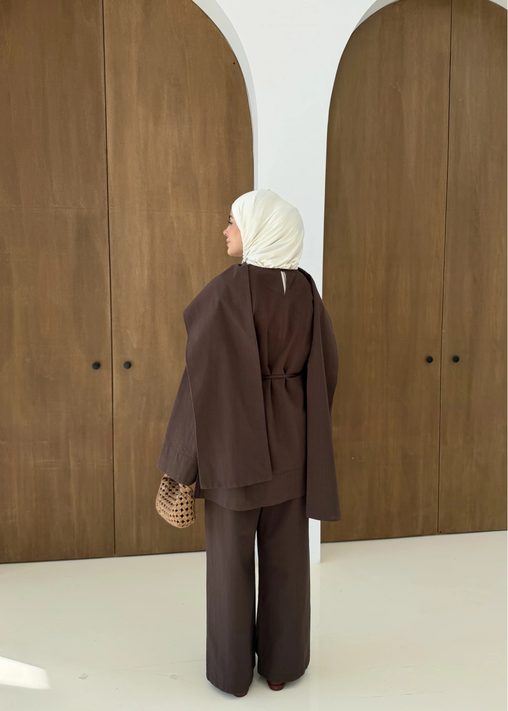 8999 ŞAL YAKA ETEKLİ KETEN TAKIM kahve