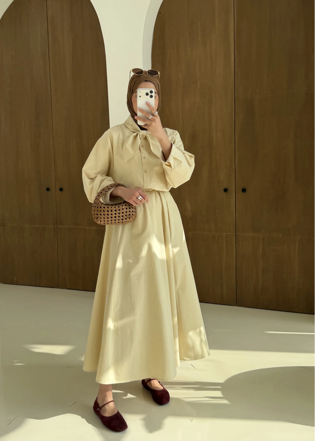 Bağlamalı yaka, uzun kol, bağlamalı, düğmeli, normal kalıp.