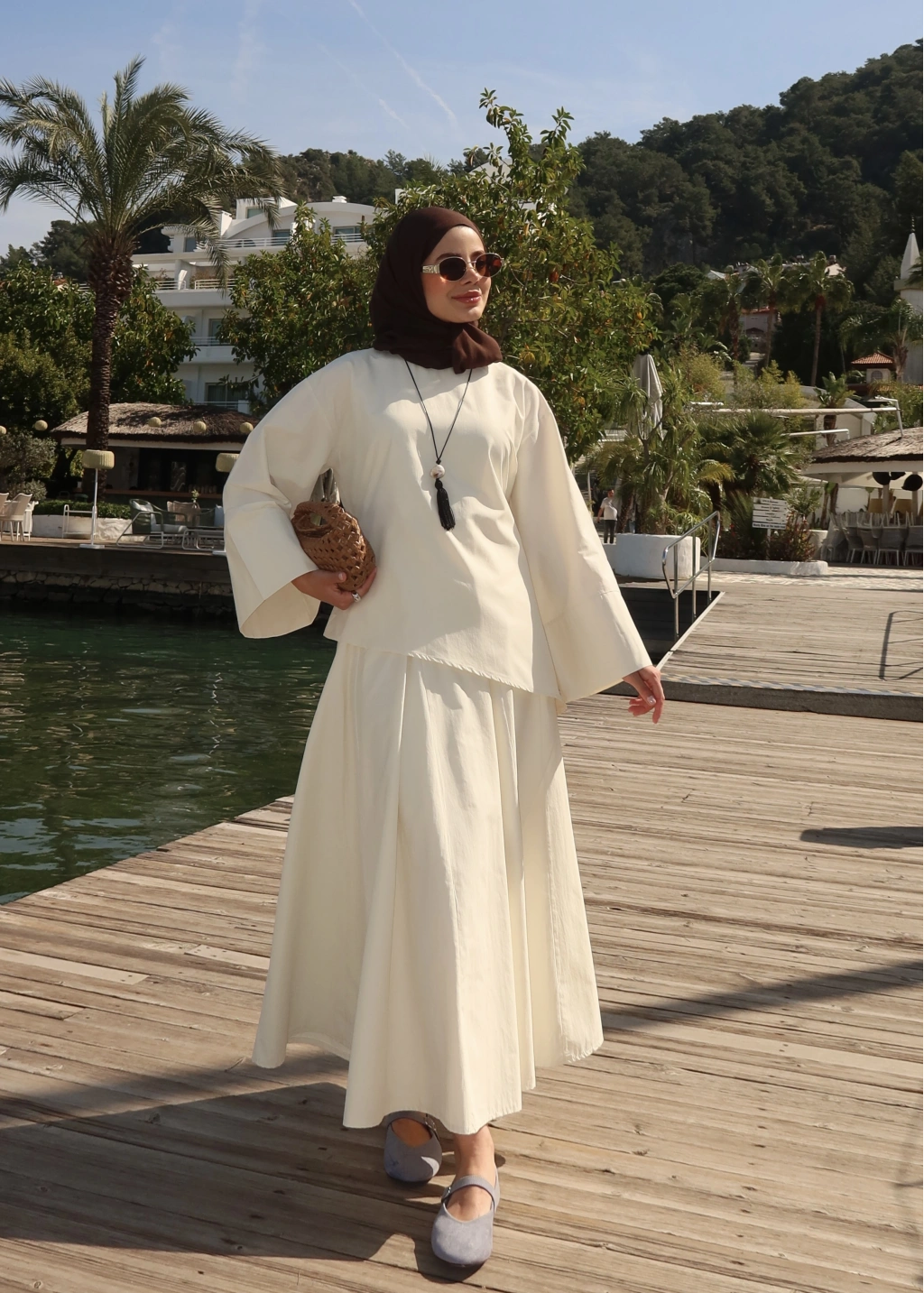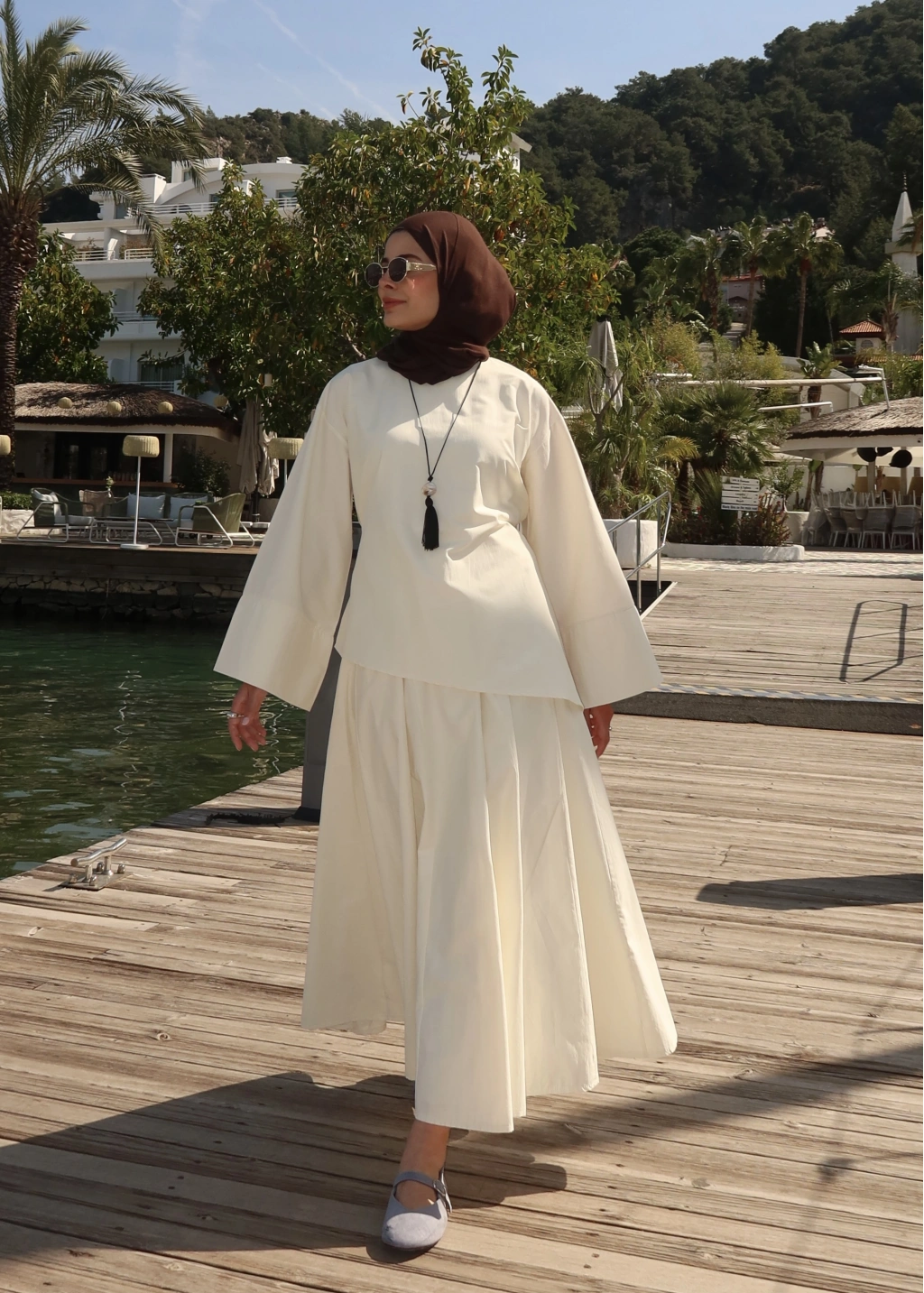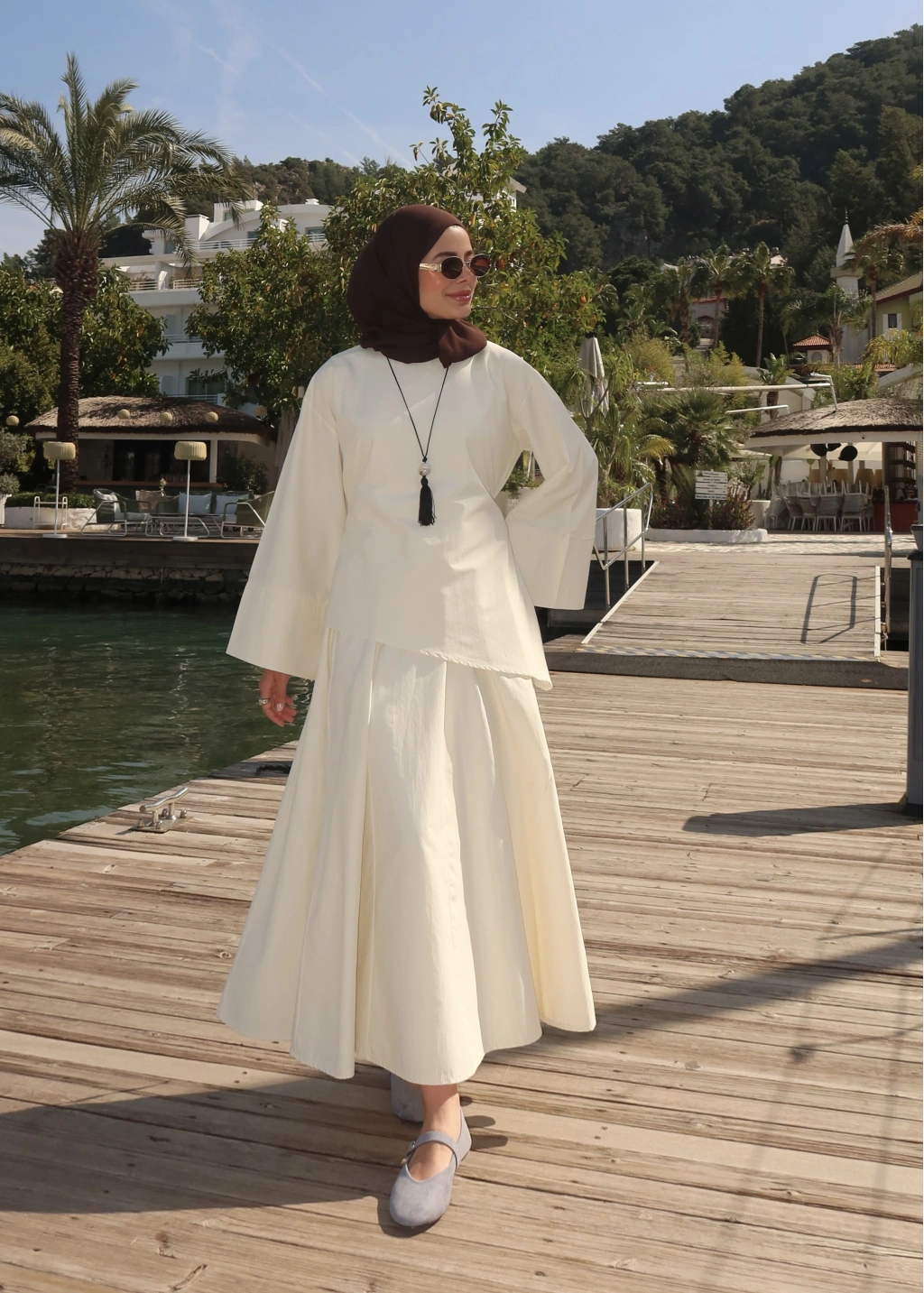 6025 Belden Bağlama Poplin Etekli Takım Vanilya