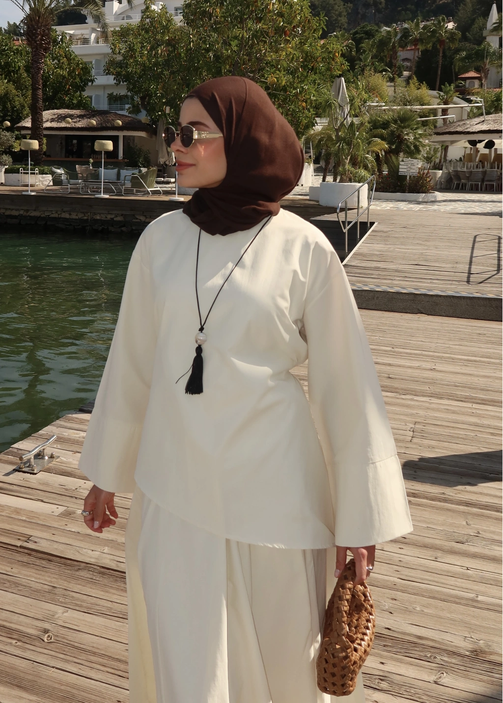 8999 ŞAL YAKA ETEKLİ KETEN TAKIM kahve