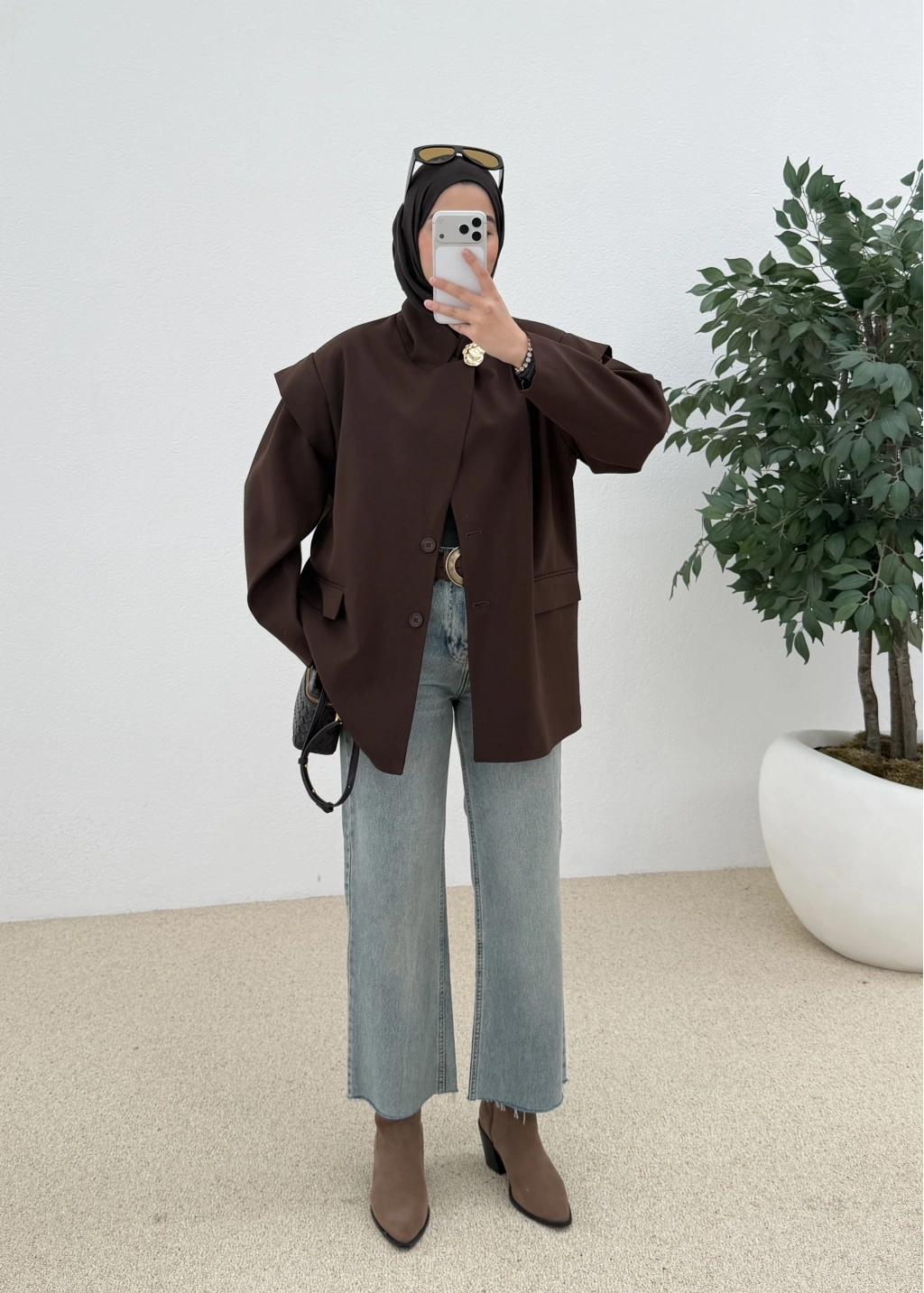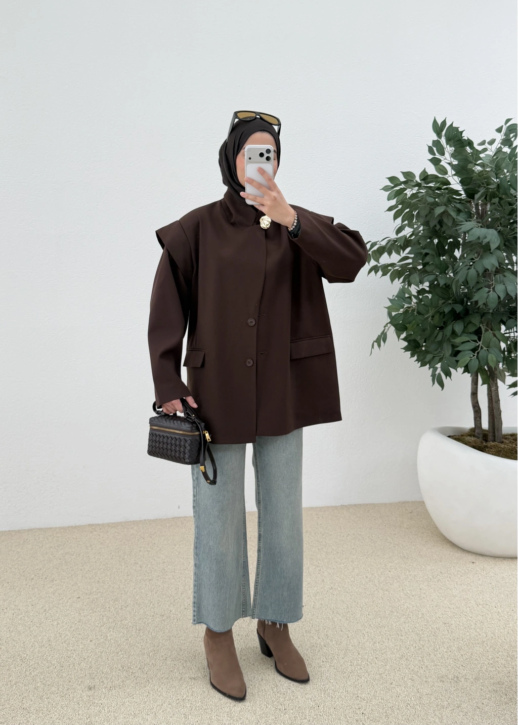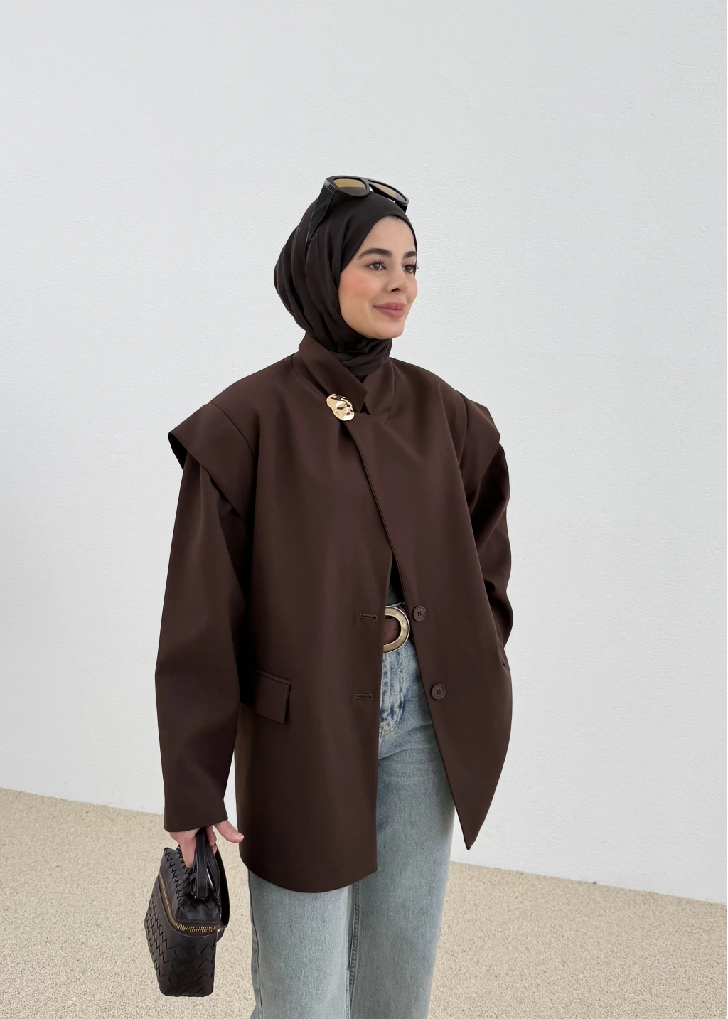 7637 Kol Detay Oversize Ceket Kahve