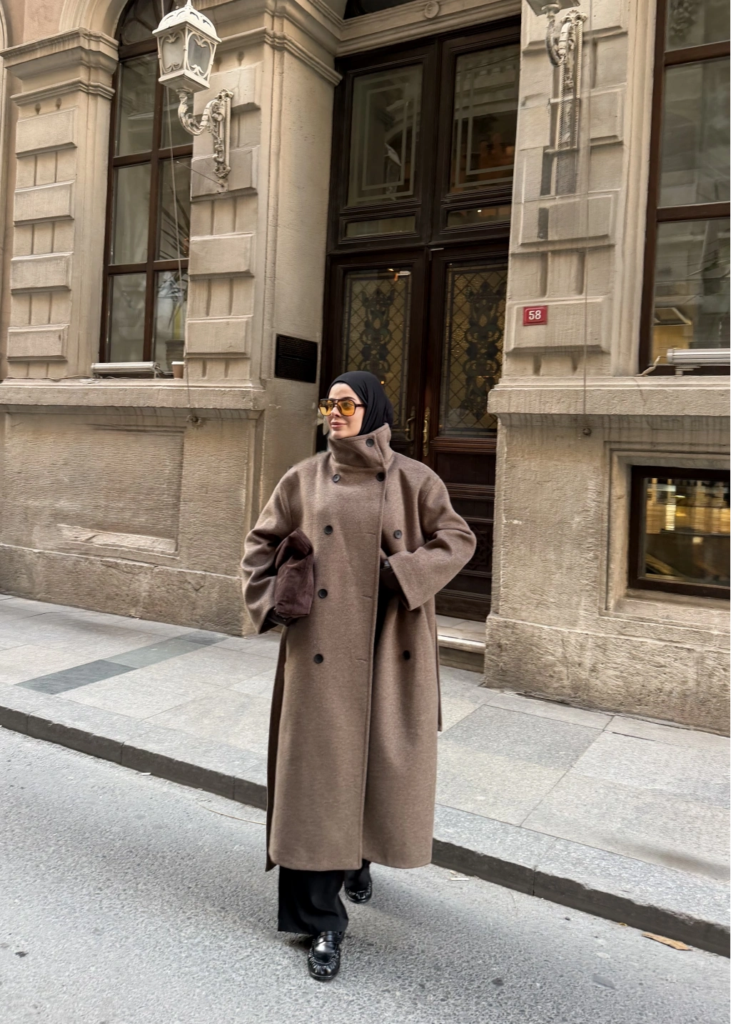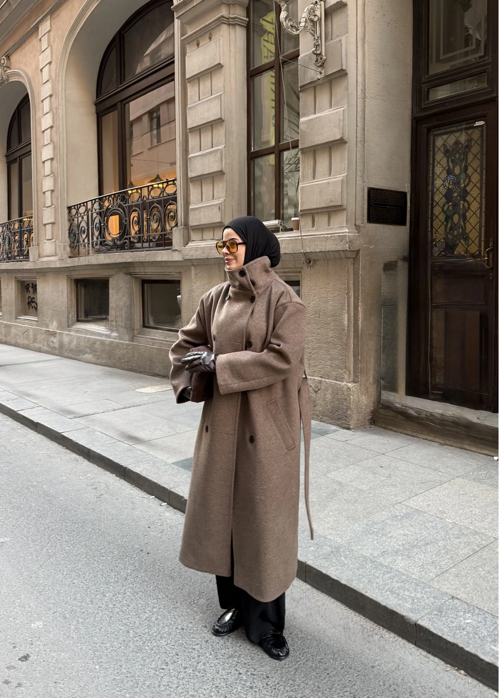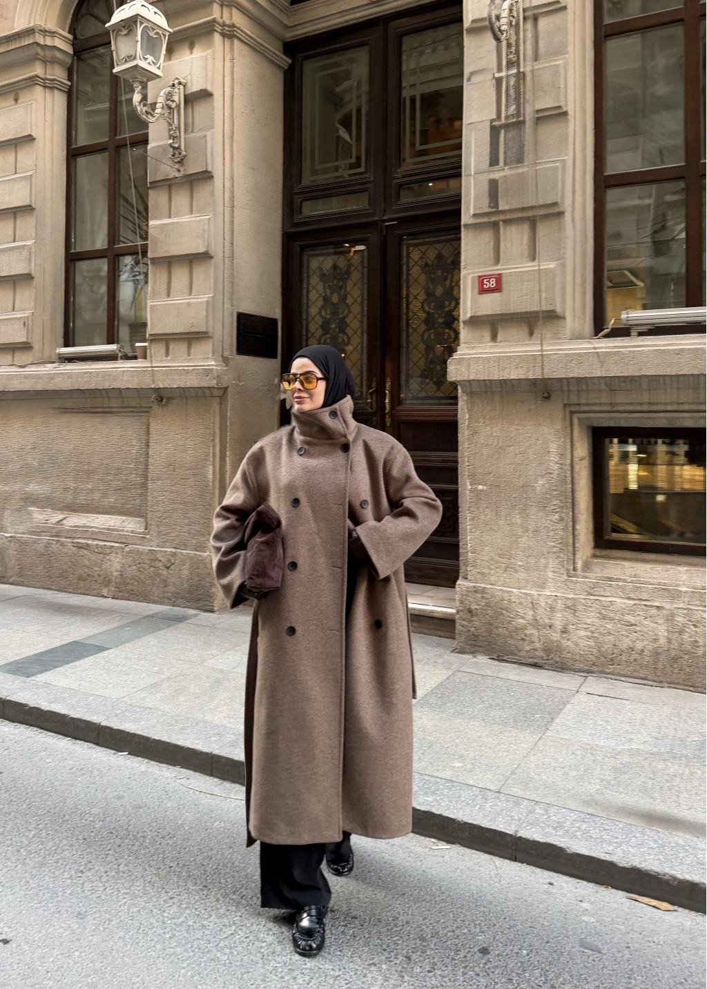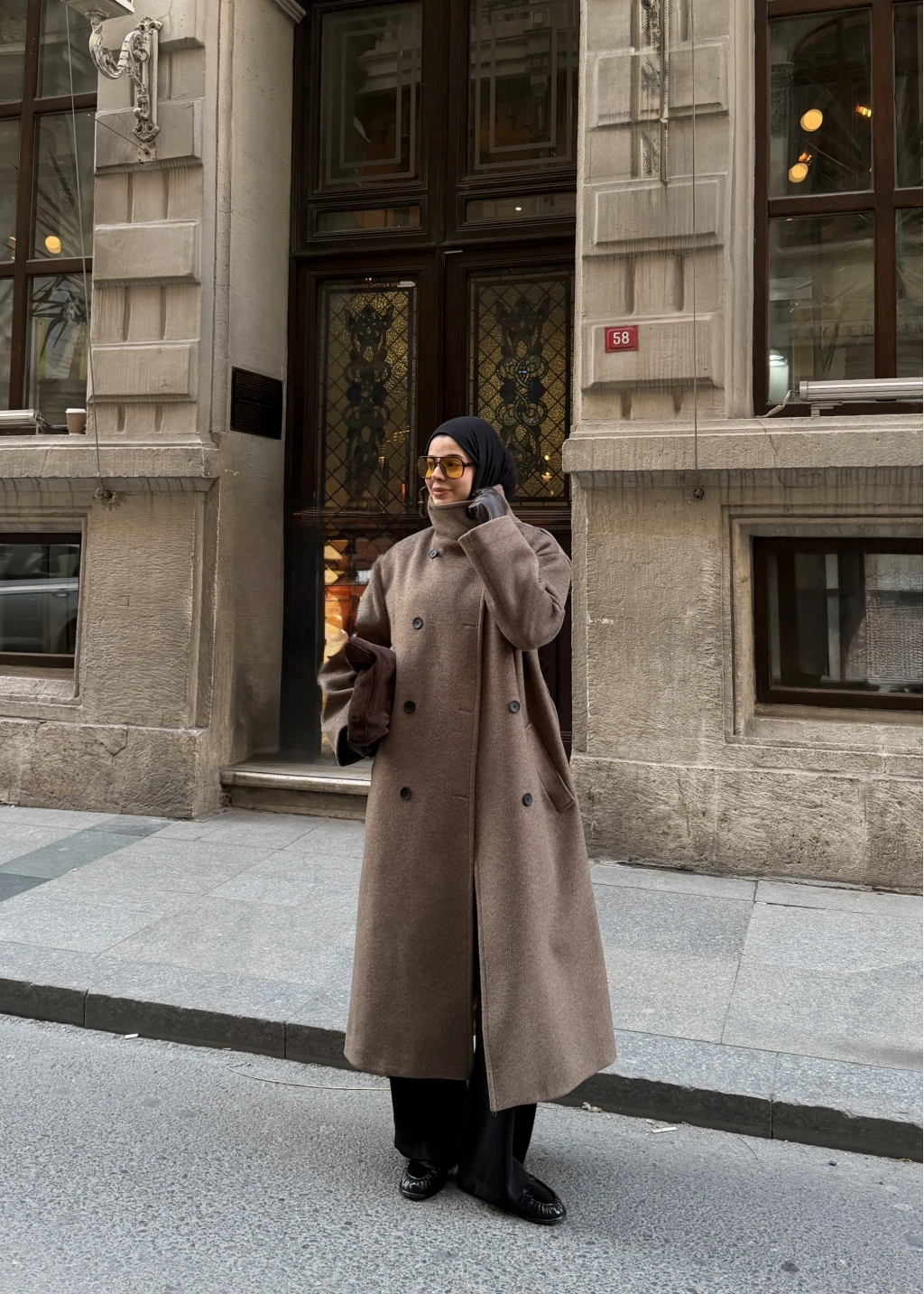 8 Düğmeli Ultra Yaka Kaban Kahve