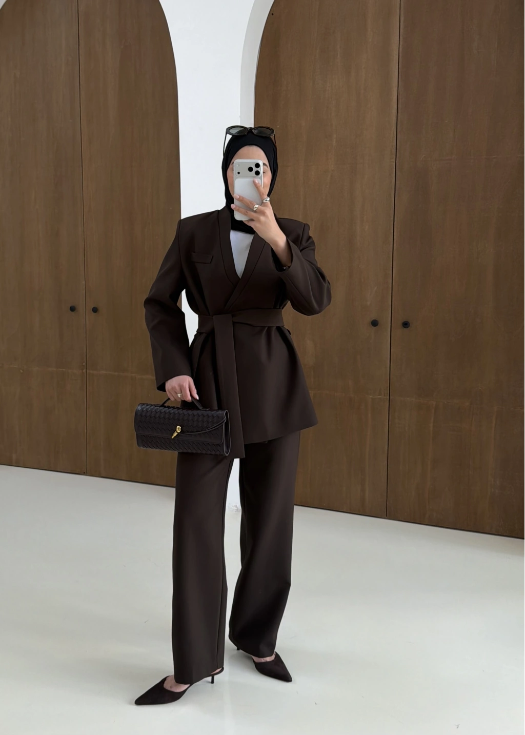 8868 Bağlamalı Ceket Pantolon Kahve