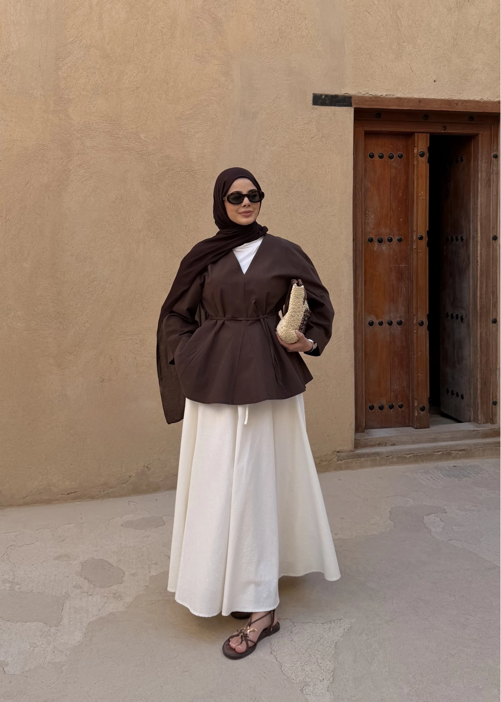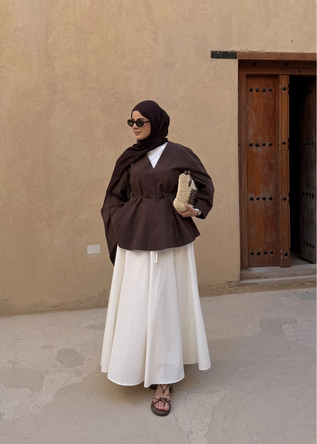 8999 ŞAL YAKA ETEKLİ KETEN TAKIM kahve