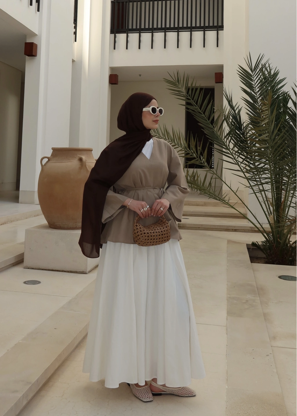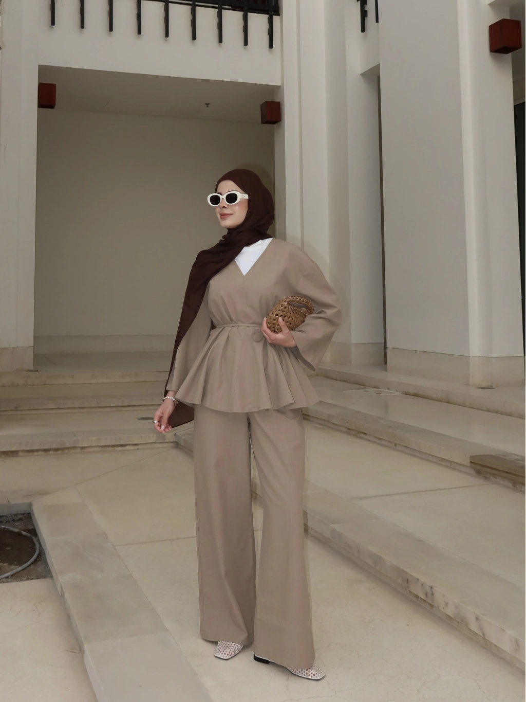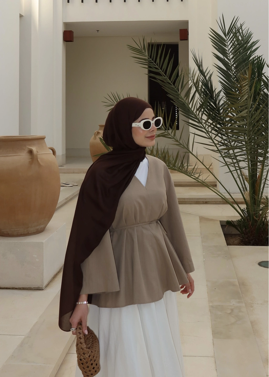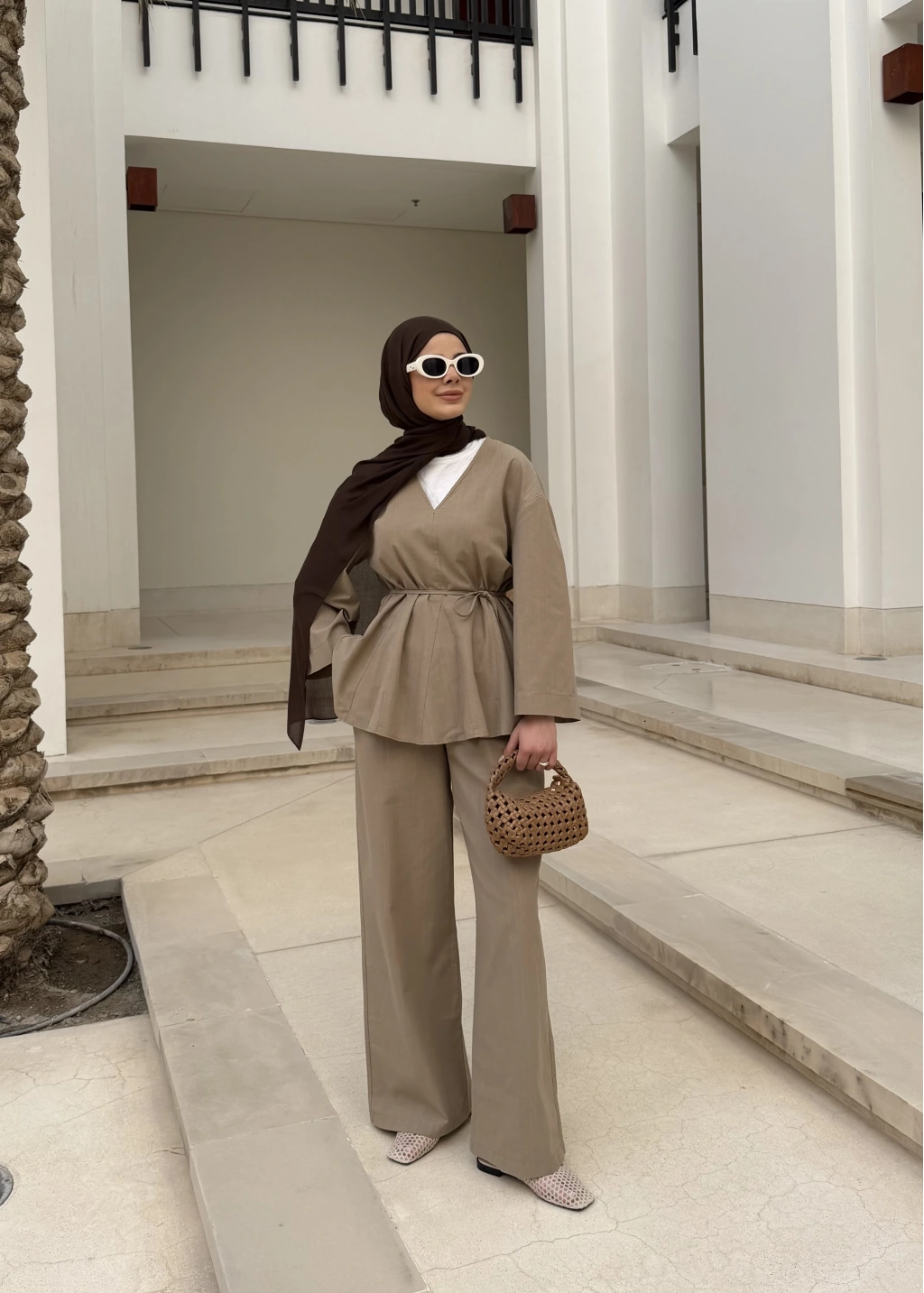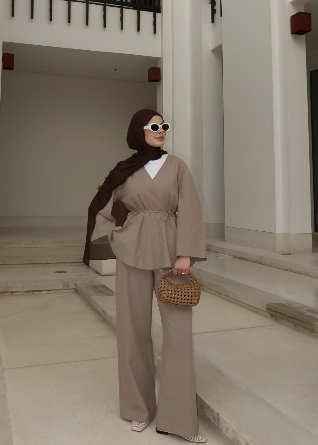 8999 ŞAL YAKA ETEKLİ KETEN TAKIM kahve