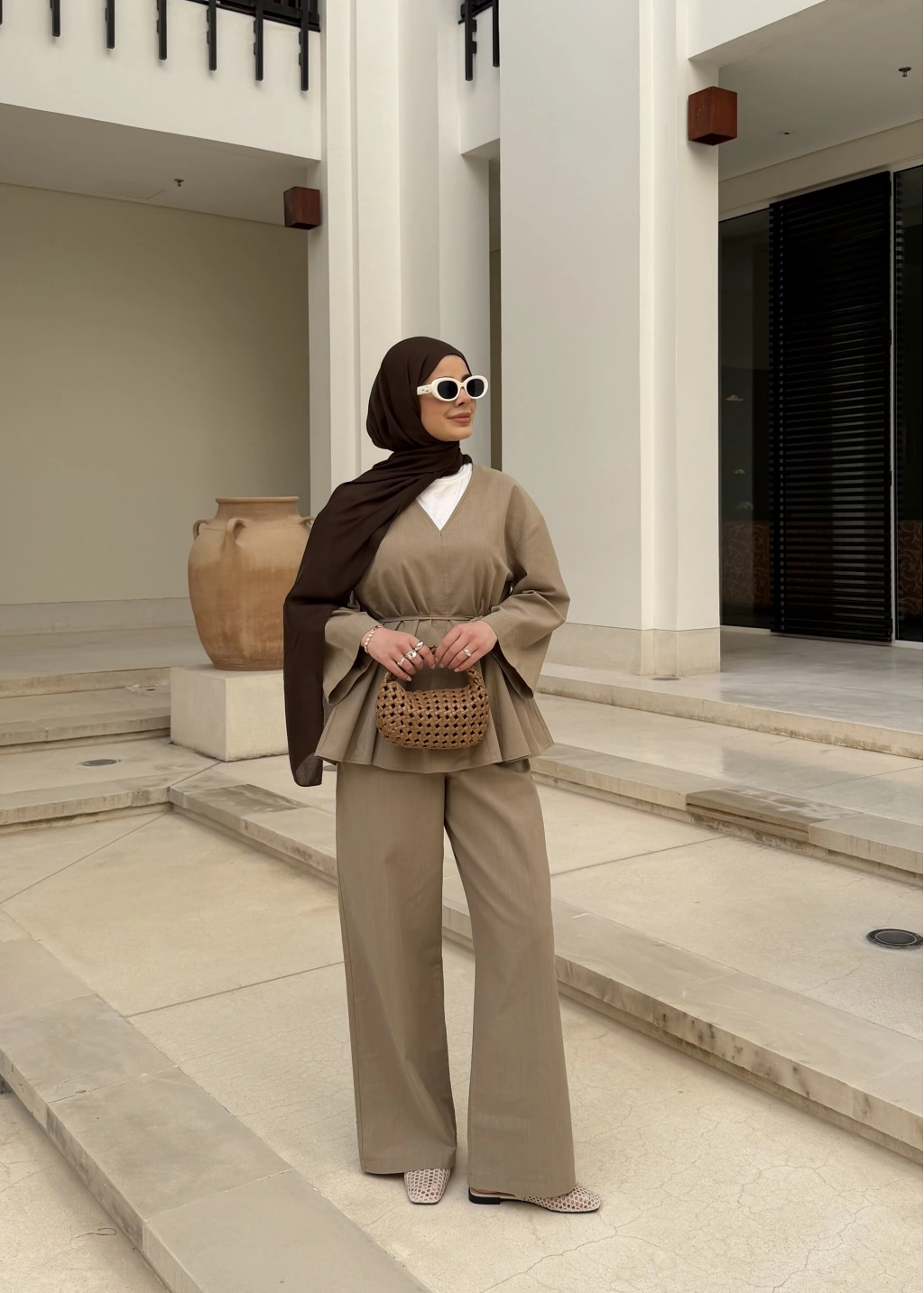 9029 BLUS ETEKLİ OVERSİZE TAKIM KAHVERENGİ