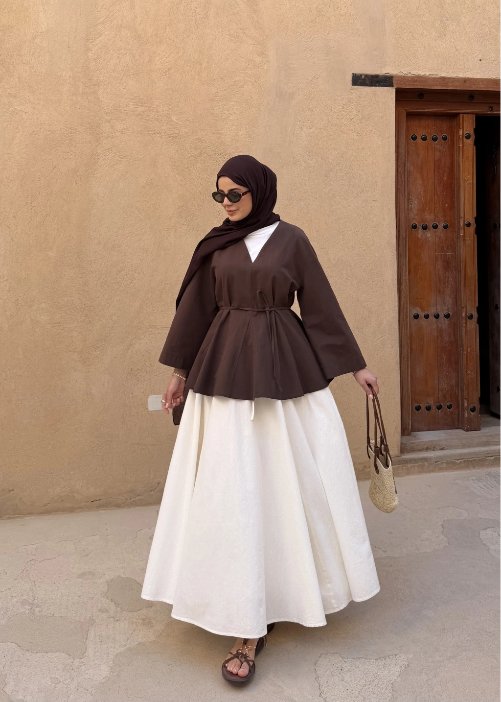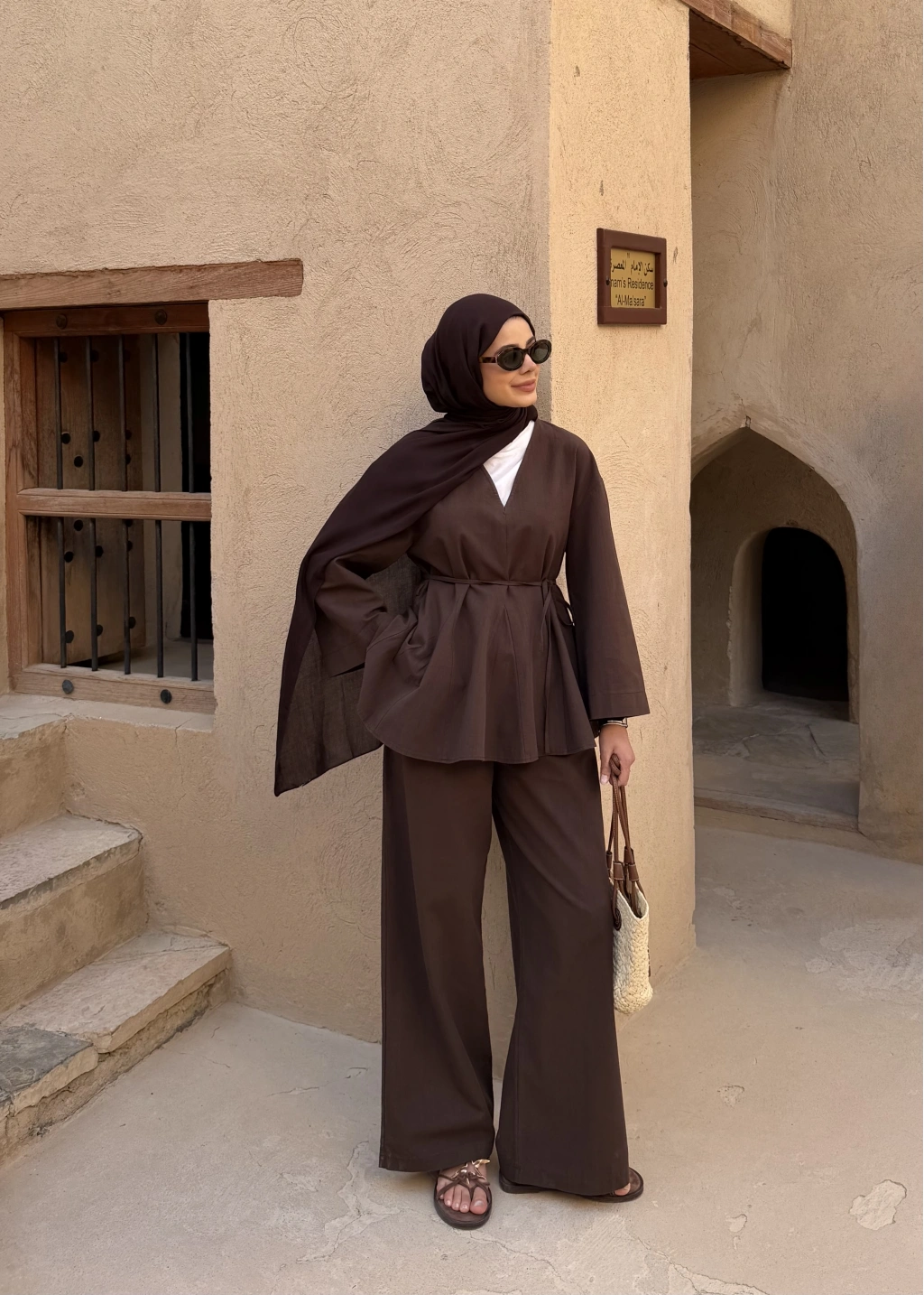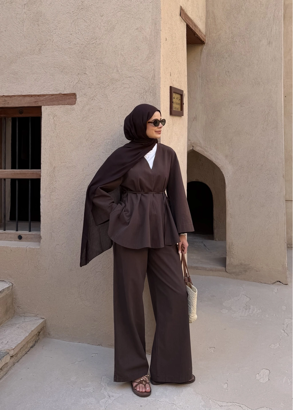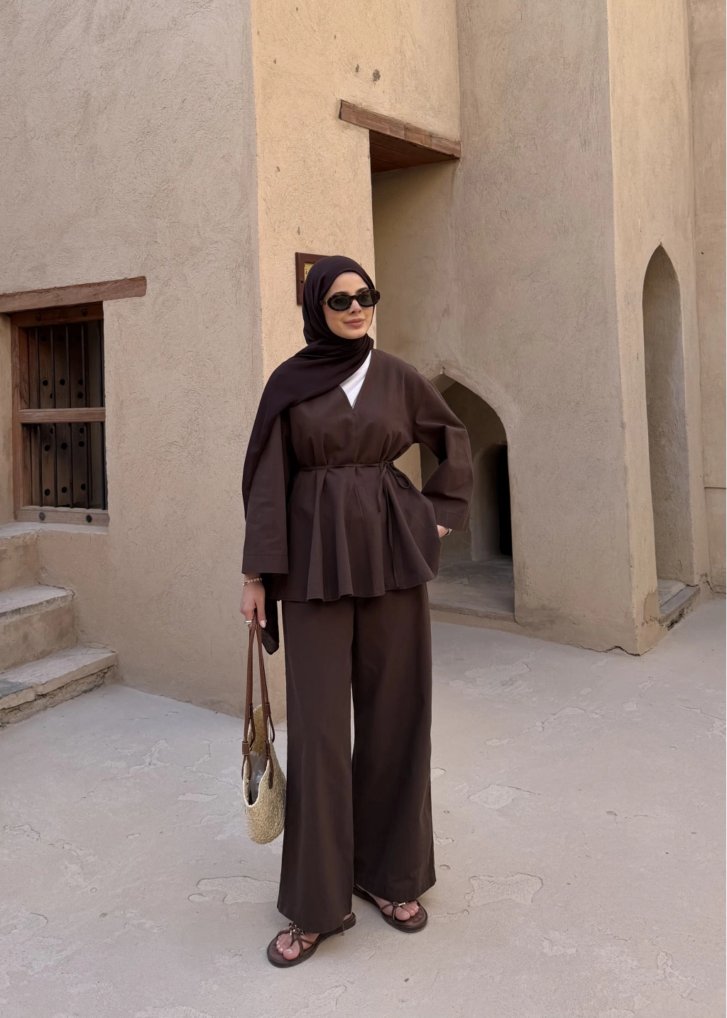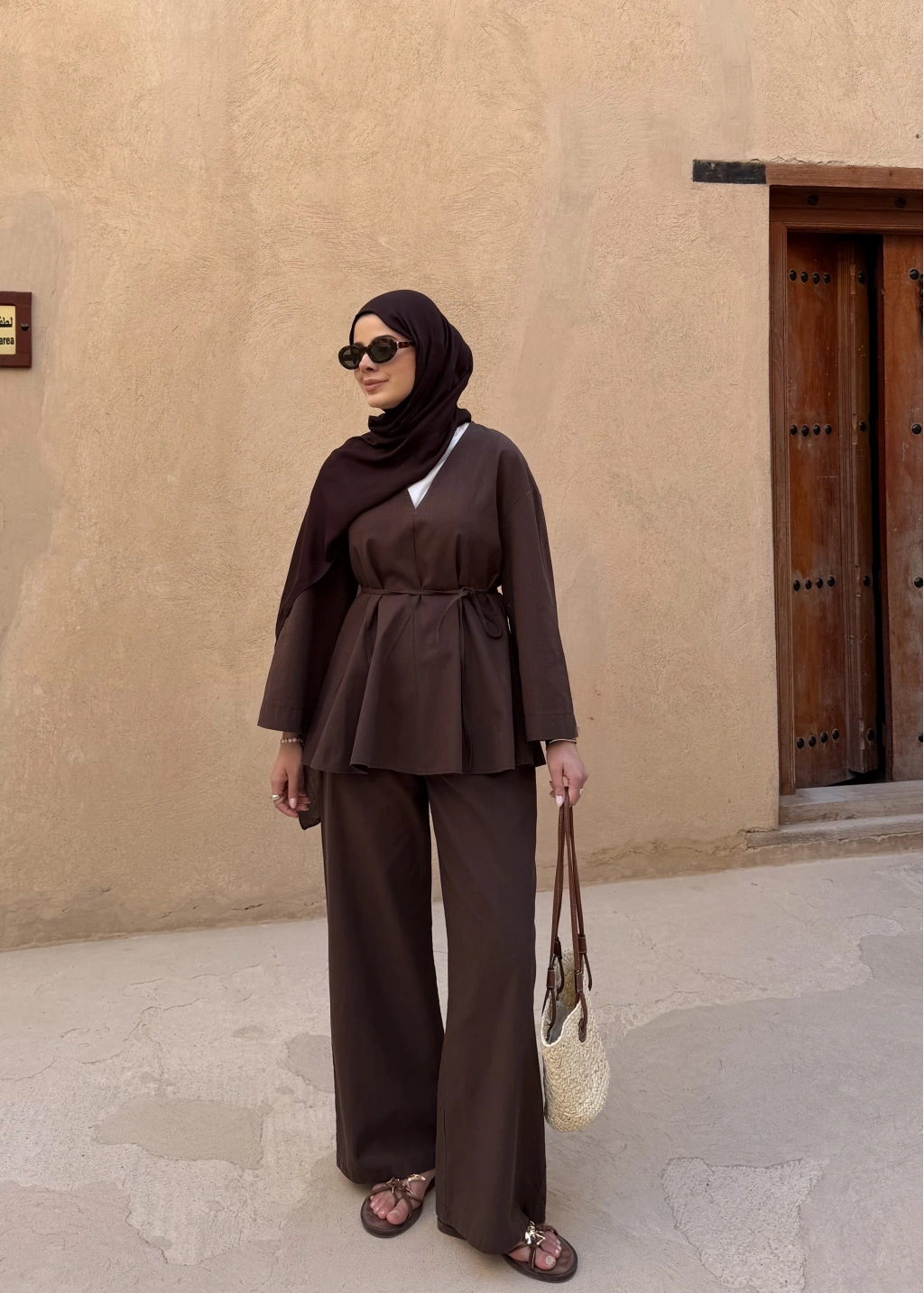 8999 ŞAL YAKA ETEKLİ KETEN TAKIM kahve