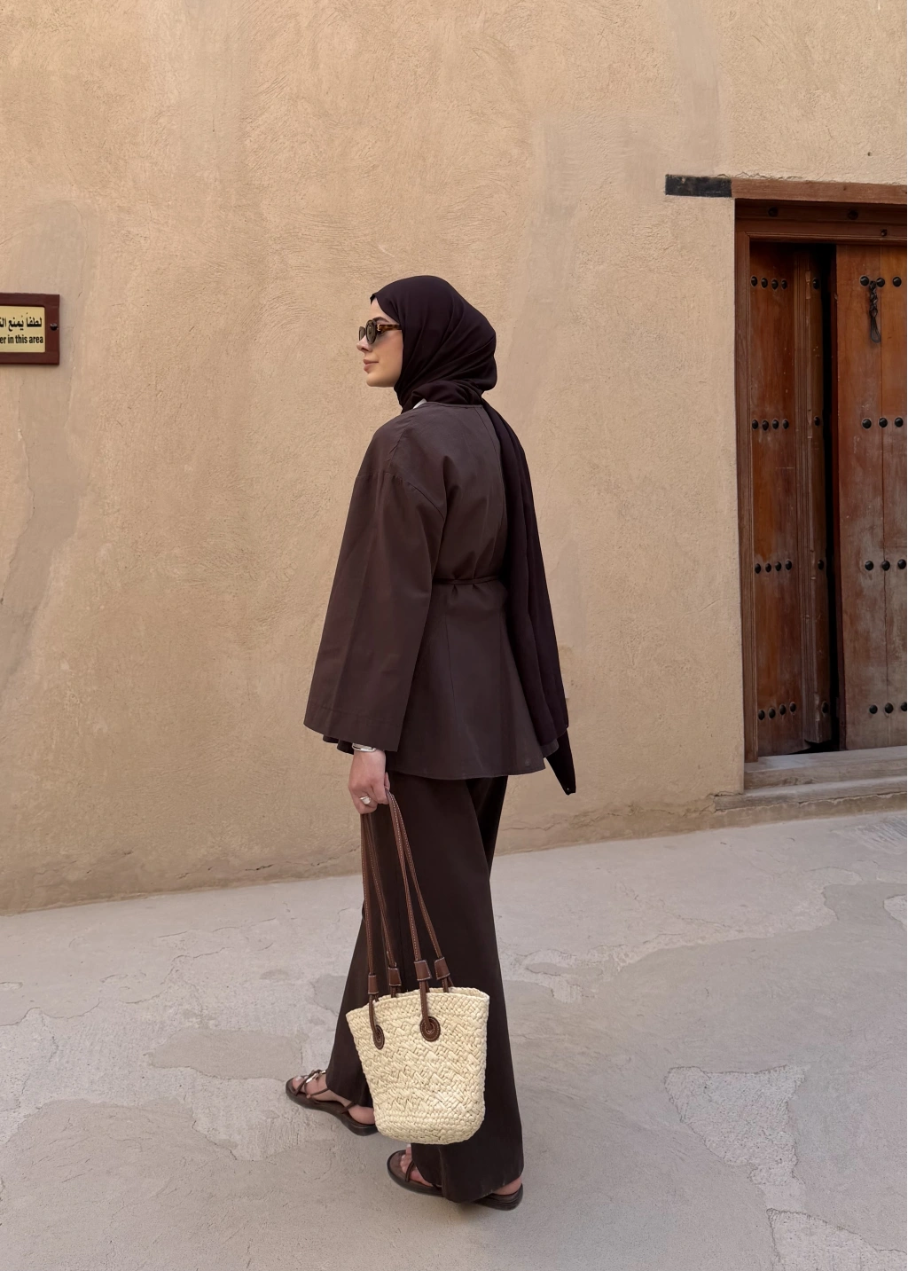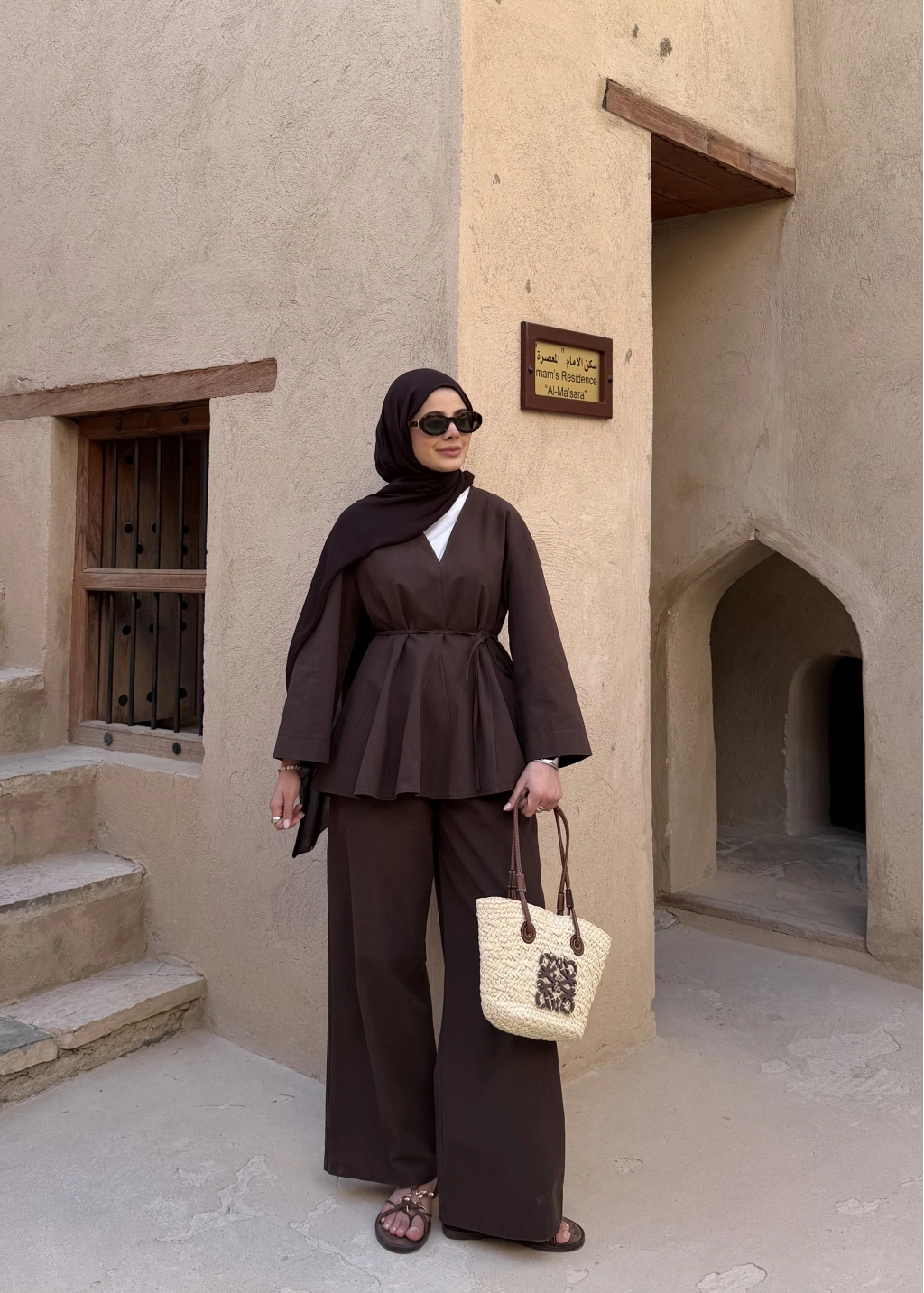 9029 BLUS ETEKLİ OVERSİZE TAKIM KAHVERENGİ