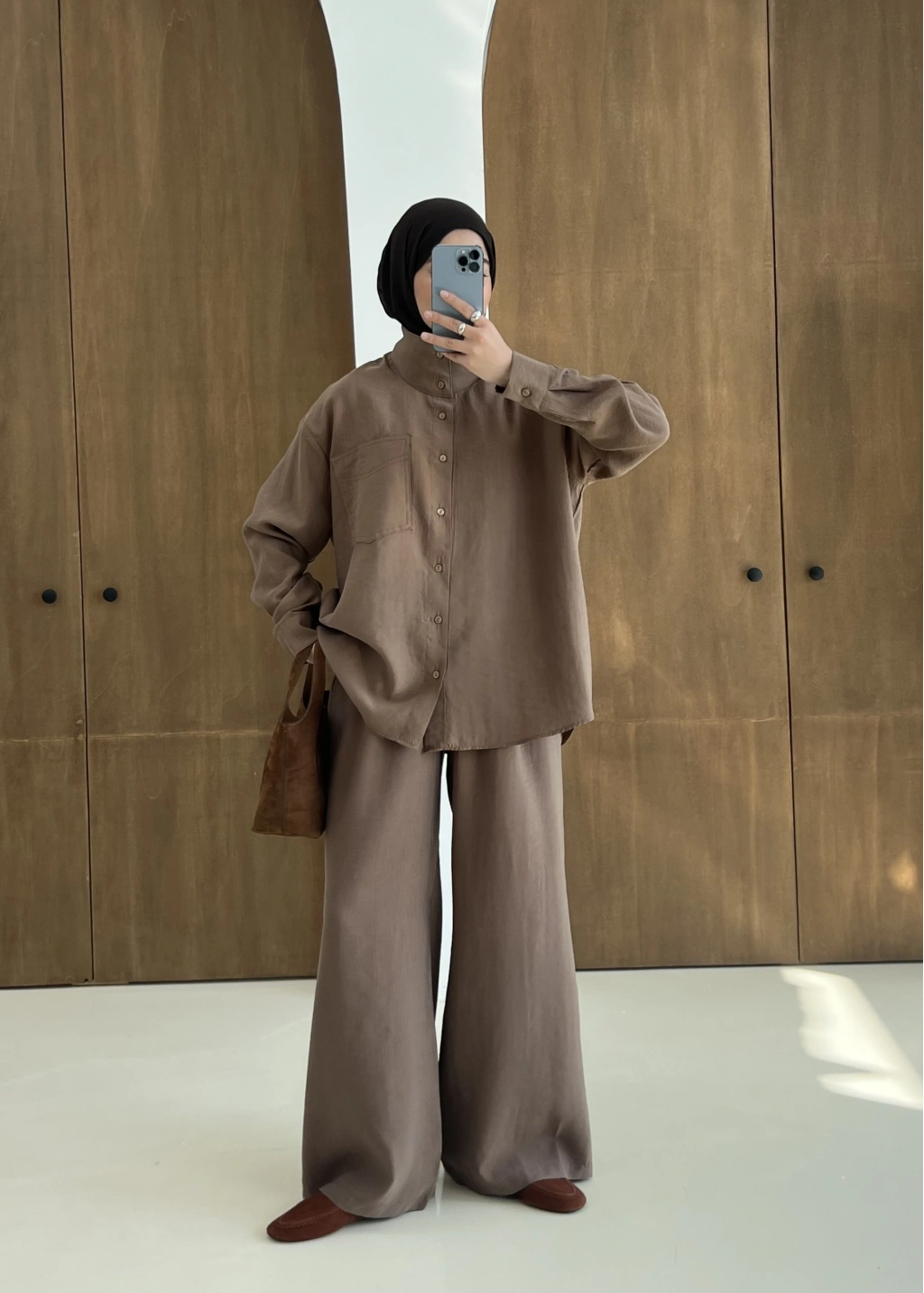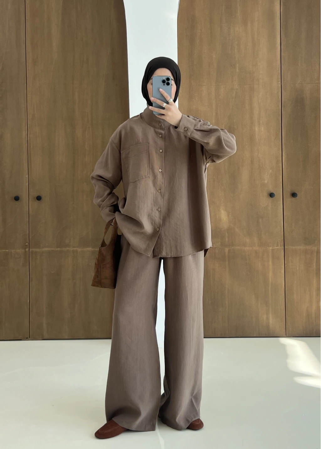 9029 BLUS ETEKLİ OVERSİZE TAKIM KAHVERENGİ