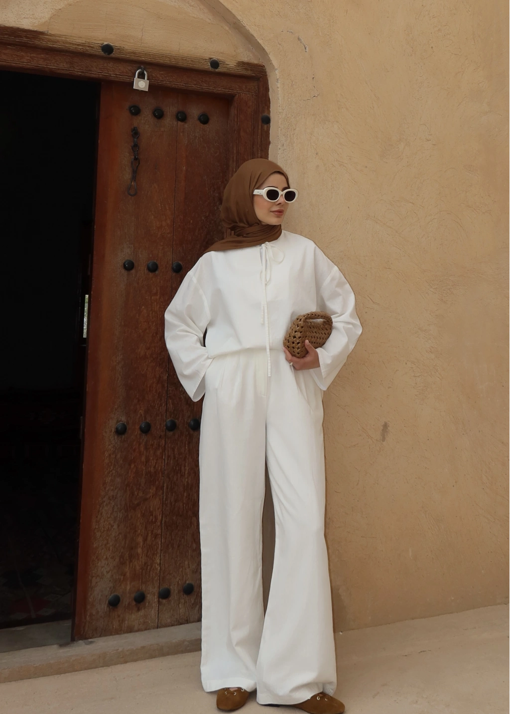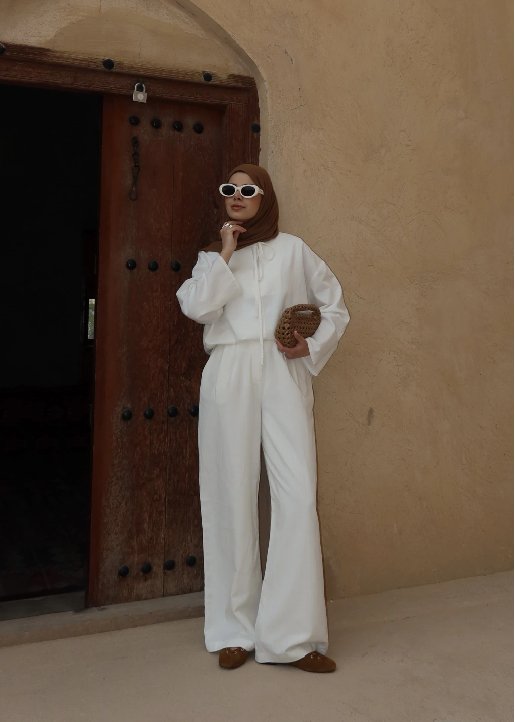 5480 Bağlamalı Palazzo Takım Beyaz