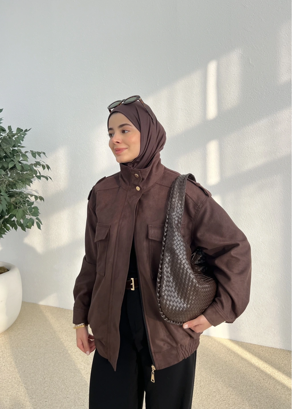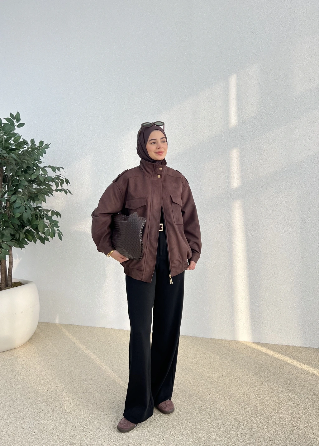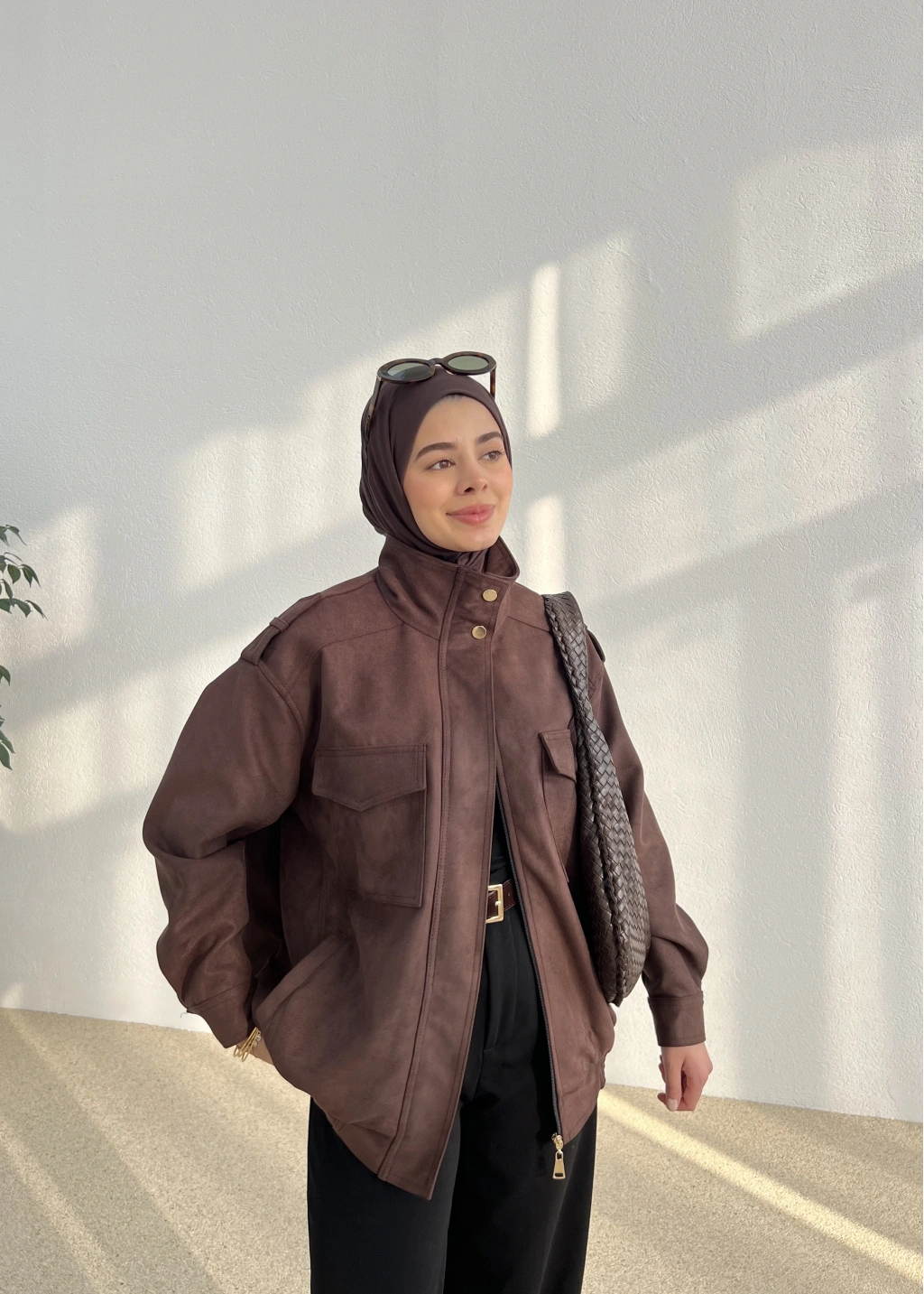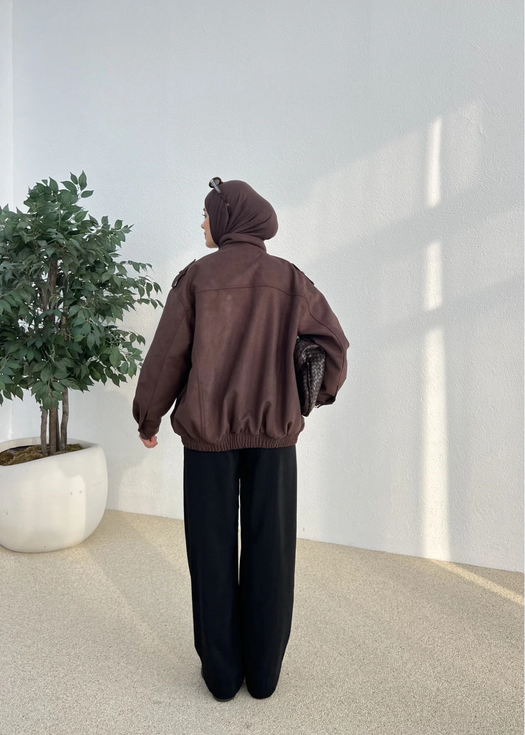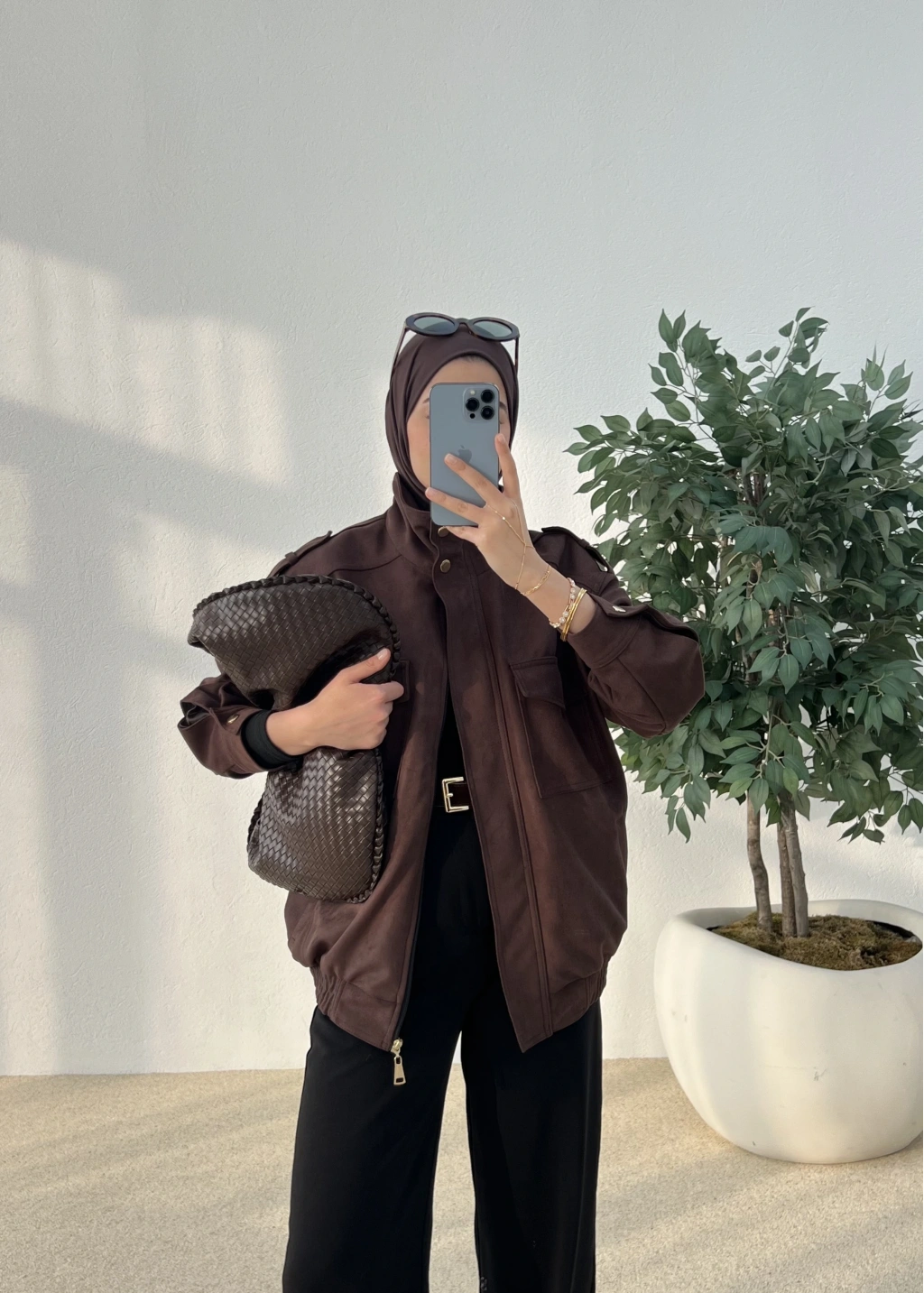 PAT DETAYLI FERMUARLI KABAN CEKET KAHVE