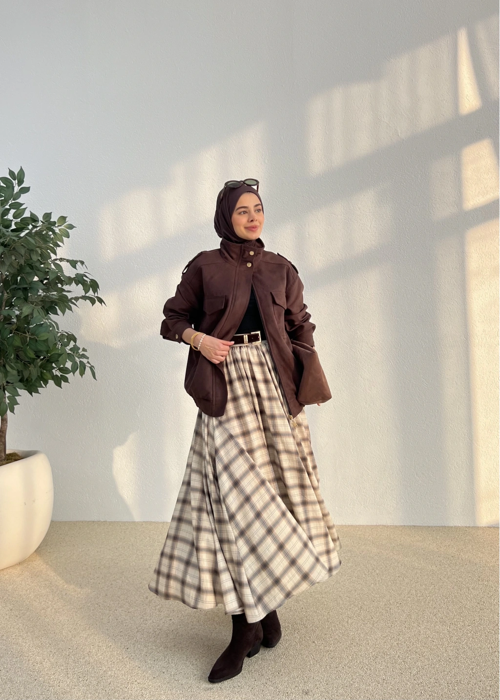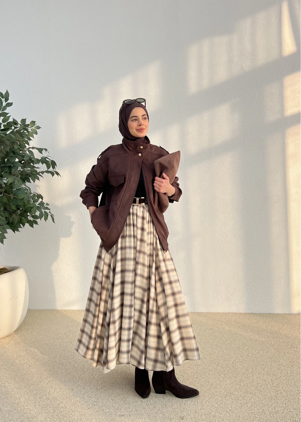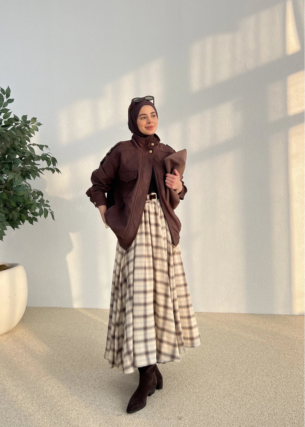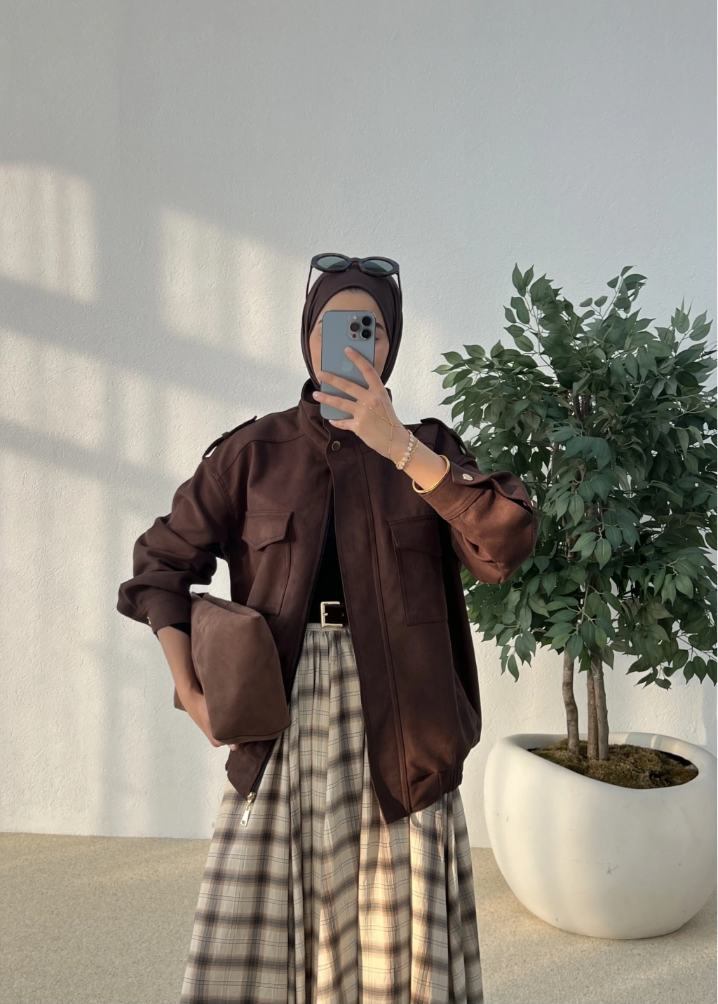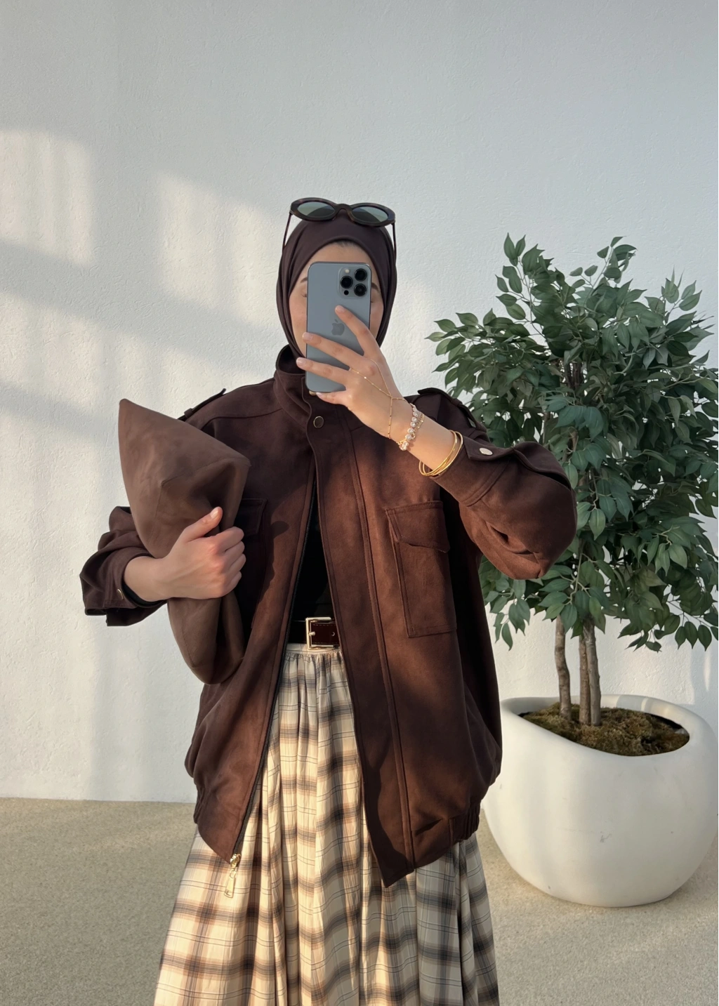 PAT DETAYLI FERMUARLI KABAN CEKET KAHVE