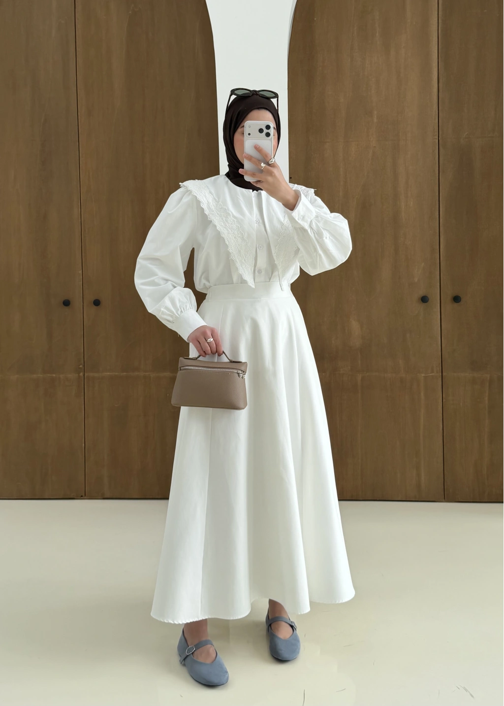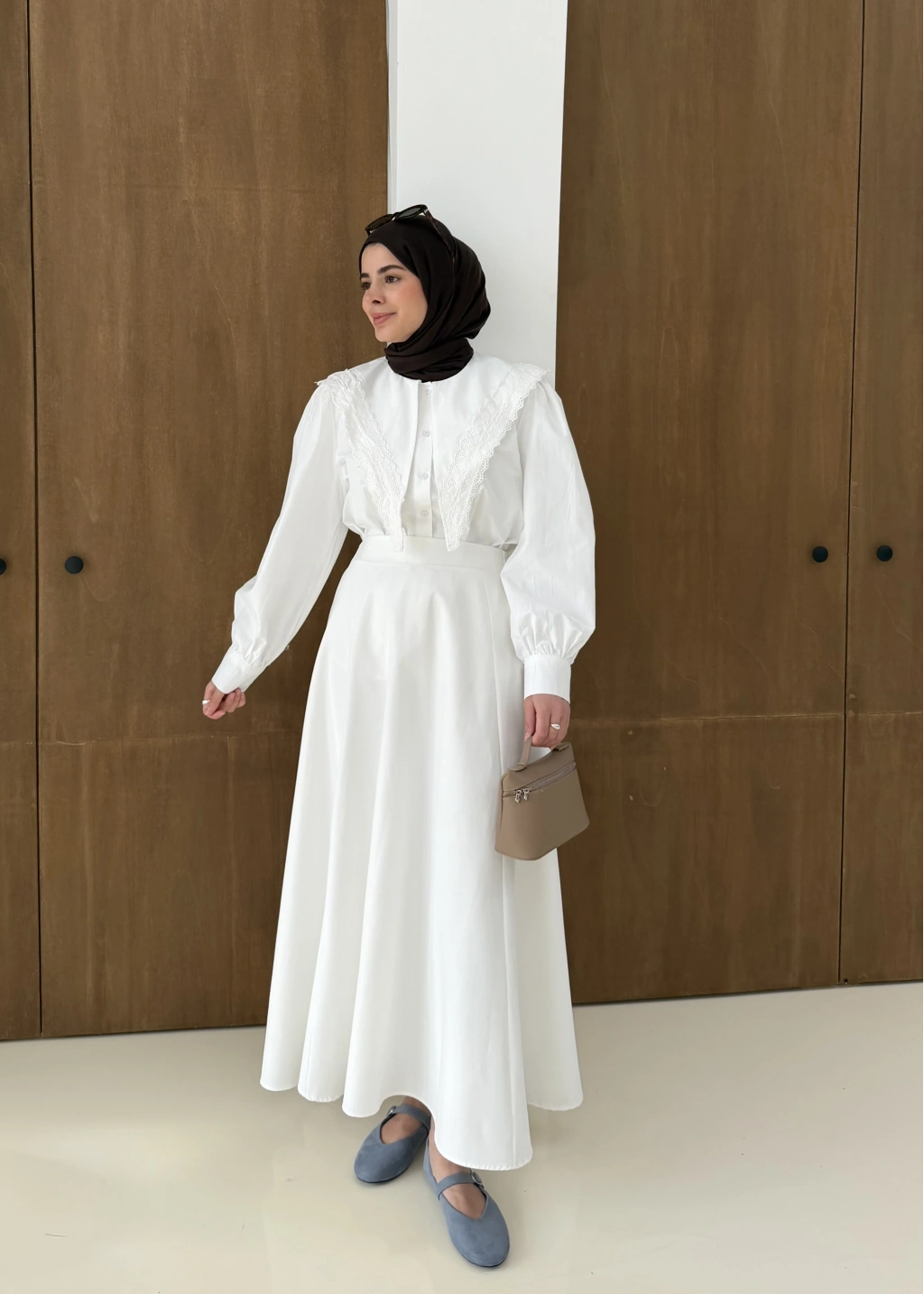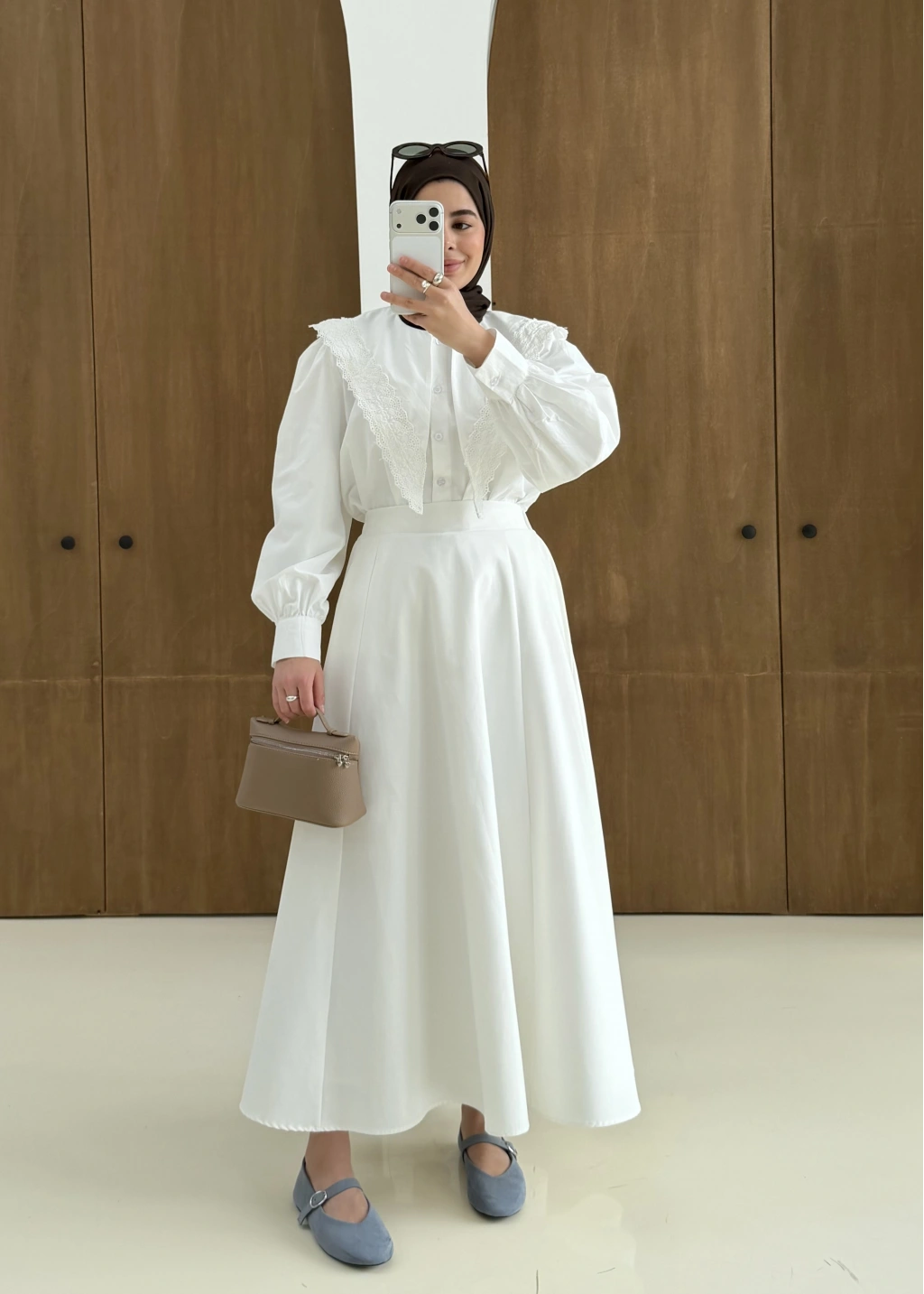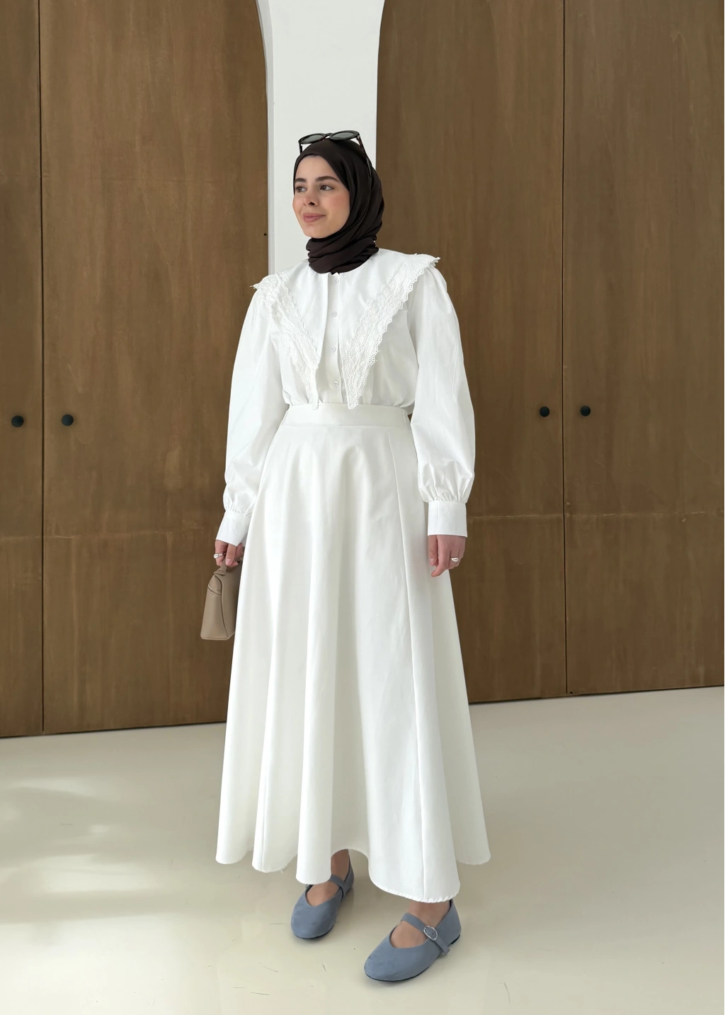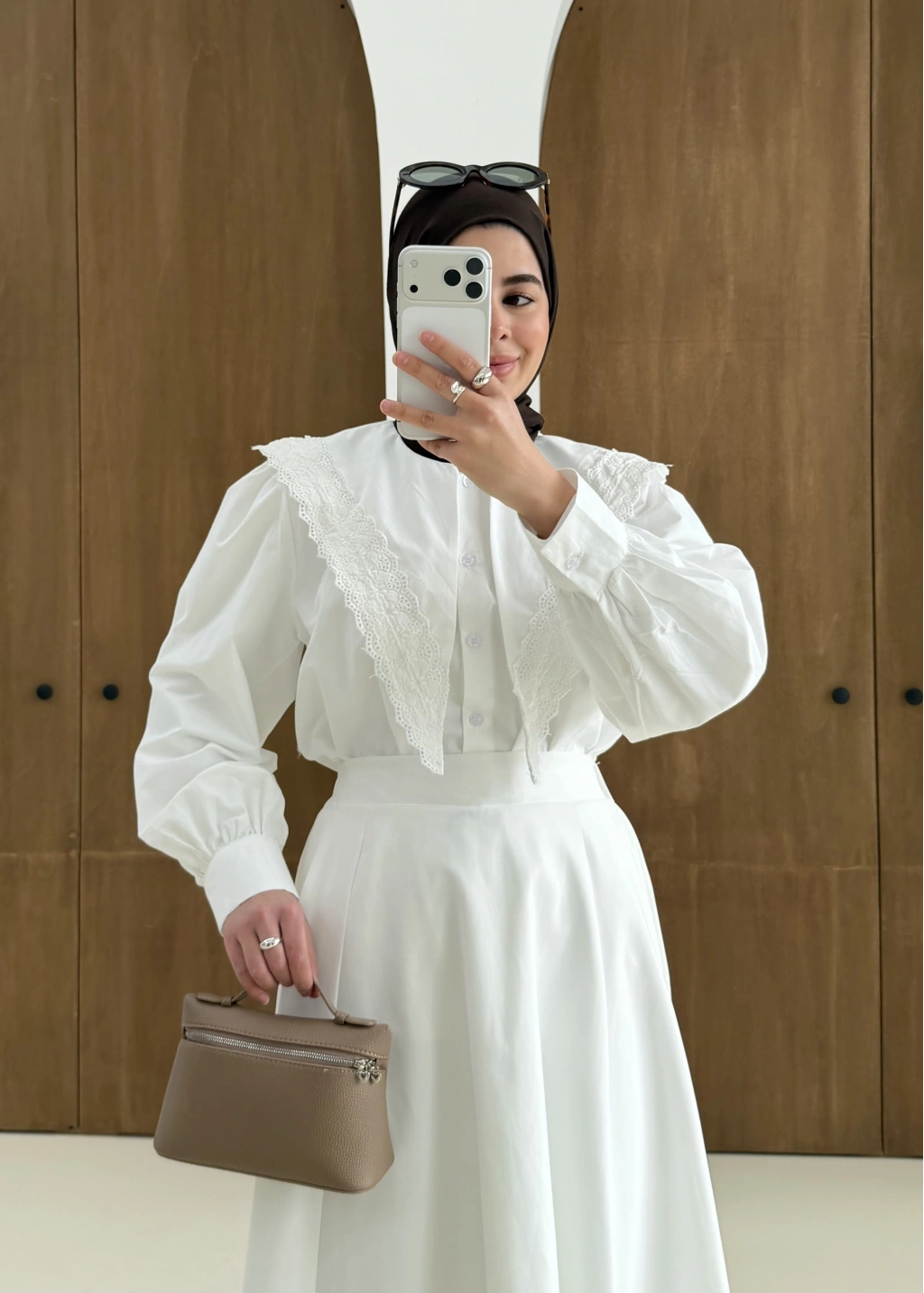 Dantel Desen Gömlek Beyaz