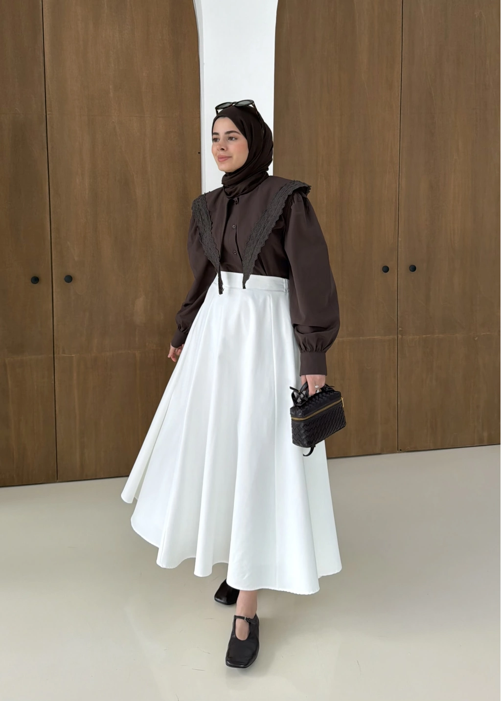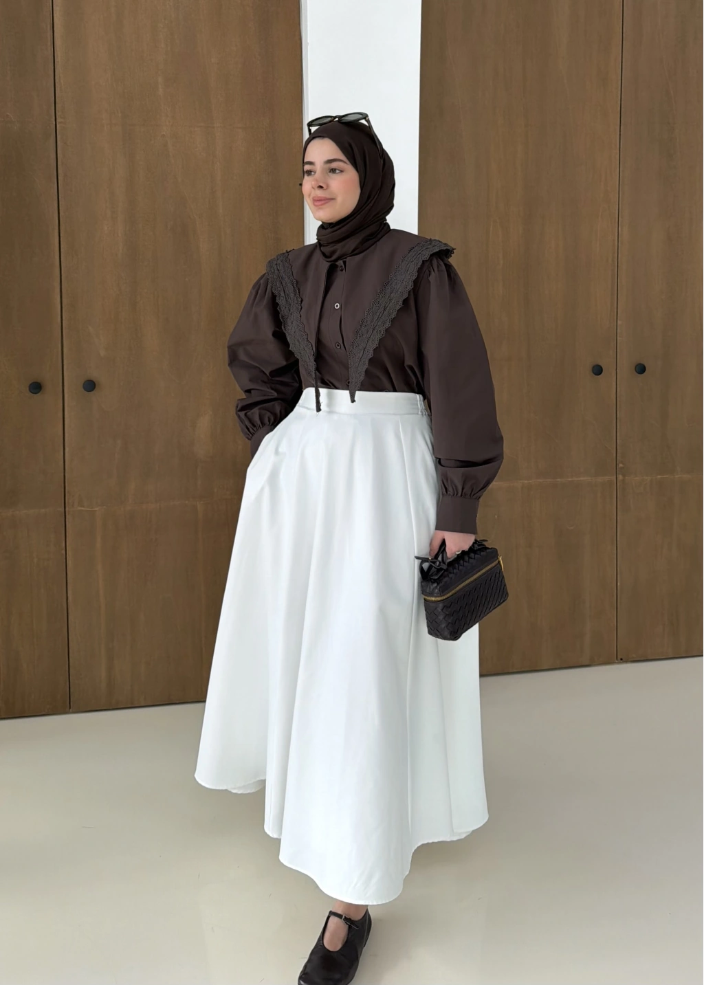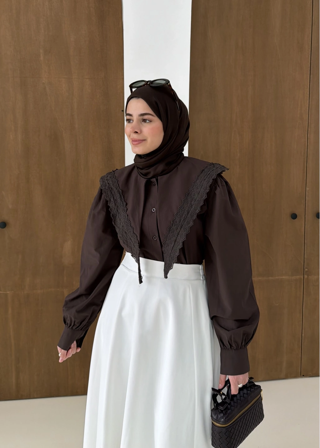 8999 ŞAL YAKA ETEKLİ KETEN TAKIM kahve