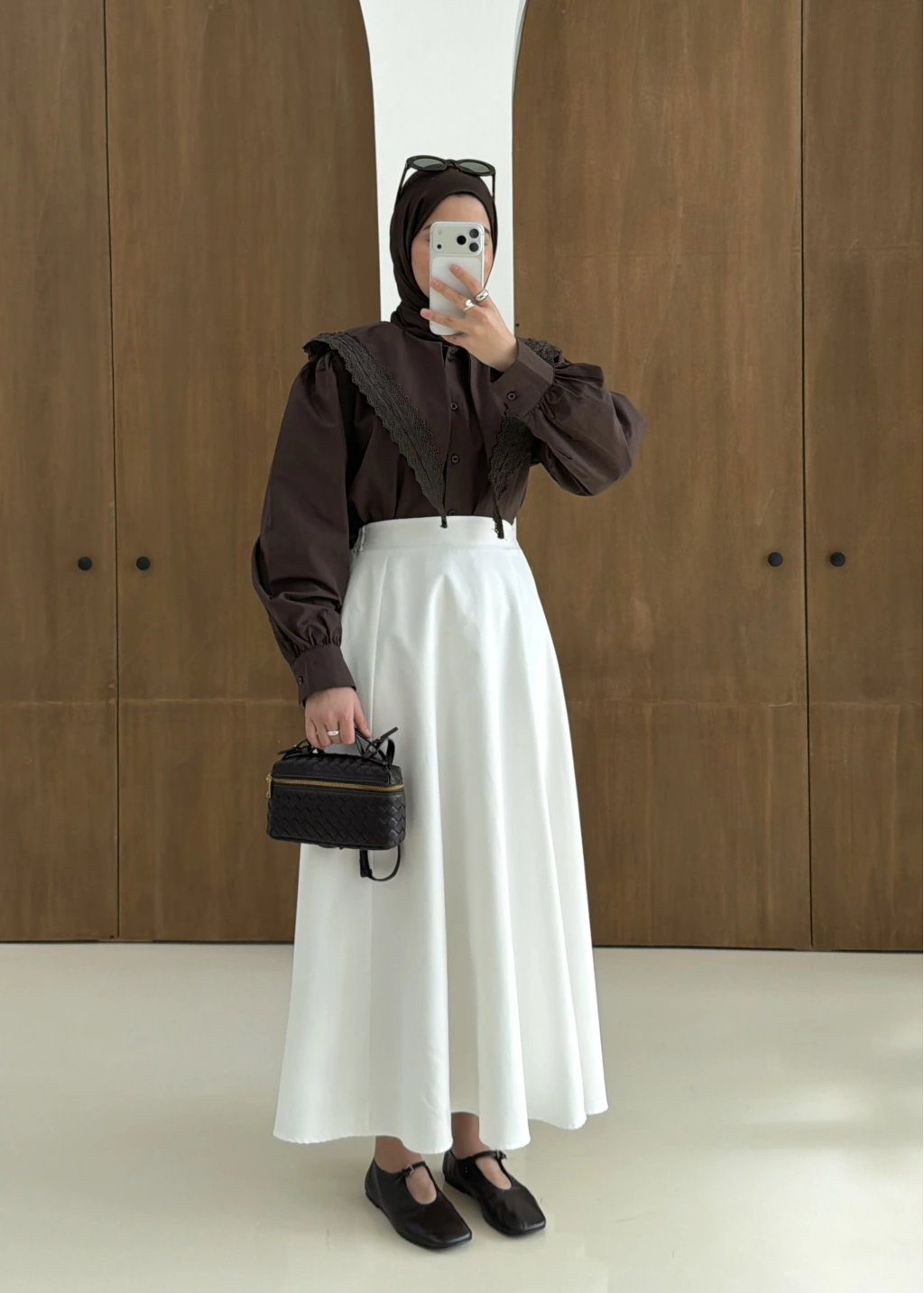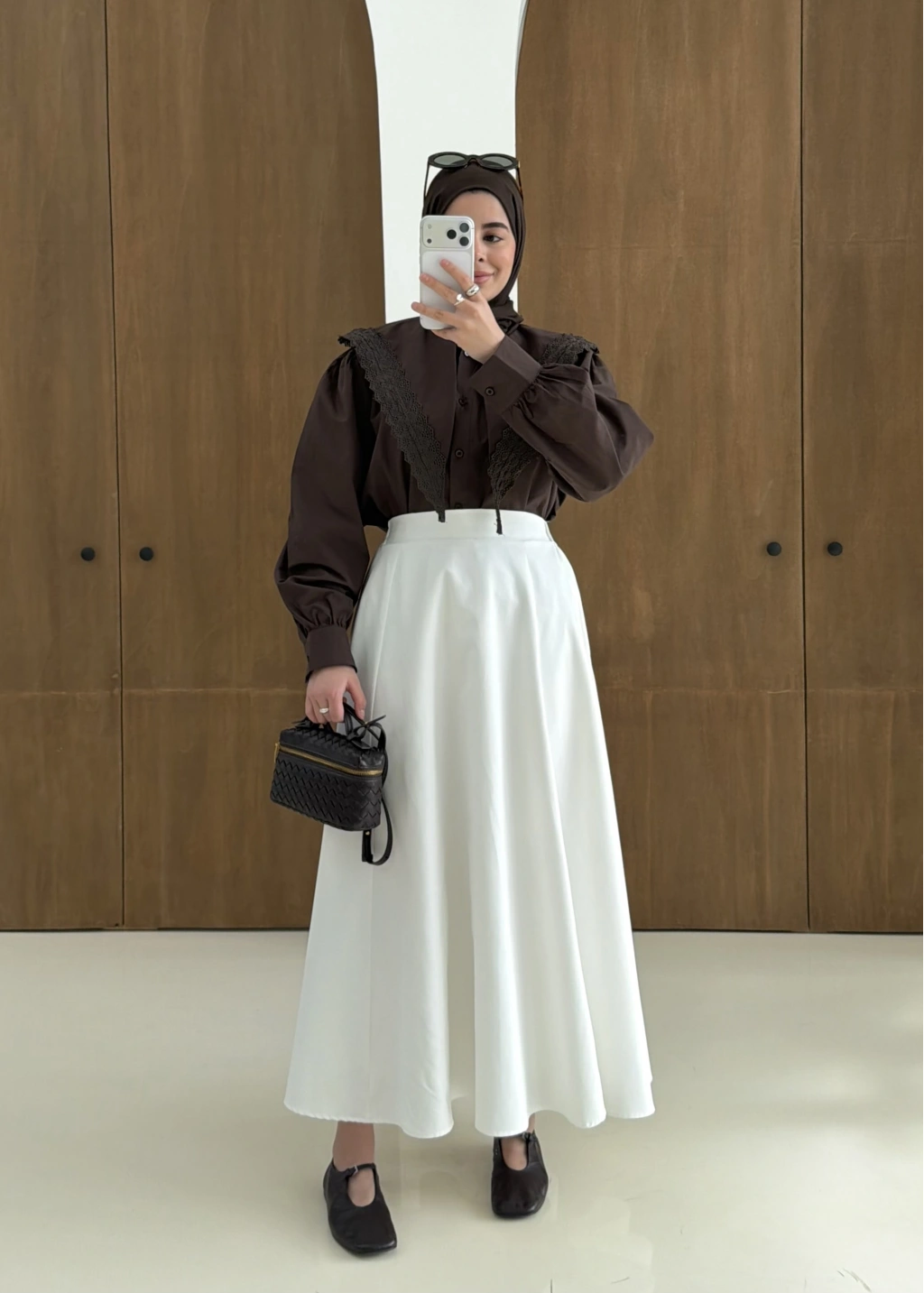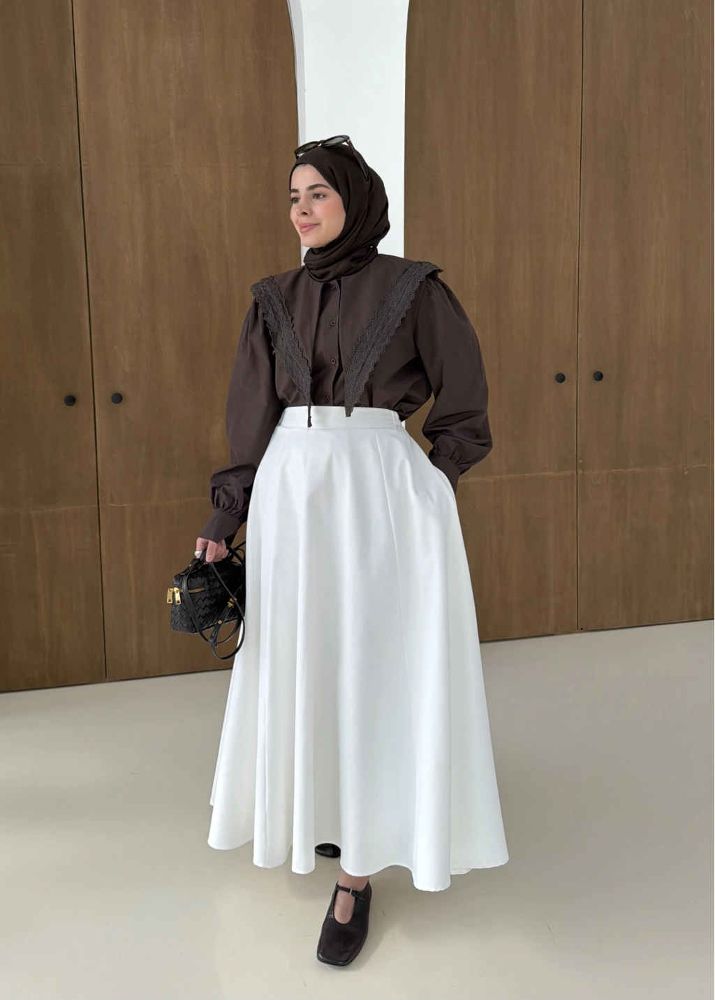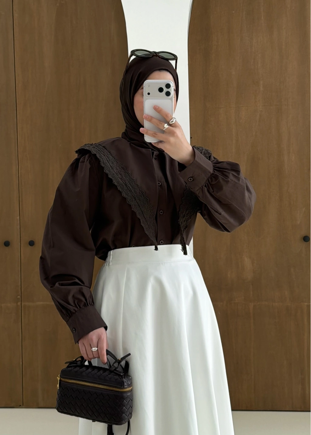 8999 ŞAL YAKA ETEKLİ KETEN TAKIM kahve