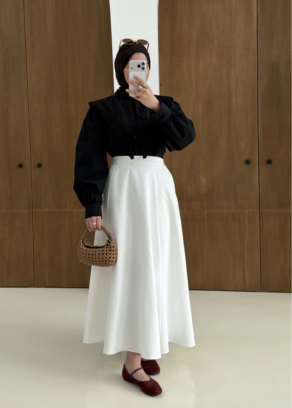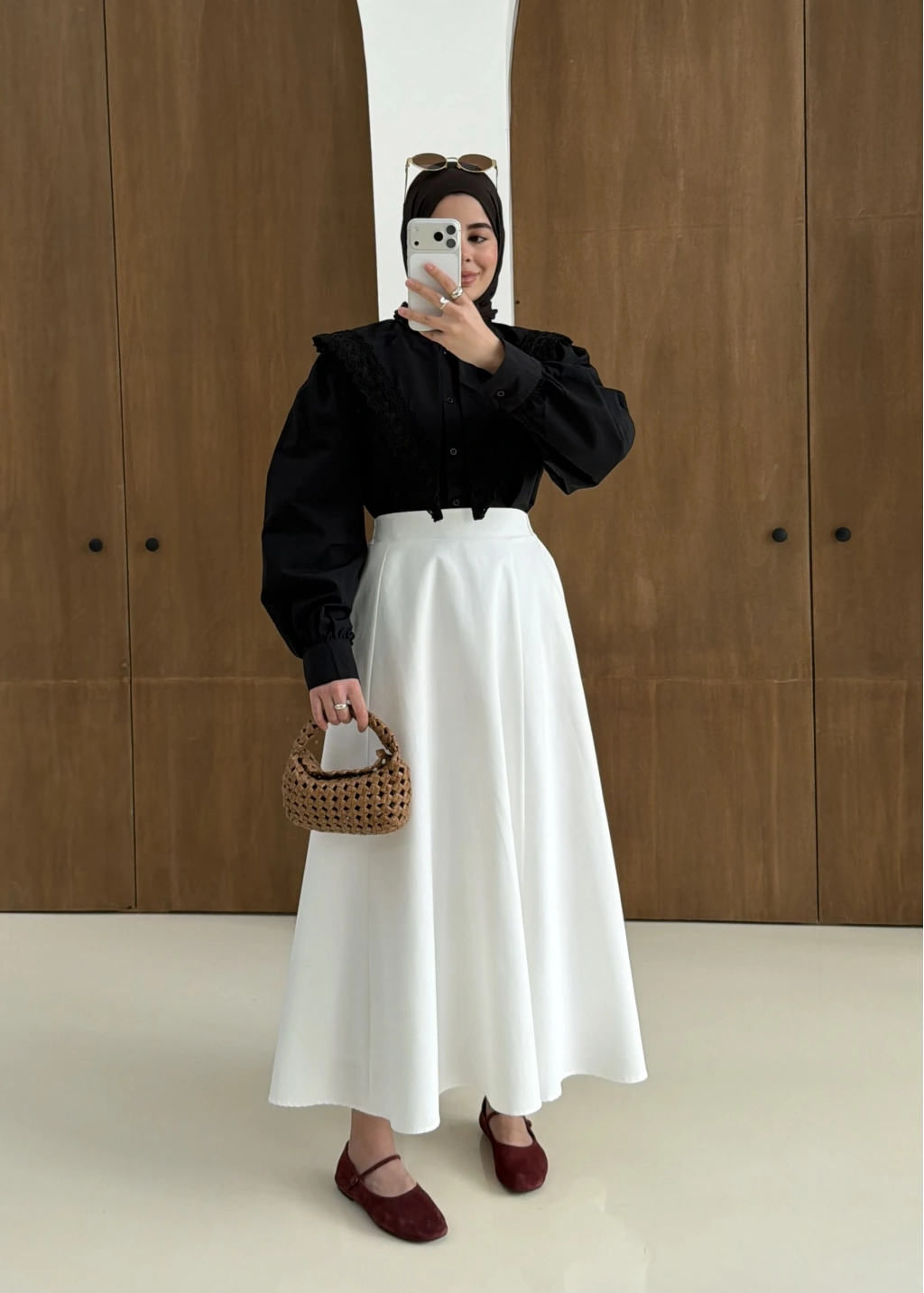 2365 İŞLEME DETAY PREMİUM ELBİSE BEYAZ
