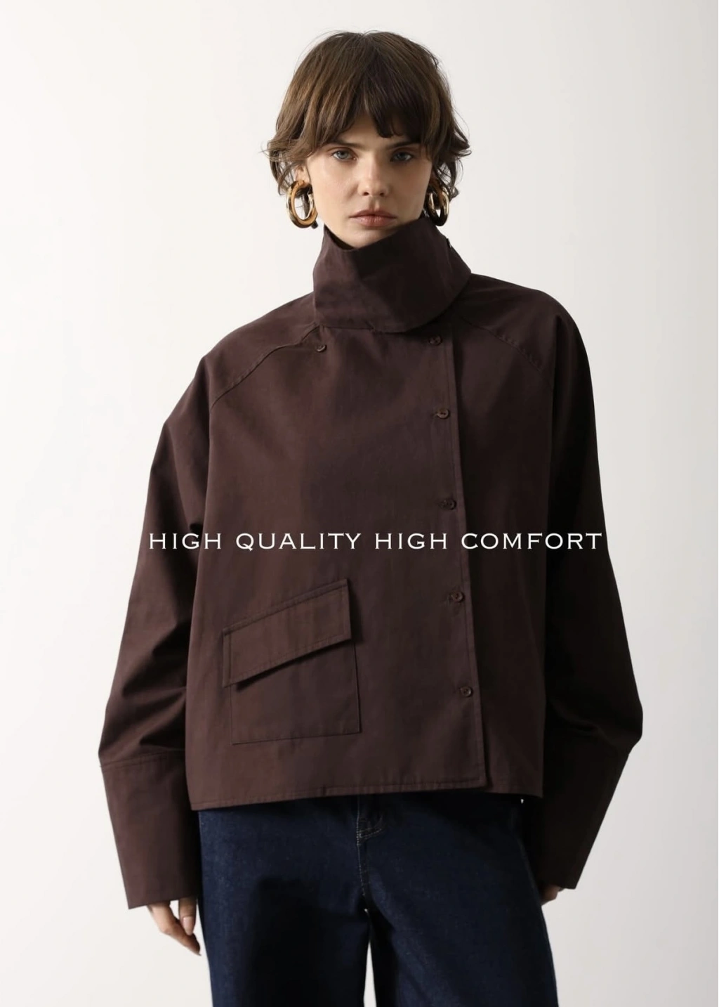 COTON MEVSİMLİK DİK YAKA TRENÇ kahve