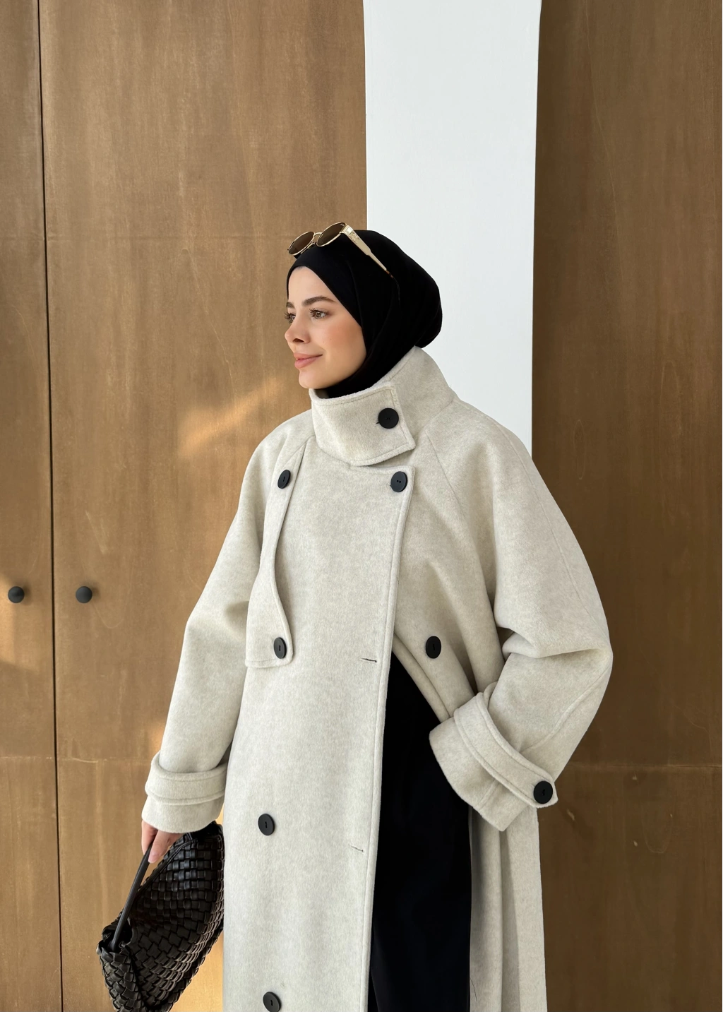 7120 İthal Kumaş Kapaklı Yakalı Kaban Bej