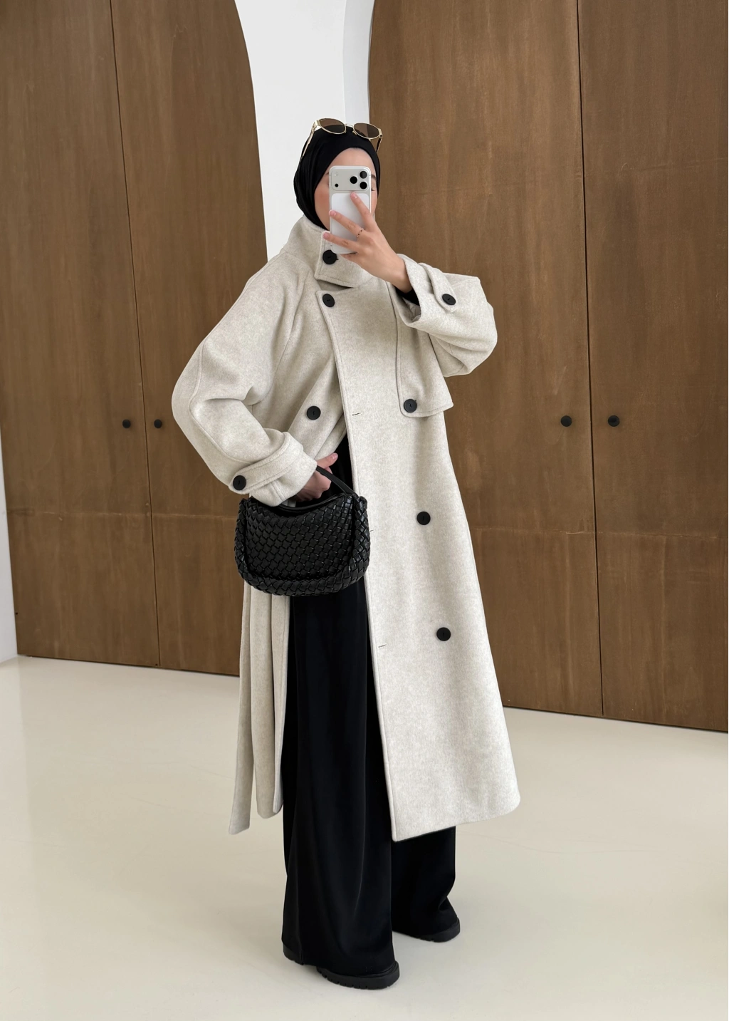 2091 BERSHKA PREMİUM TRENÇ TAŞ