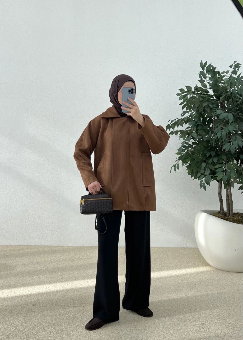 PREMİUM İTHAL KAŞE KABAN DİK YAKA kahve