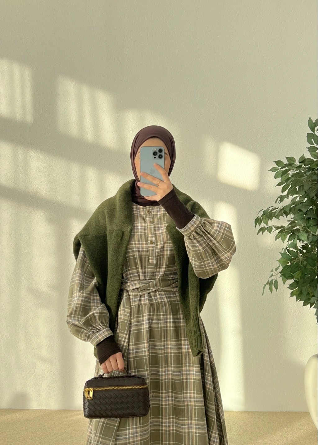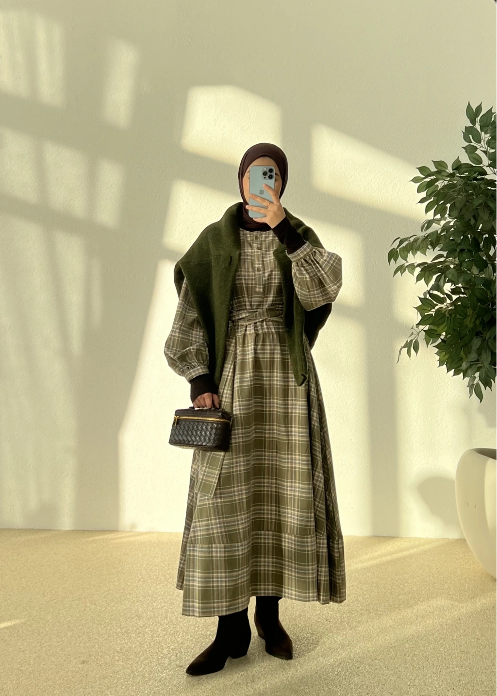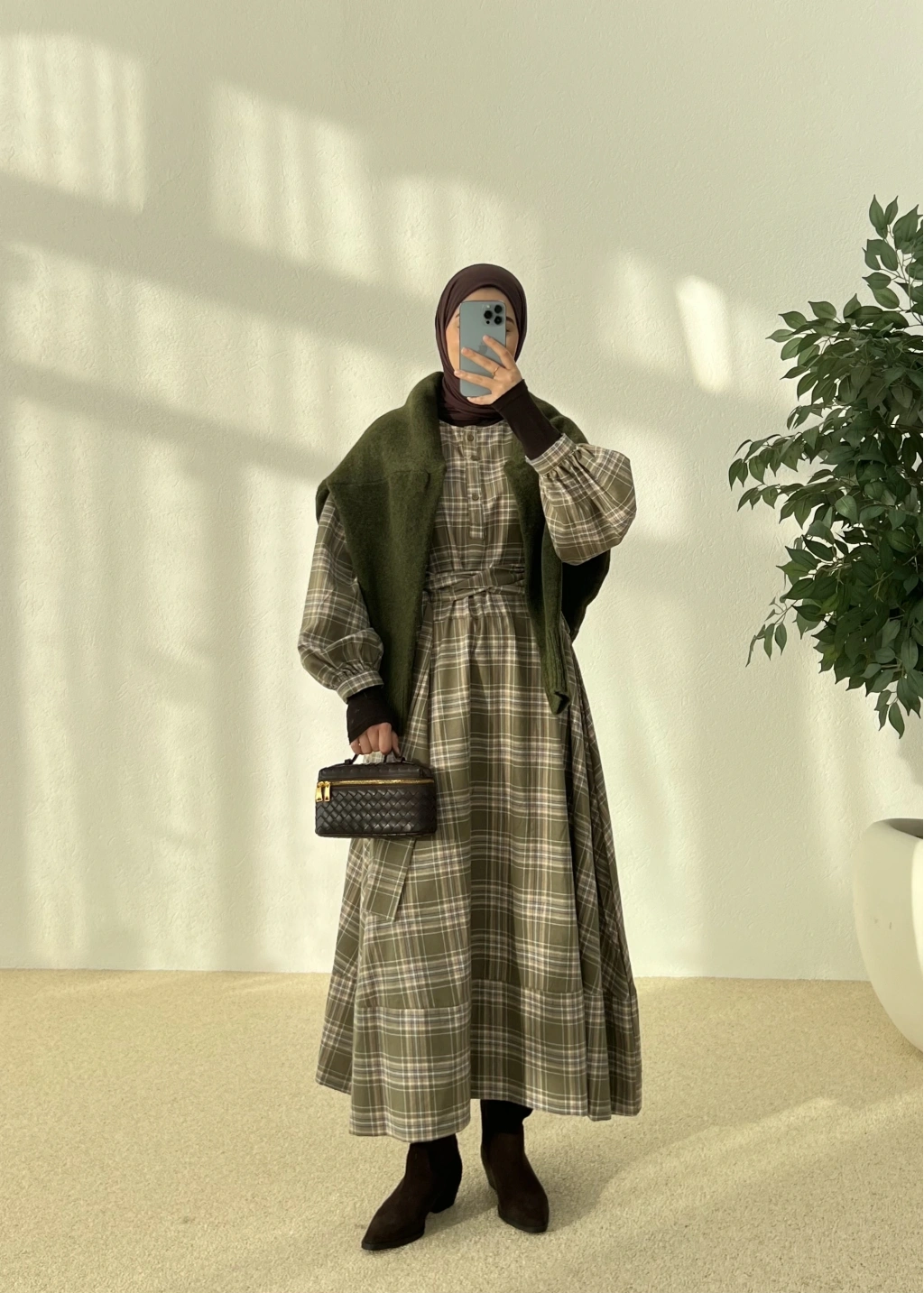 Zr Kareli Gömlek Elbise Açık Yeşil