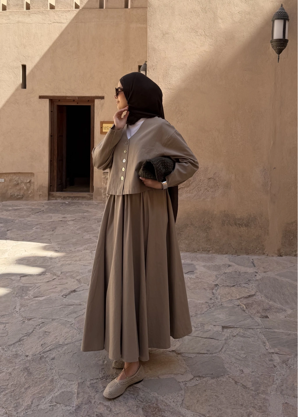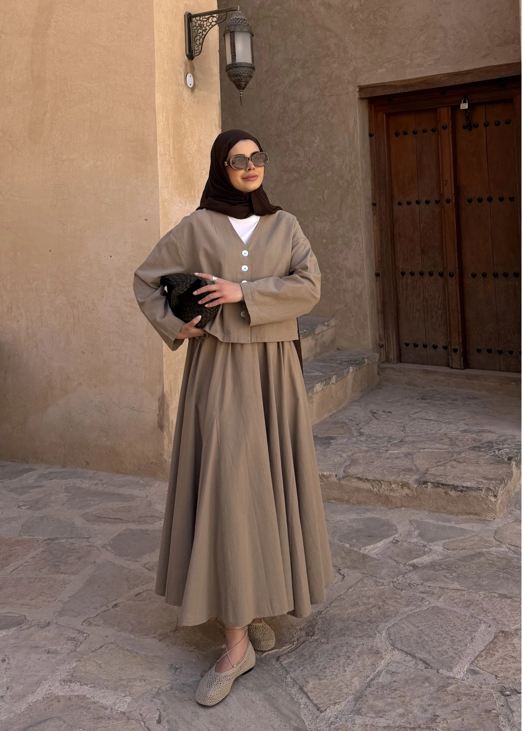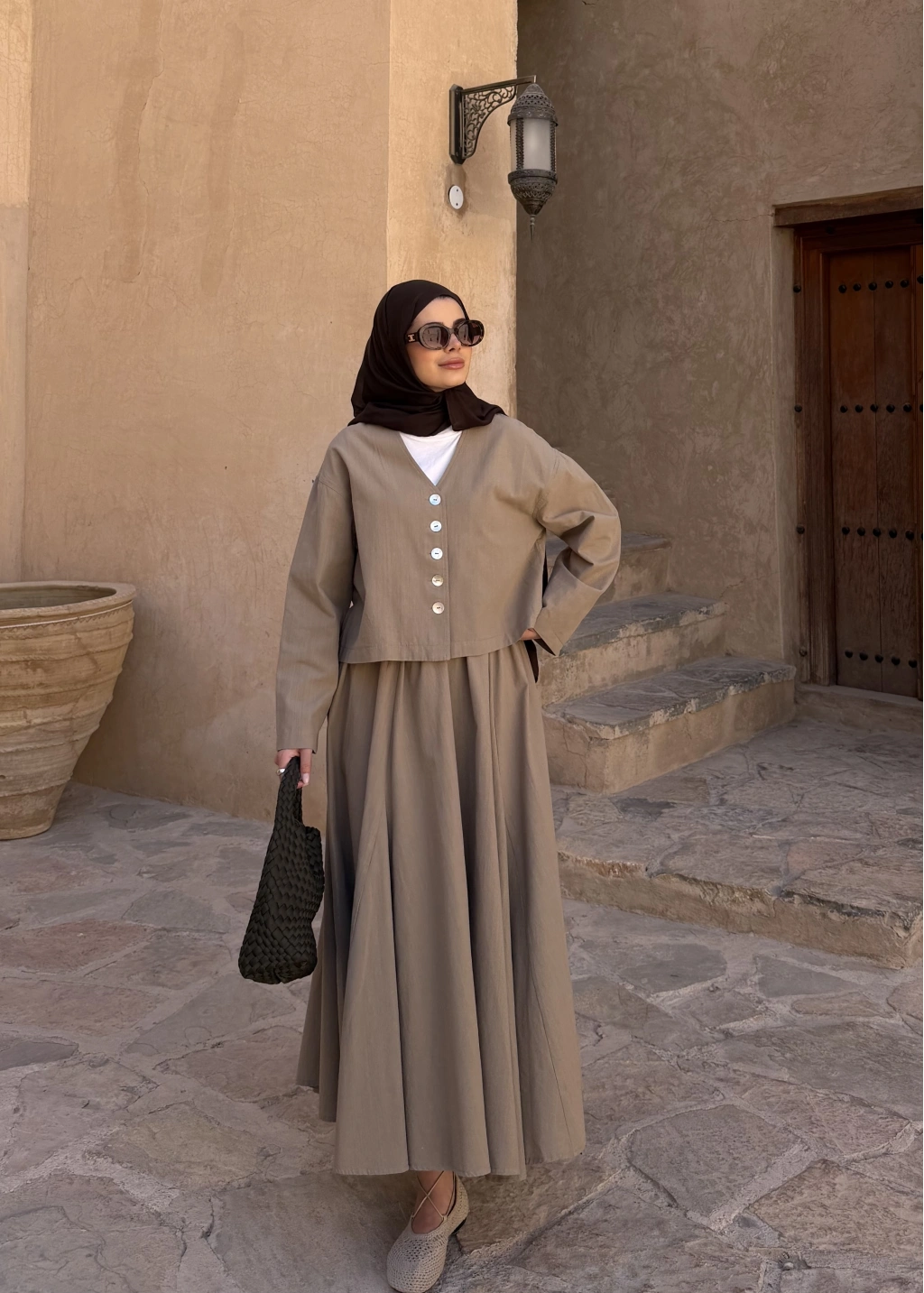 8977 MİNİK DÜĞME KETEN TAKIM kahve