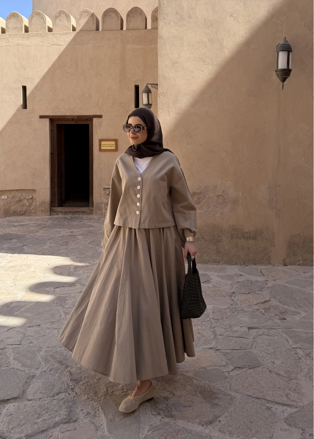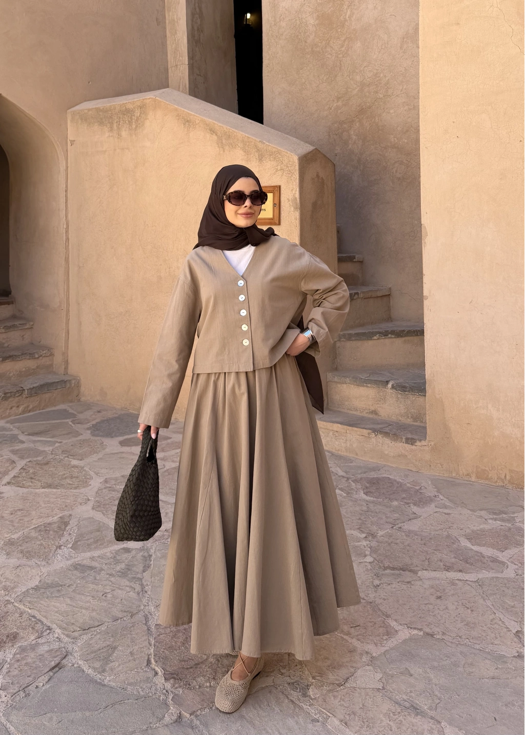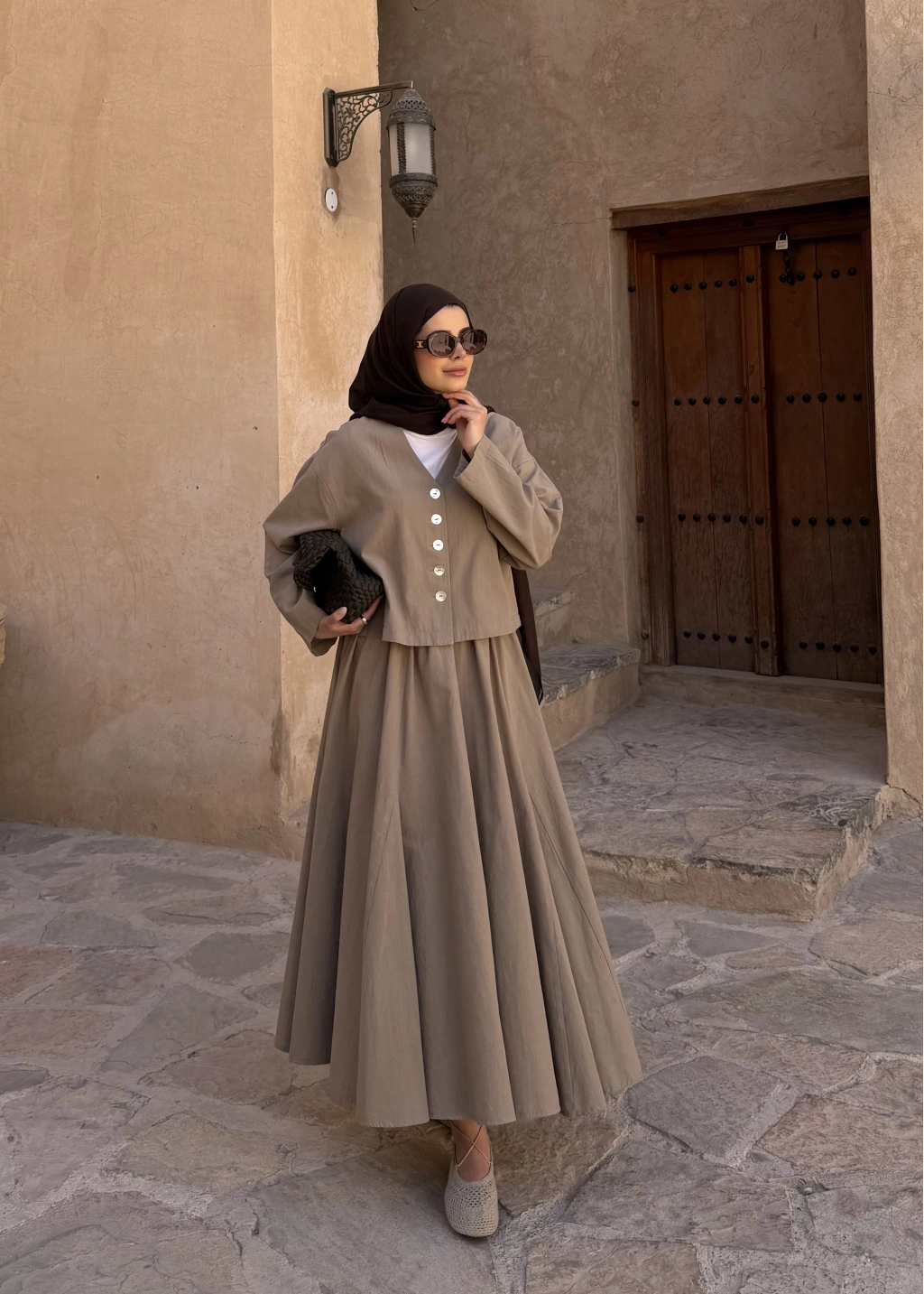 8977 MİNİK DÜĞME KETEN TAKIM kahve