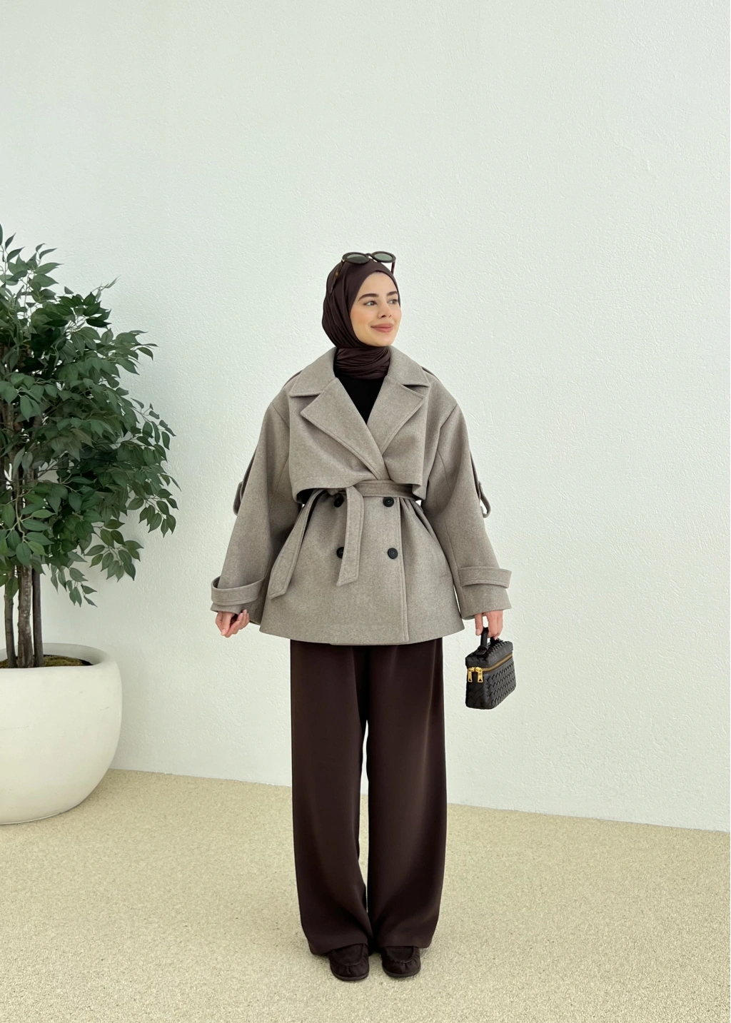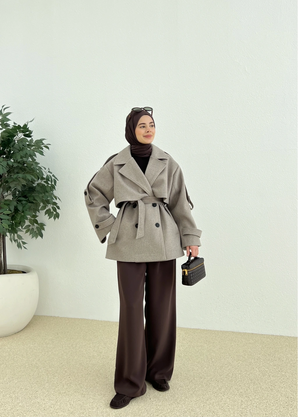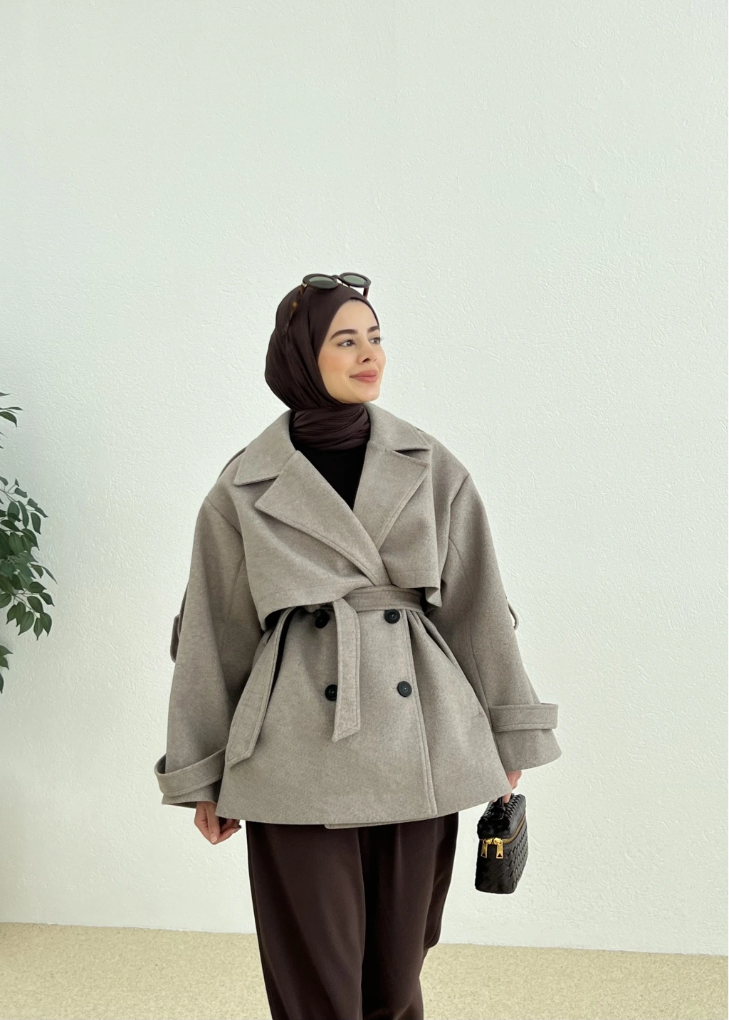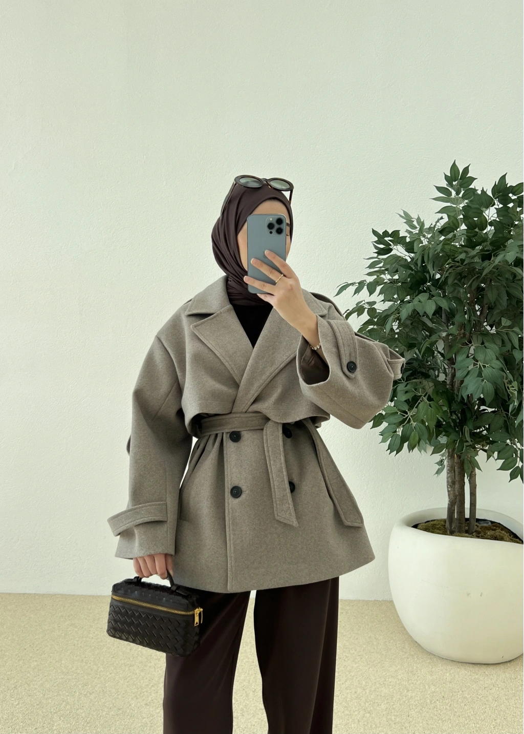 KIRÇILI KEMERLİ KAŞE CEKET ANTRASİT