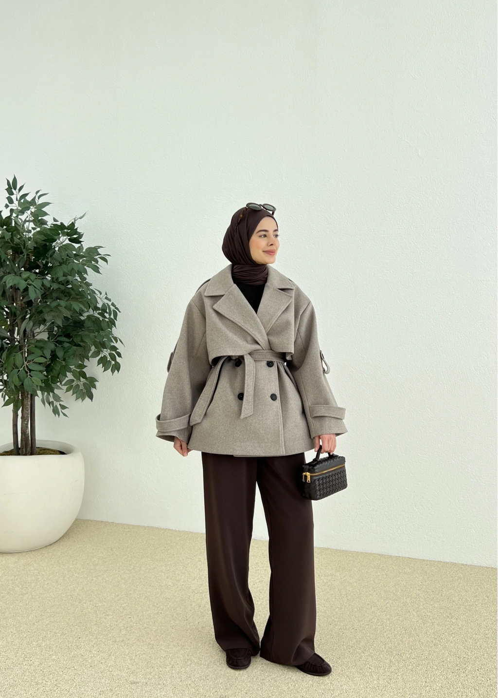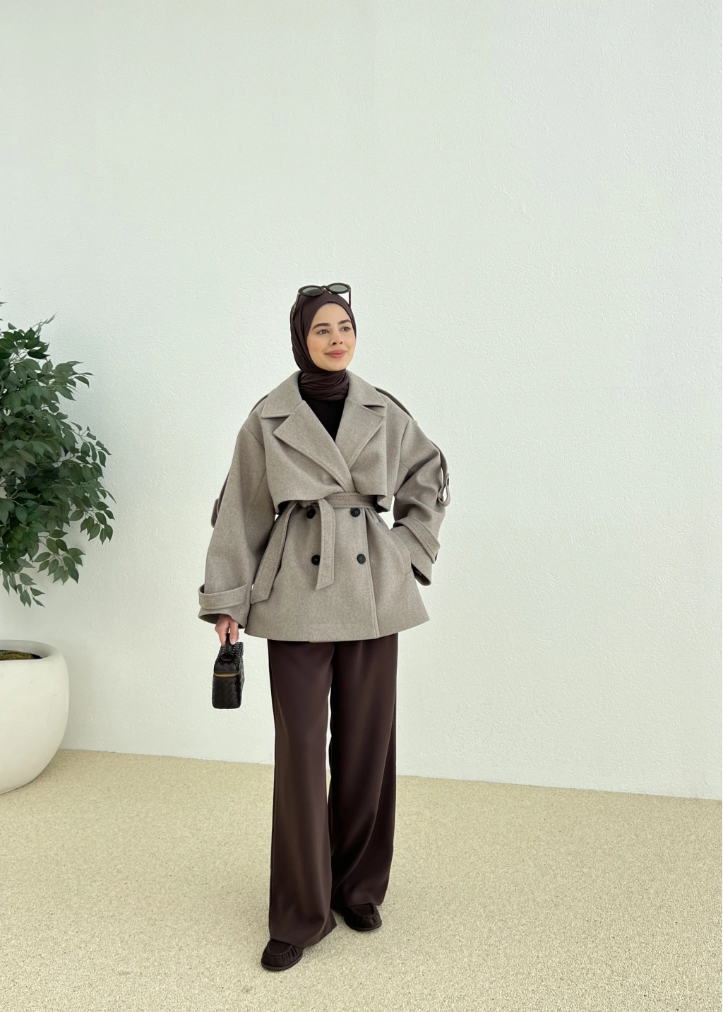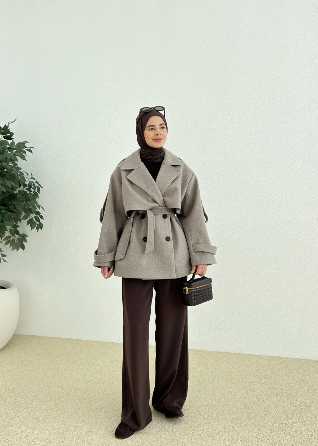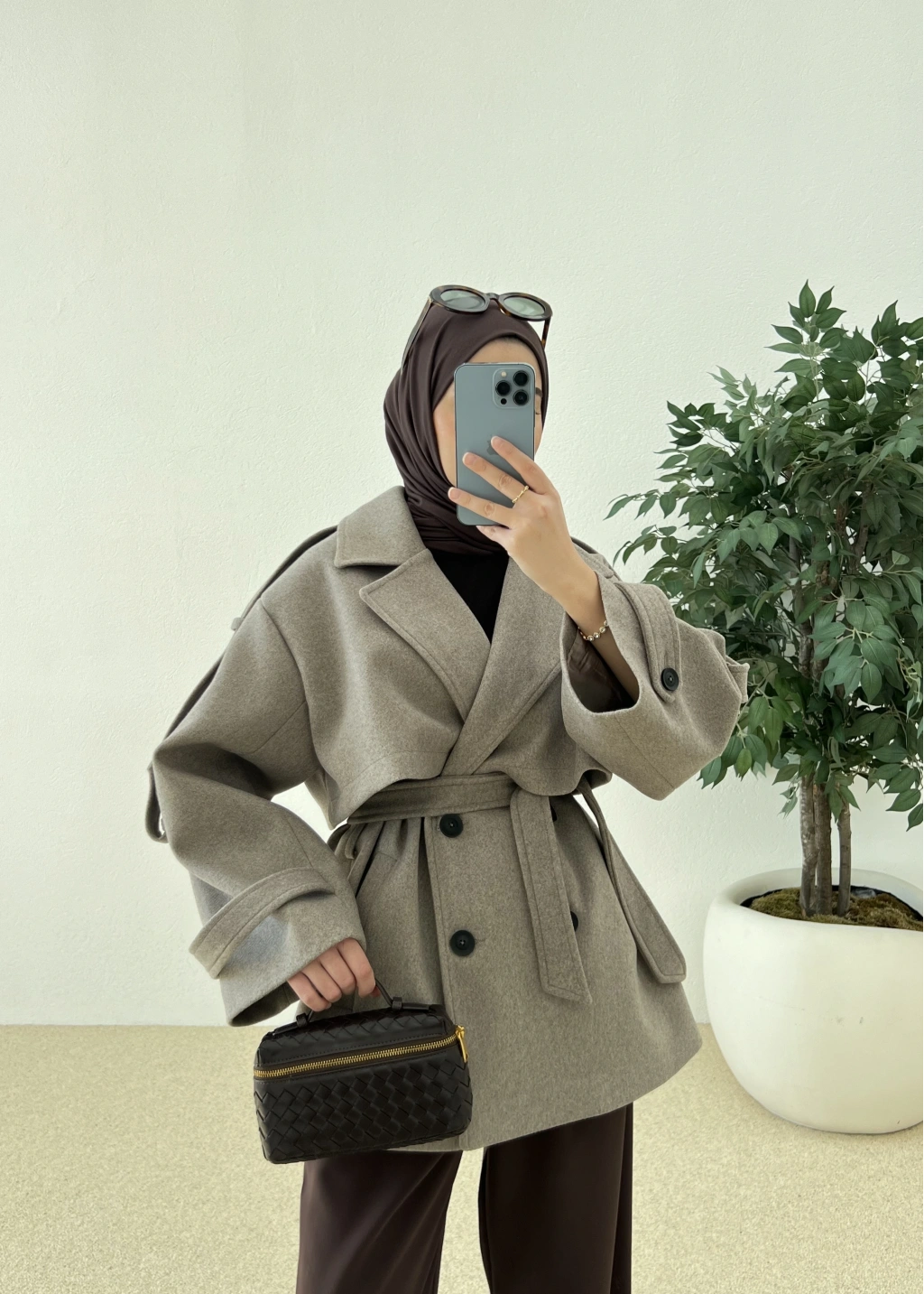 KIRÇILI KEMERLİ KAŞE CEKET ANTRASİT