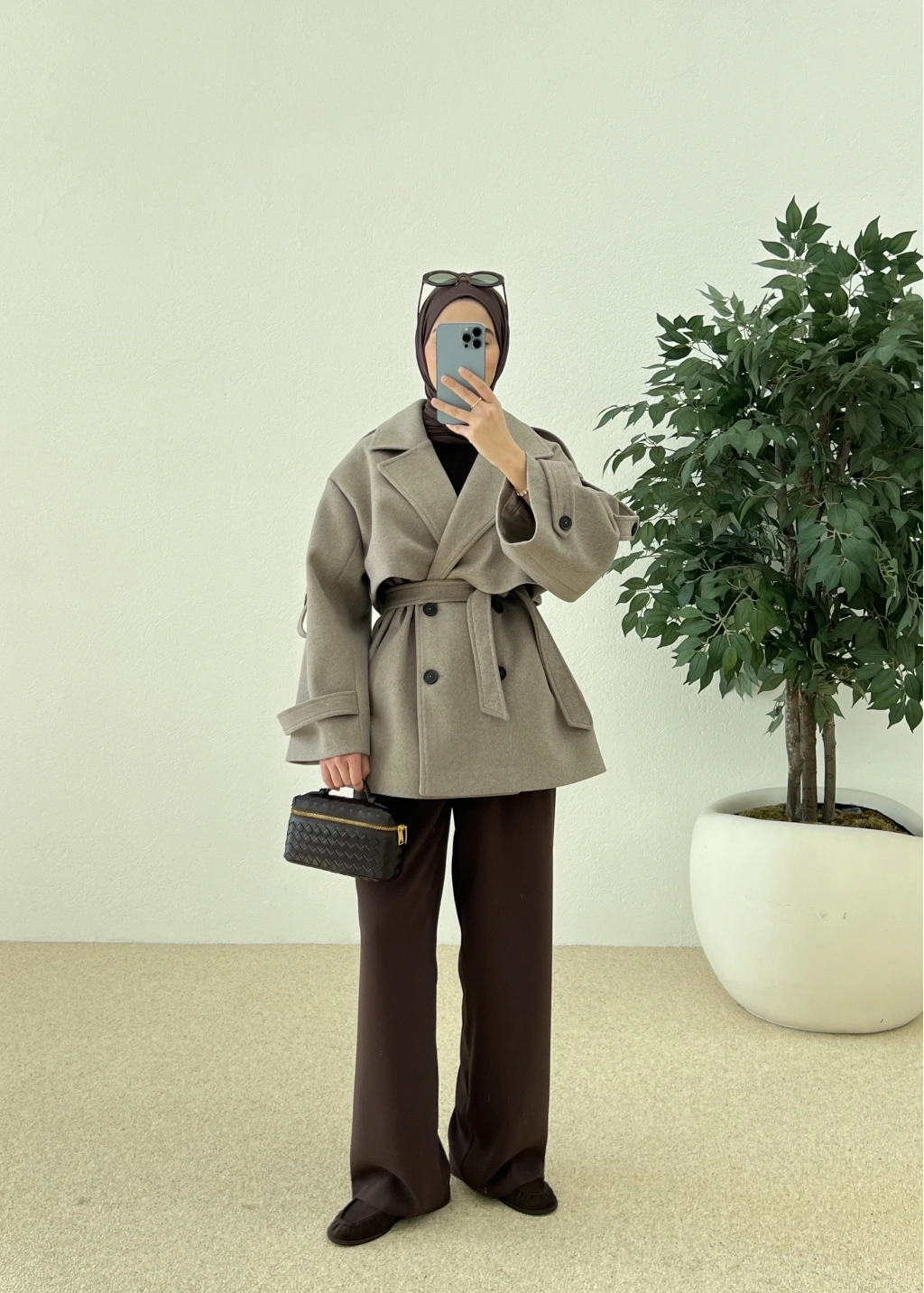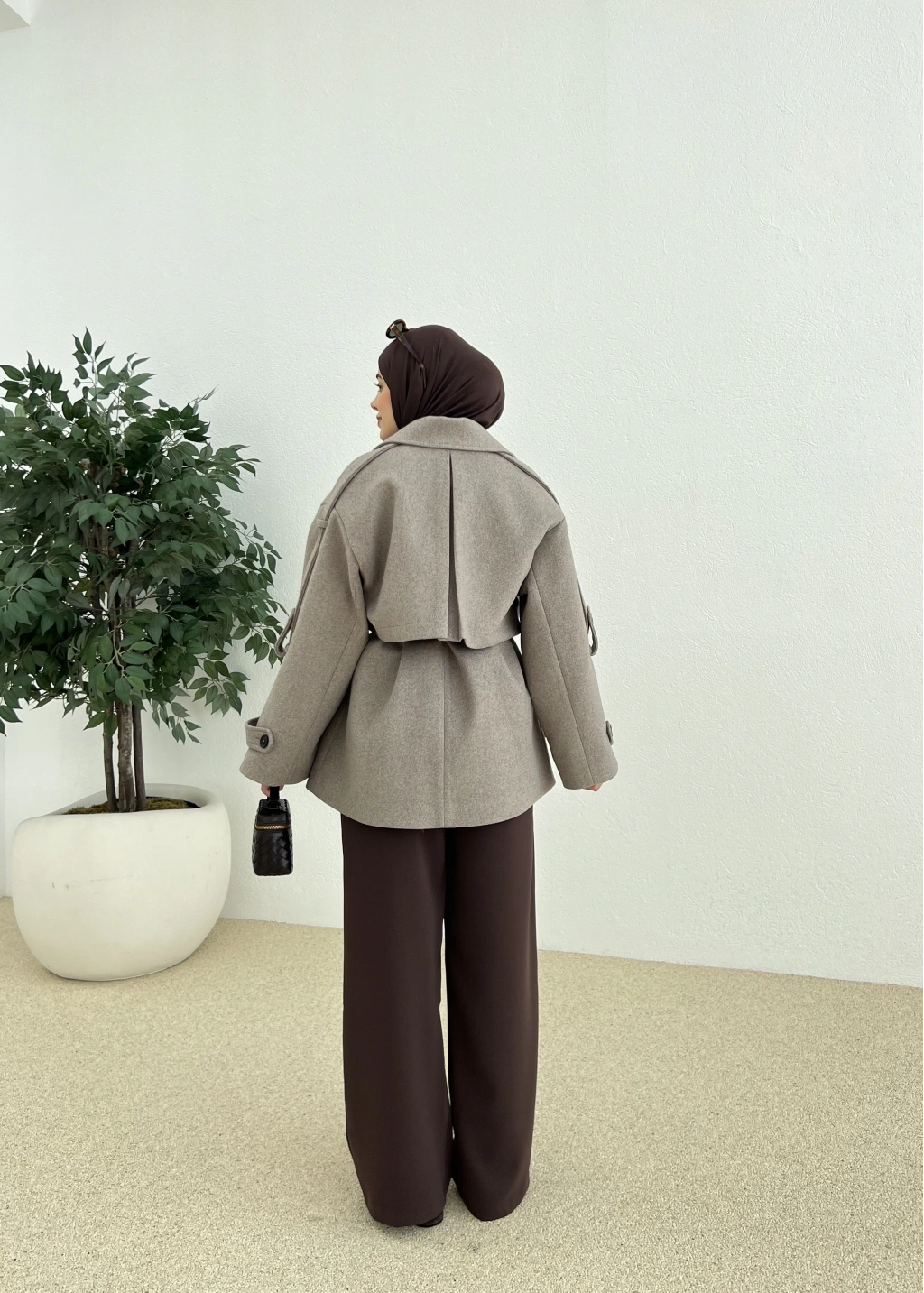 KIRÇILI KEMERLİ KAŞE CEKET bej