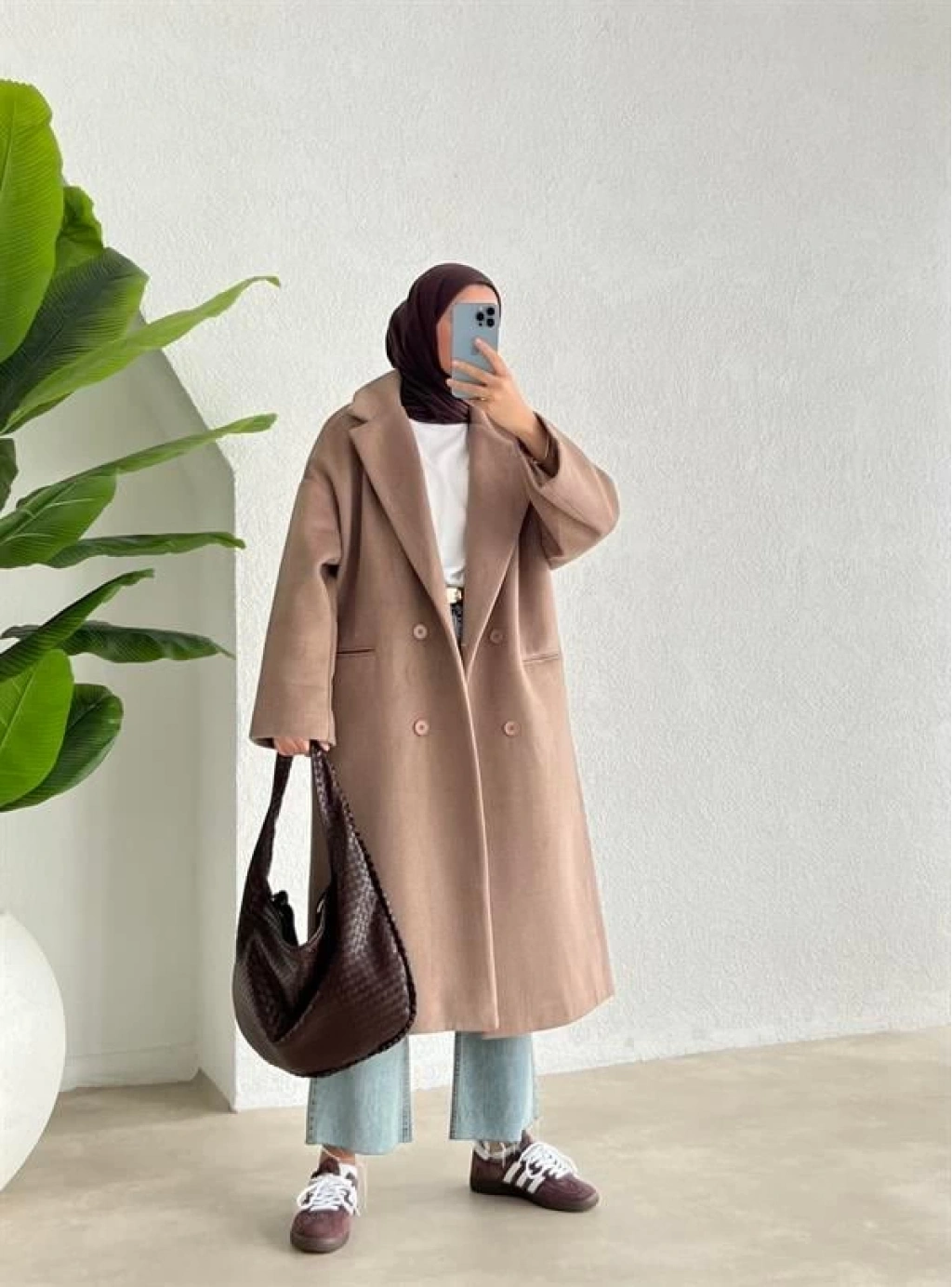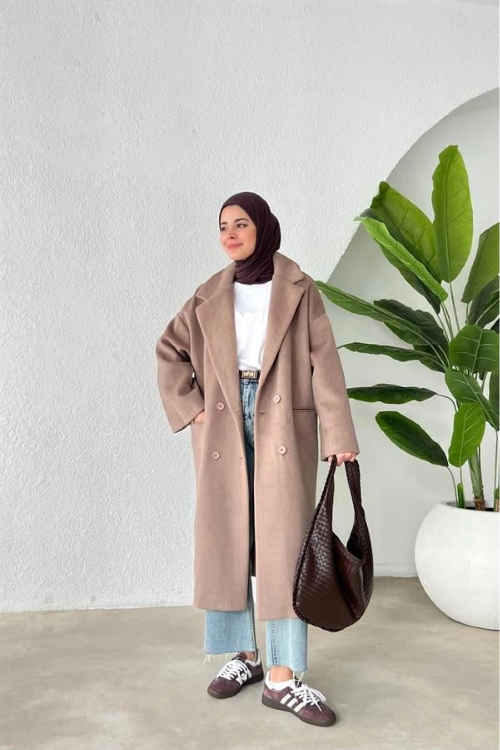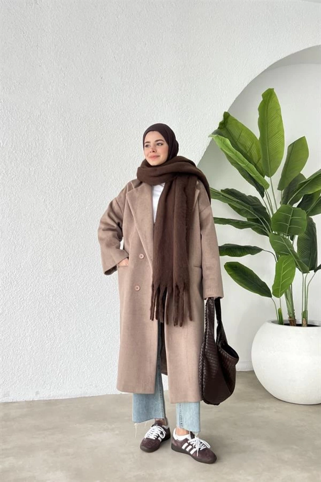 İTHAL KAŞE MNG KABAN DİK YAKA BEJ