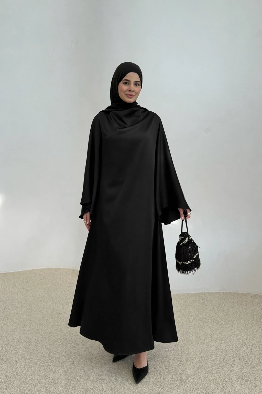_saten Elbise Siyah