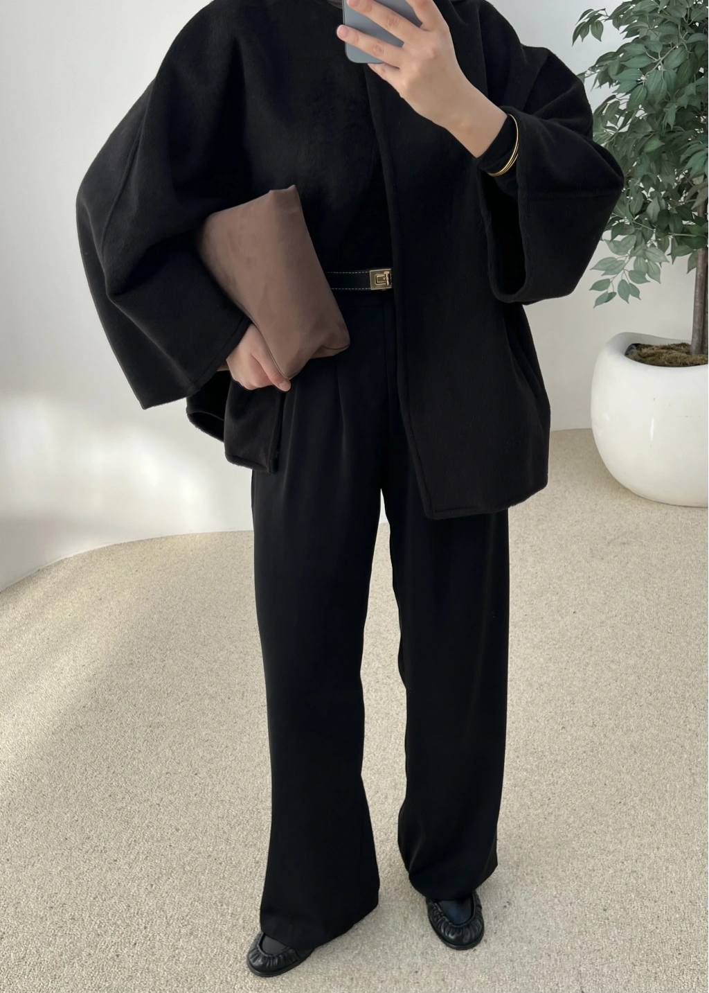 Oversize Premium Kalite Kaban Bej // Siyah Düğmeli