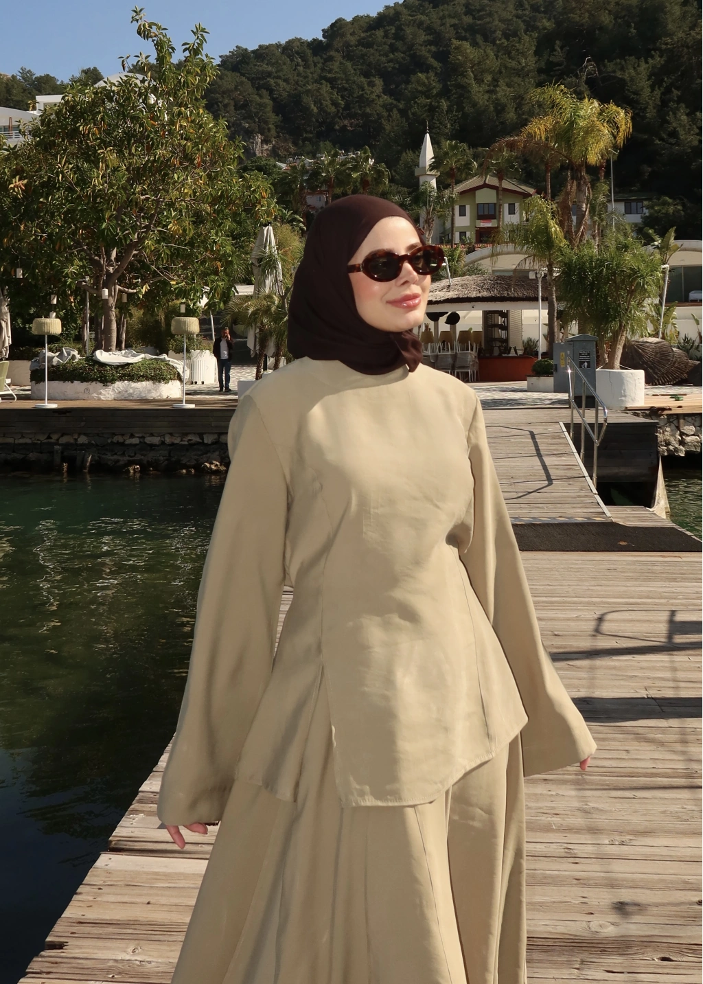 8977 MİNİK DÜĞME KETEN TAKIM kahve