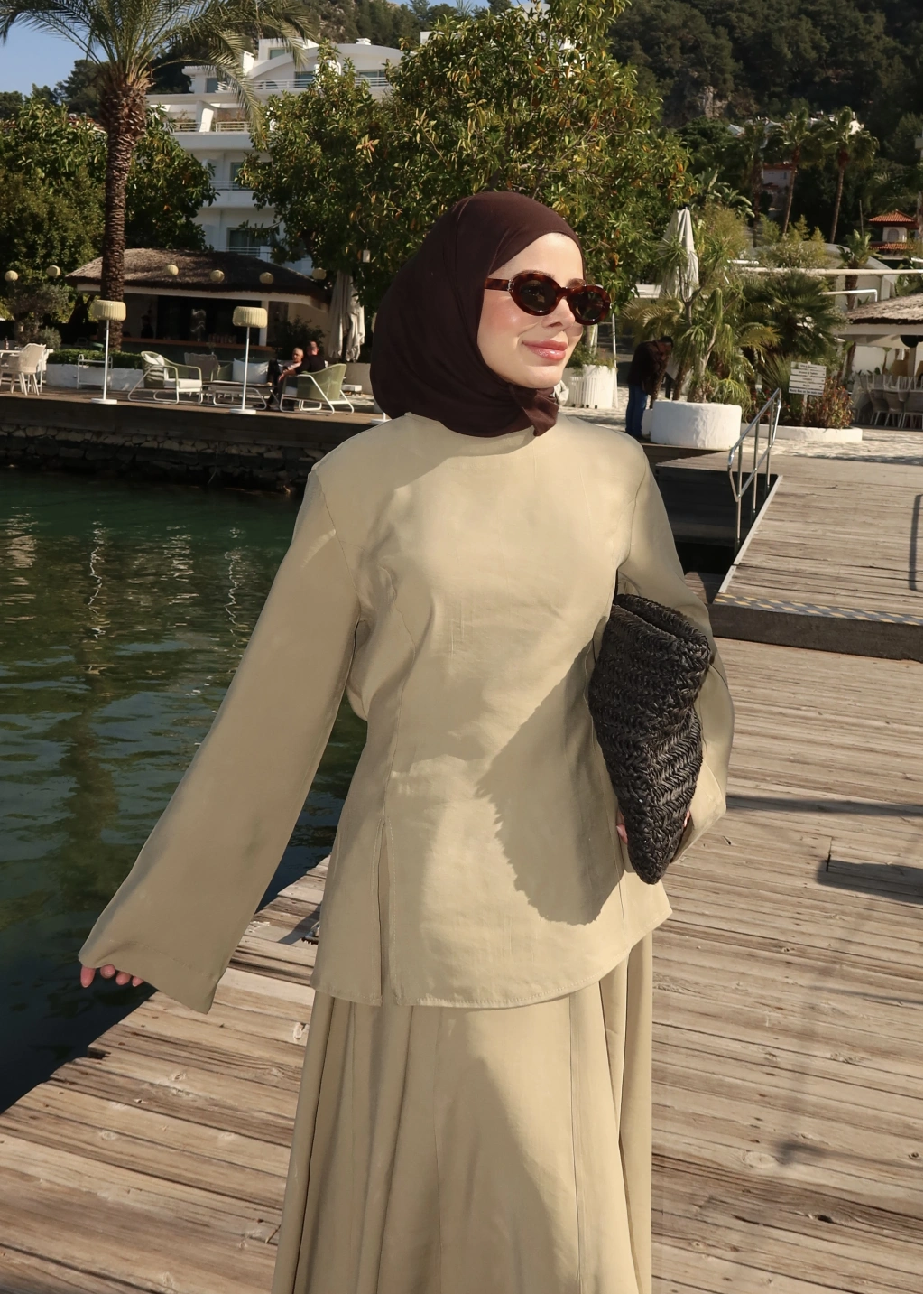 9029 BLUS ETEKLİ OVERSİZE TAKIM KAHVERENGİ