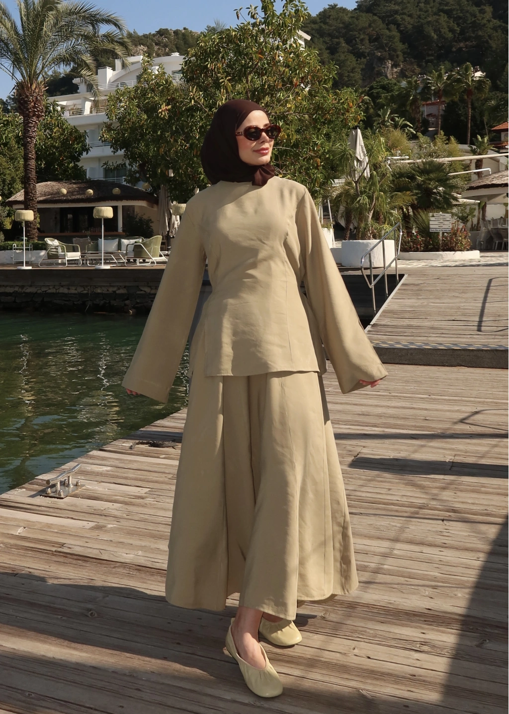 8999 ŞAL YAKA ETEKLİ KETEN TAKIM kahve