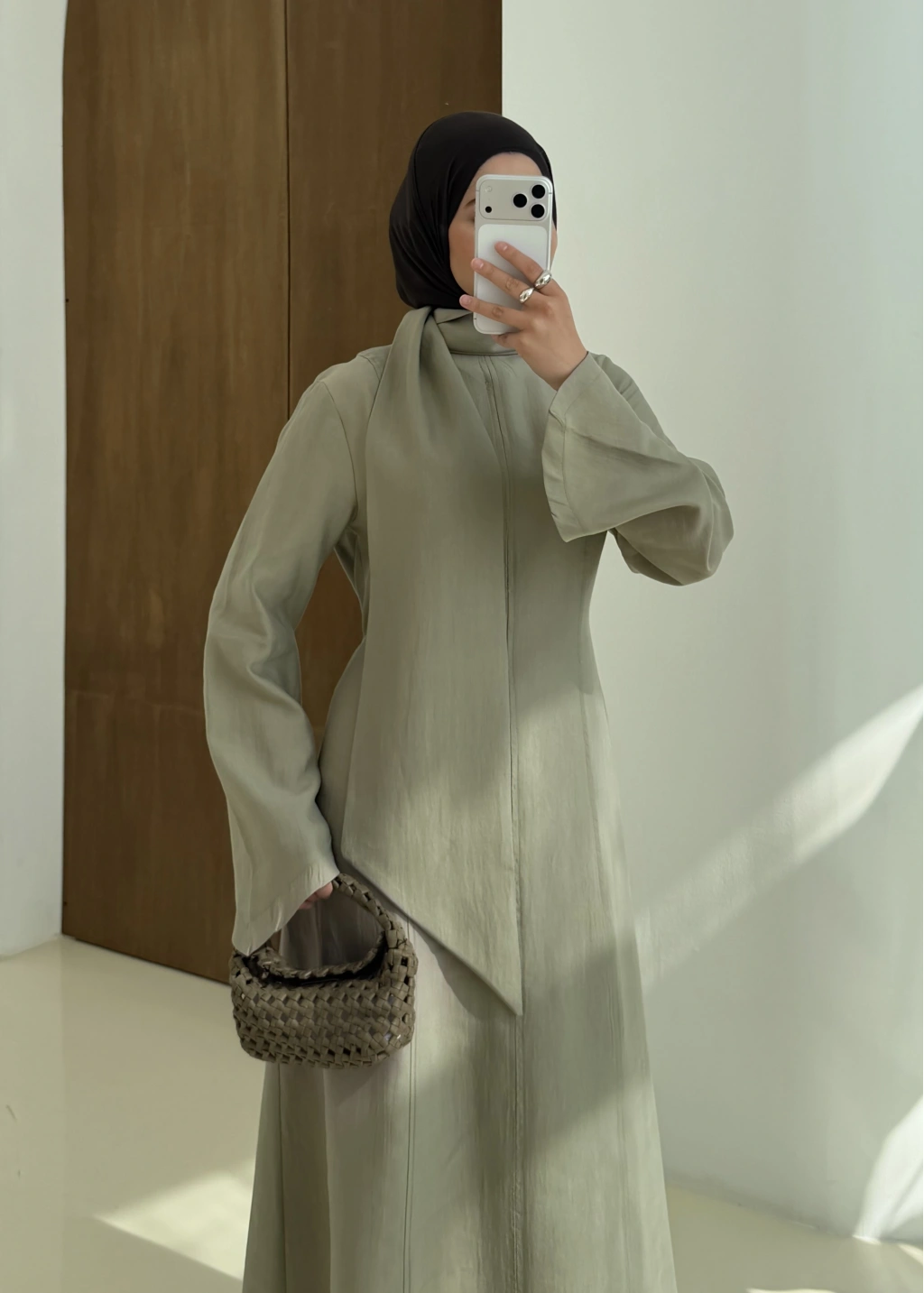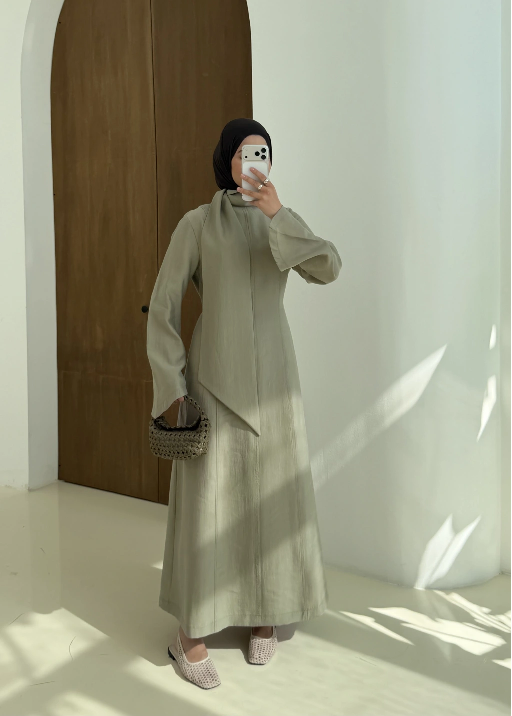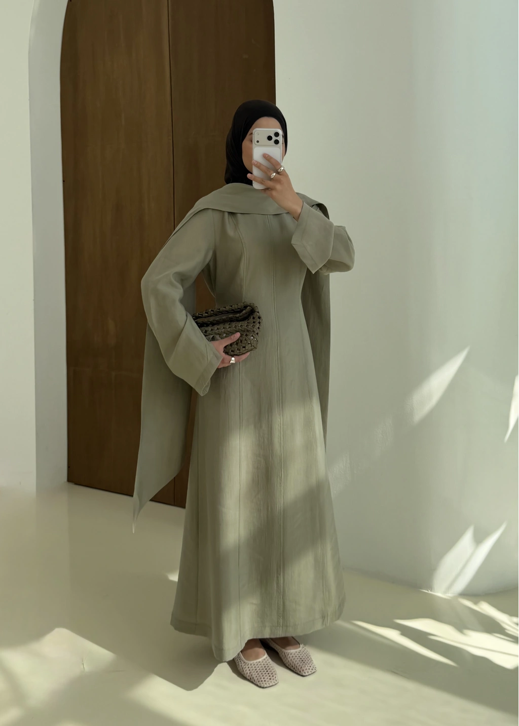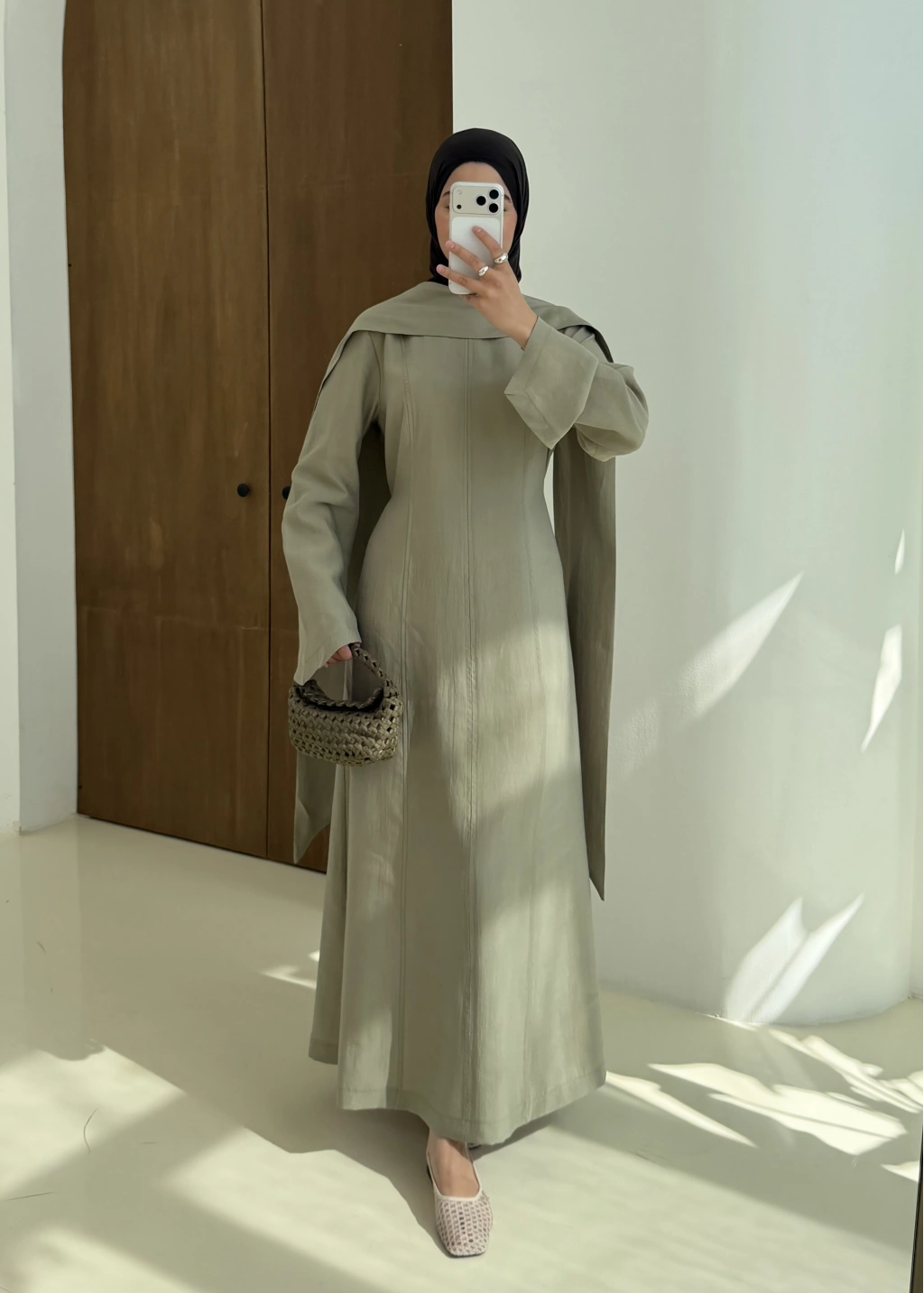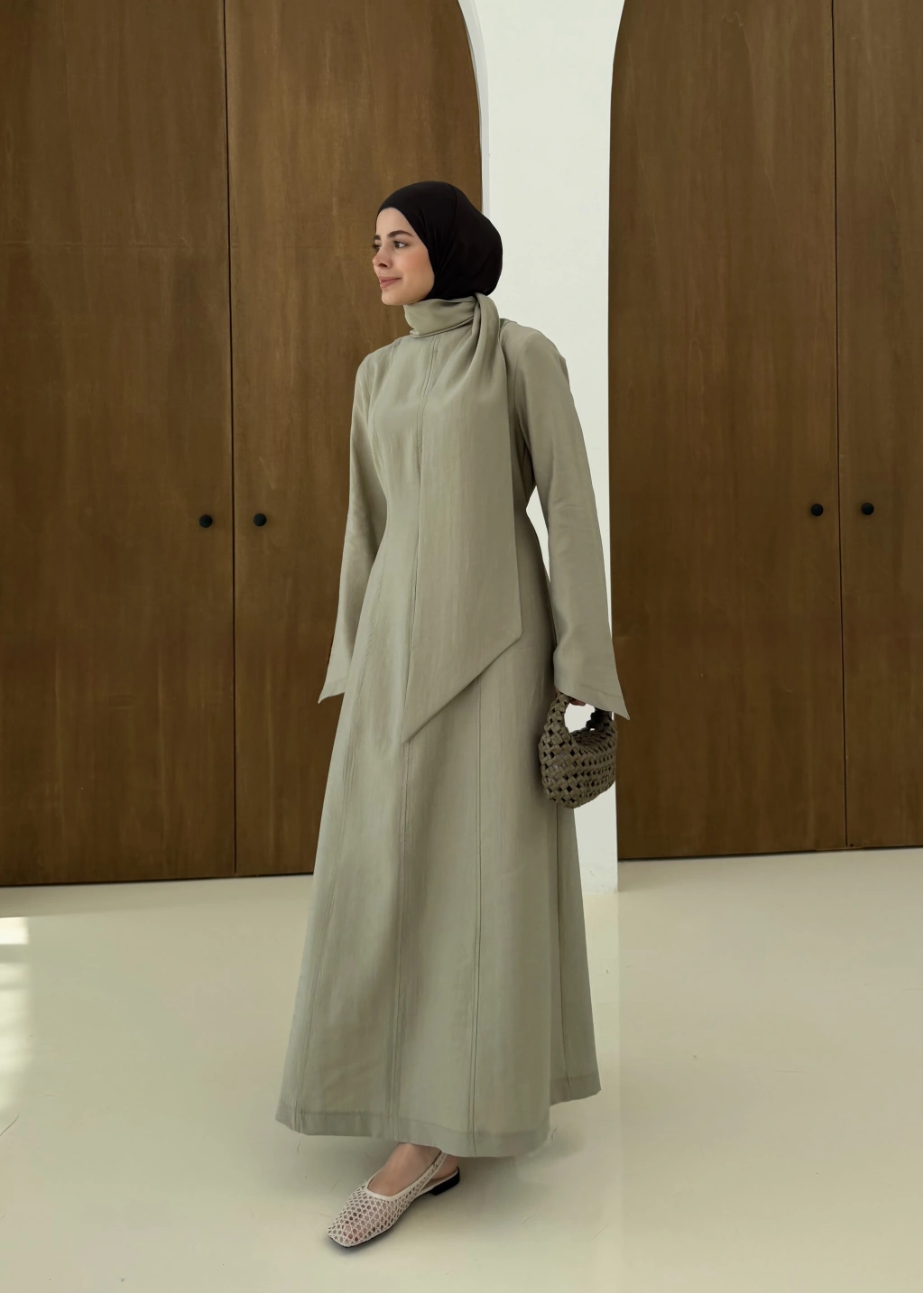 001 DÜĞMELİ şalı ŞİFON ABAYA mint