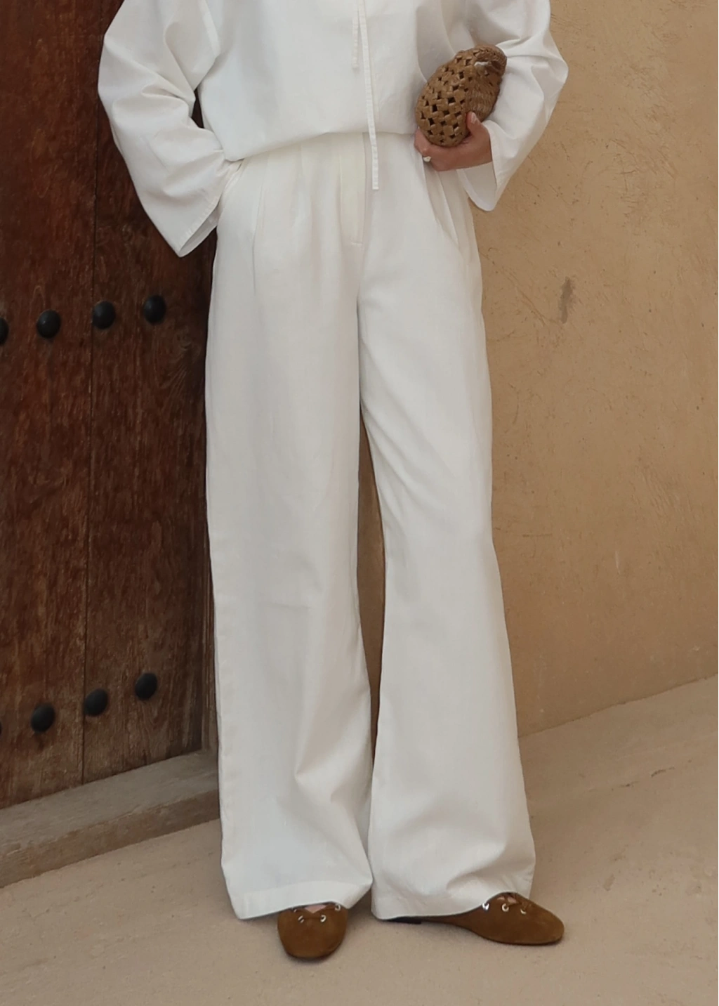 3909 %100 Pamuk İçi Astarlı Palazzo Ekru