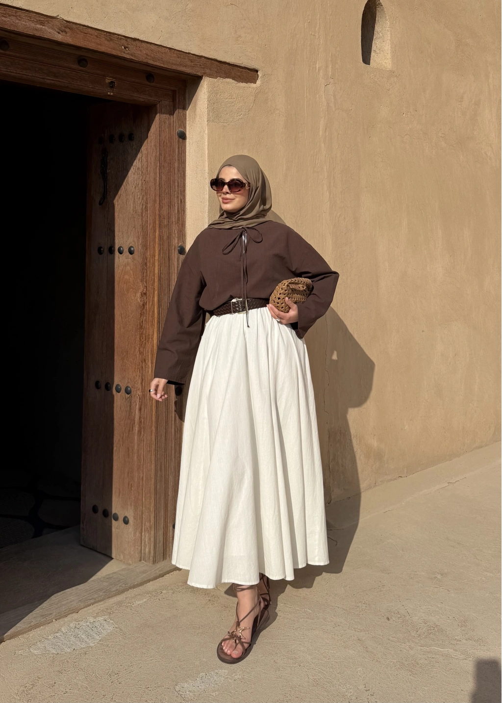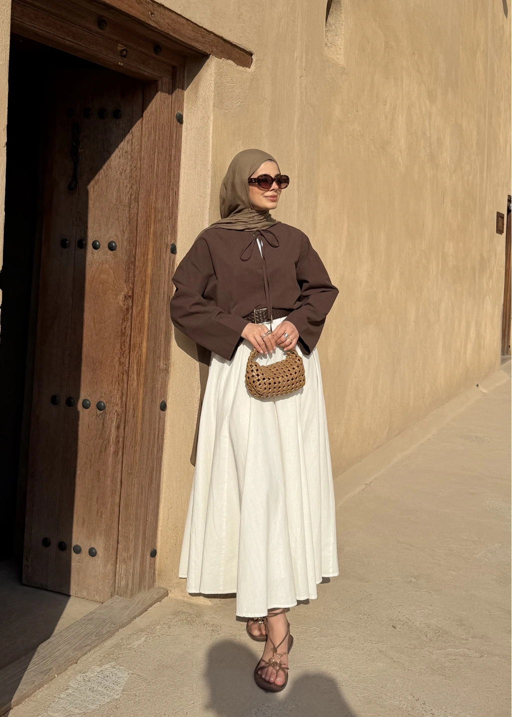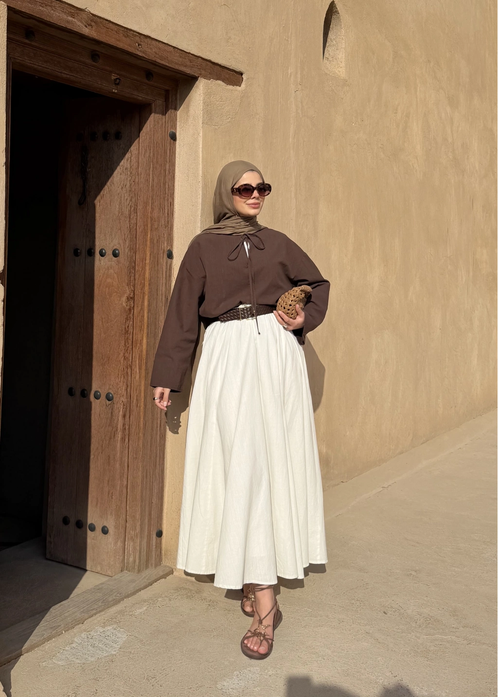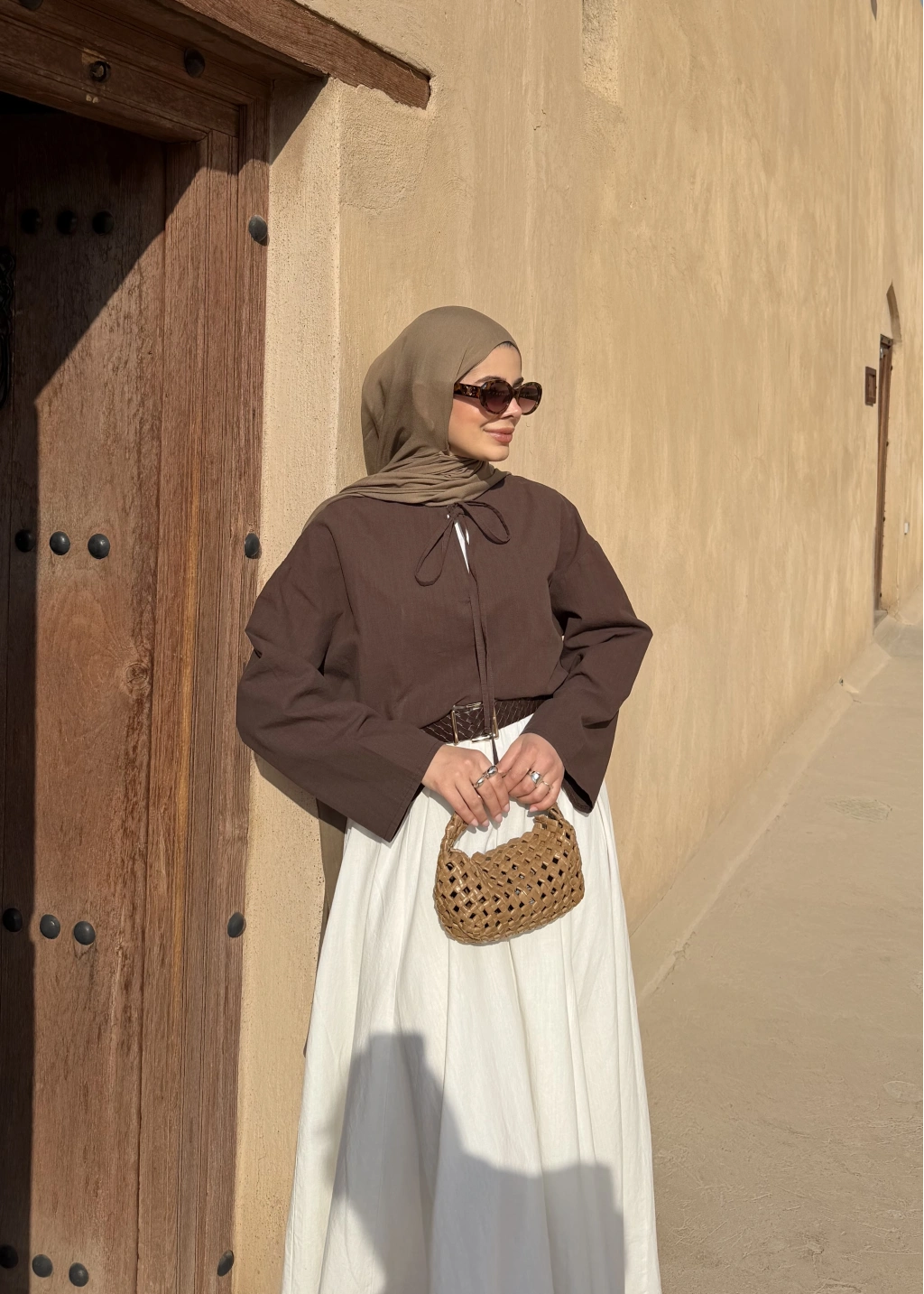 8999 ŞAL YAKA ETEKLİ KETEN TAKIM kahve