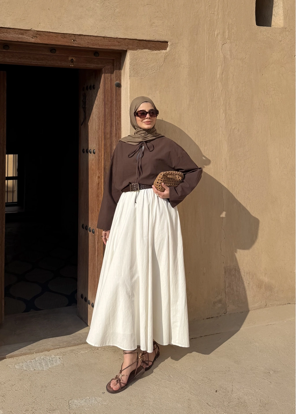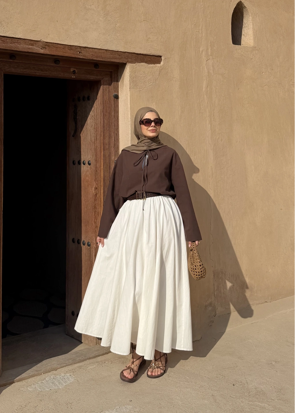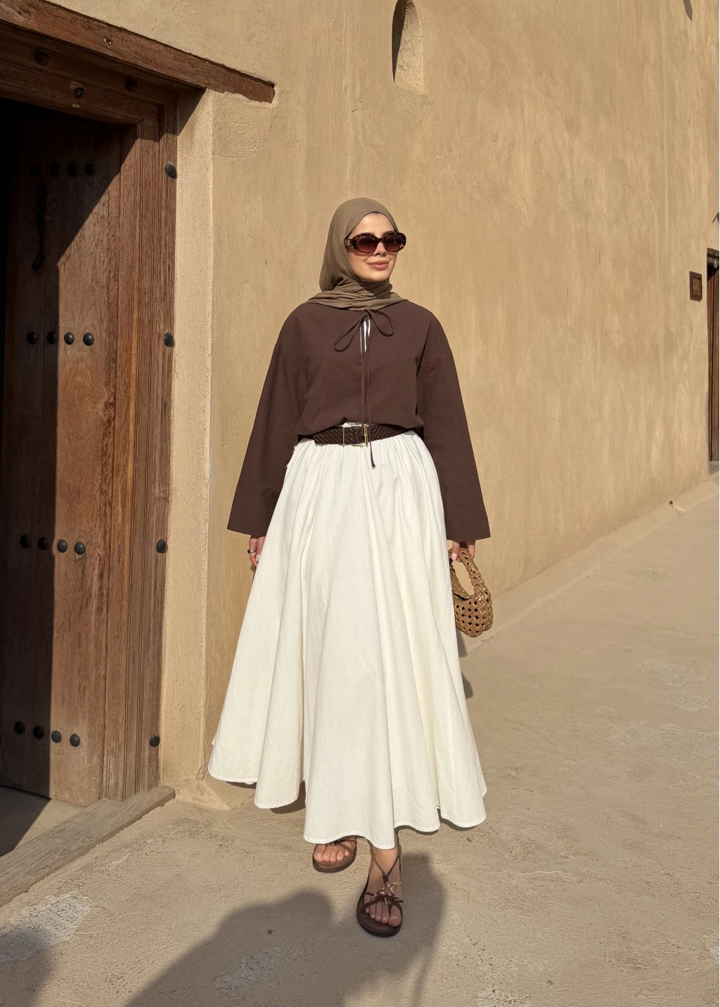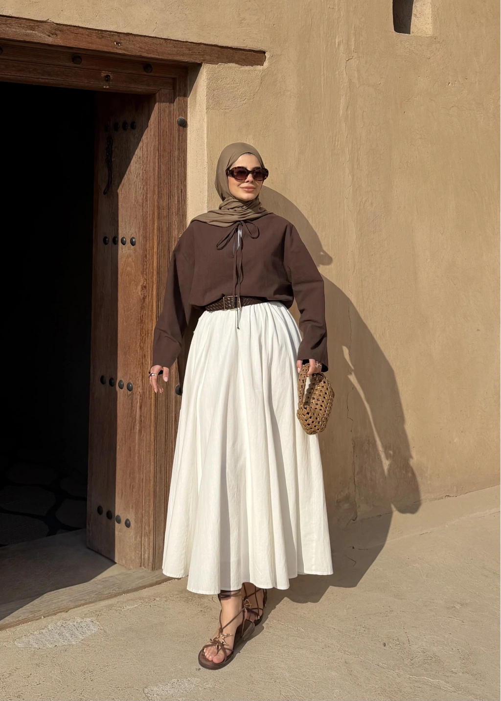 8999 ŞAL YAKA ETEKLİ KETEN TAKIM kahve