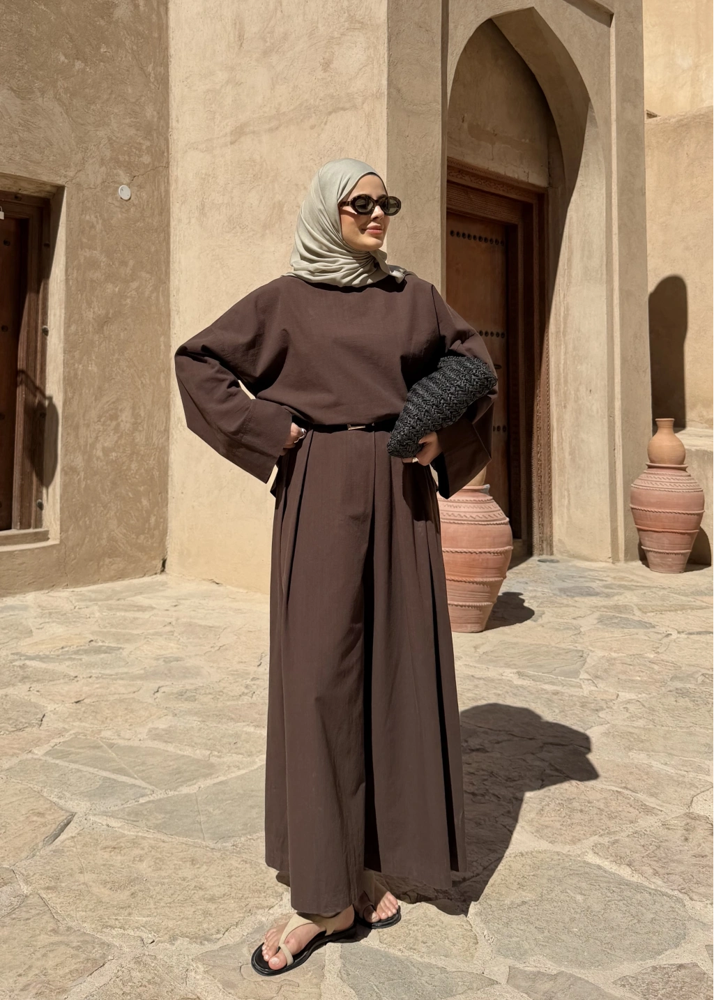 9029 BLUS ETEKLİ OVERSİZE TAKIM KAHVERENGİ