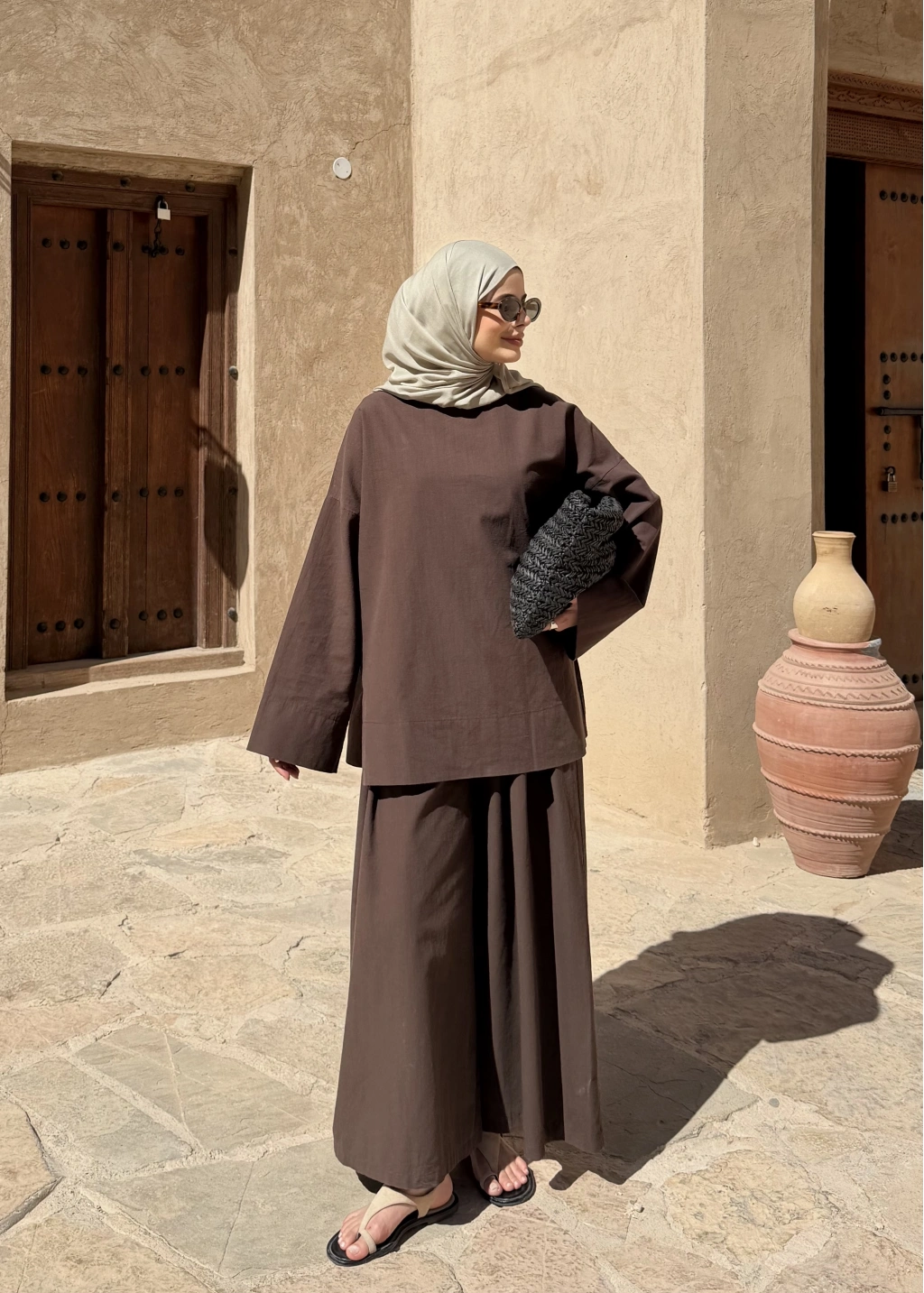 8999 ŞAL YAKA ETEKLİ KETEN TAKIM kahve