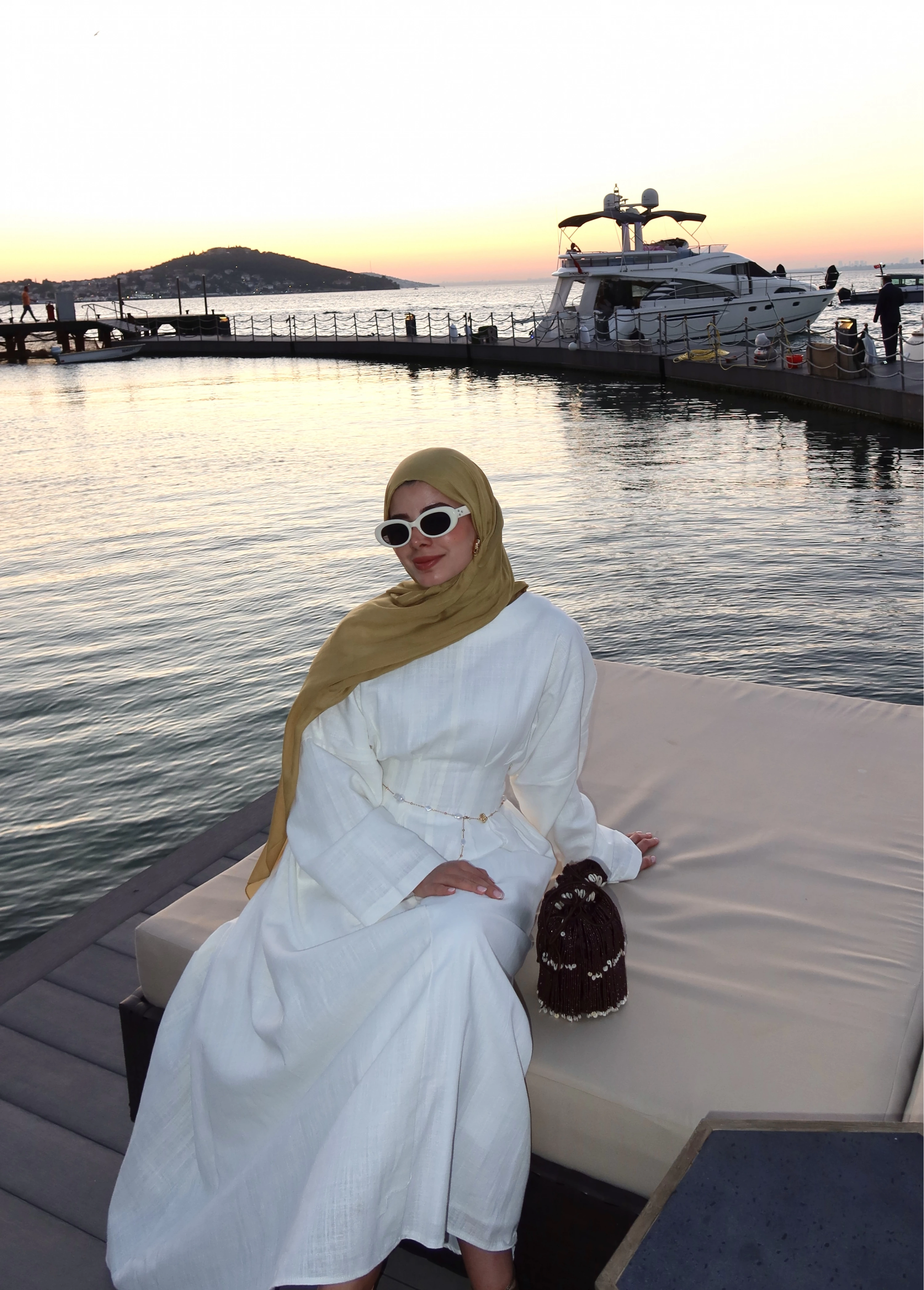 İSPANYOL KOL VUAL ELBİSE BEYAZ