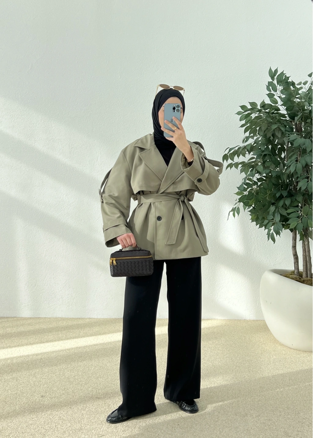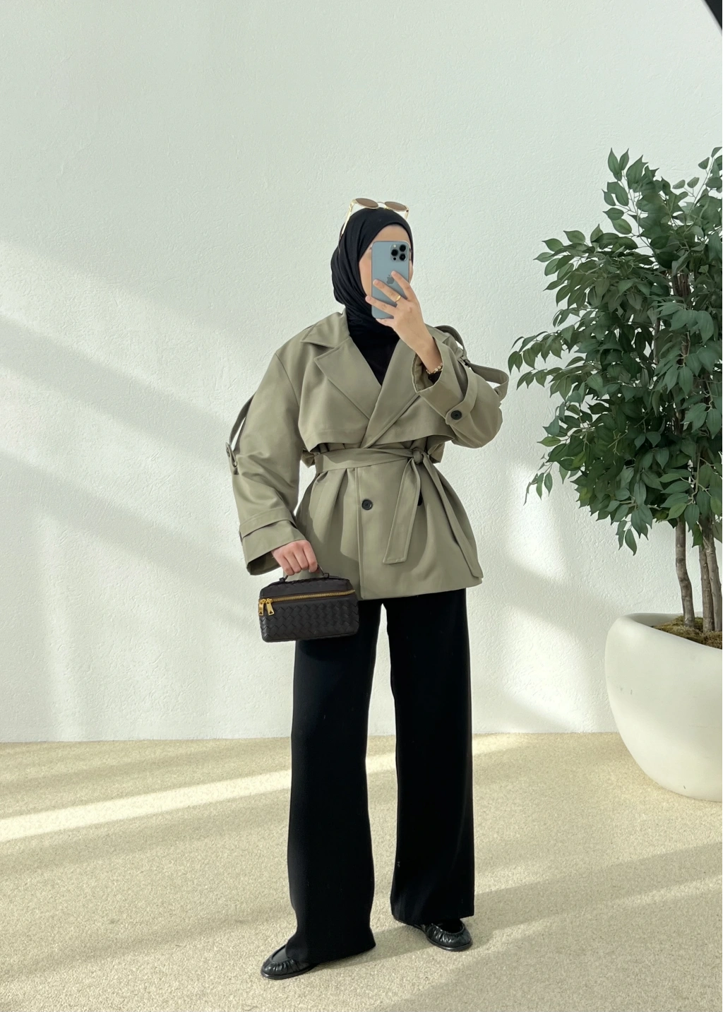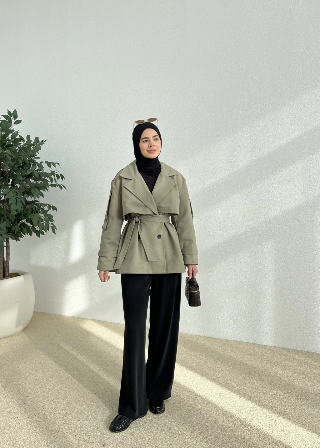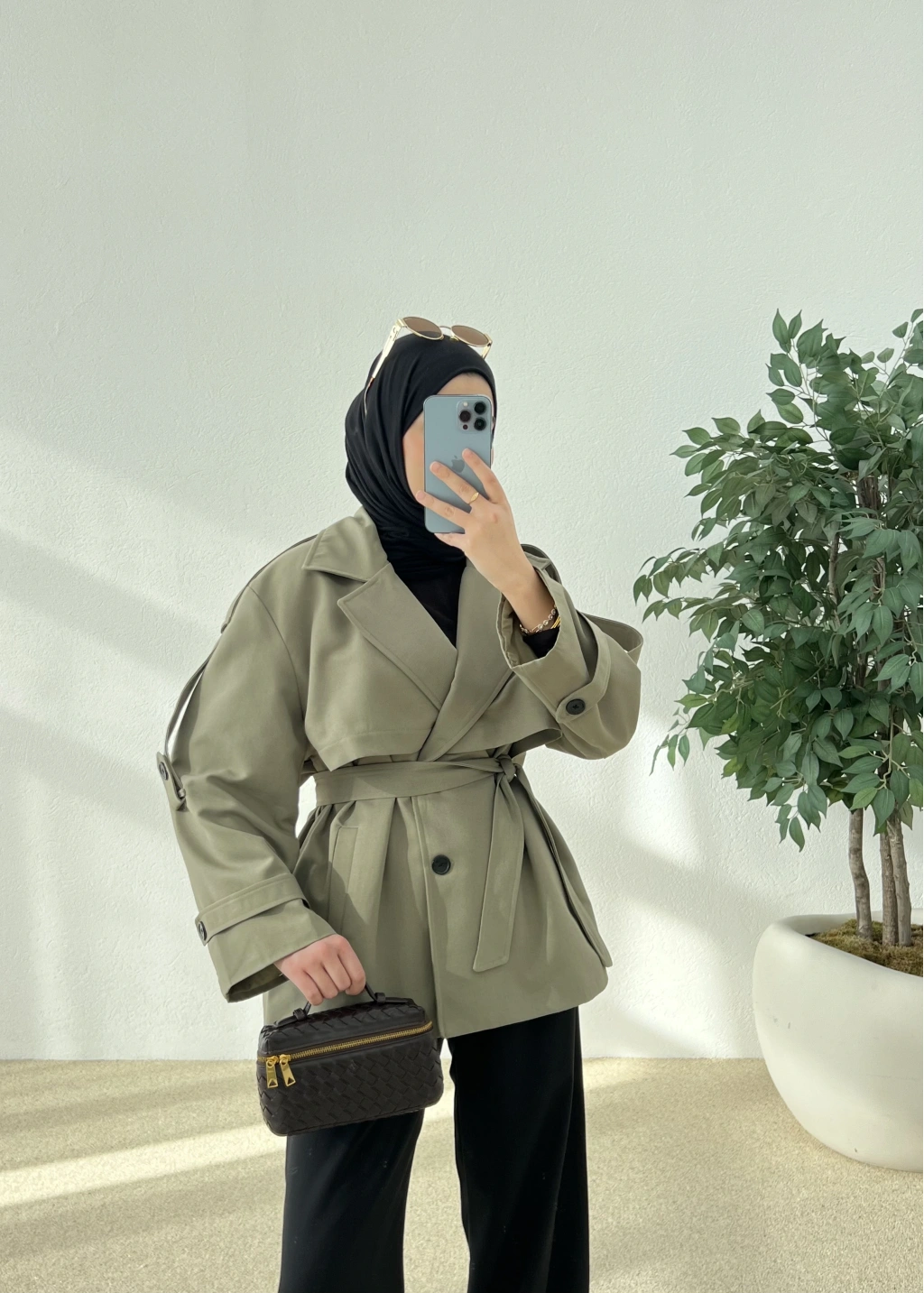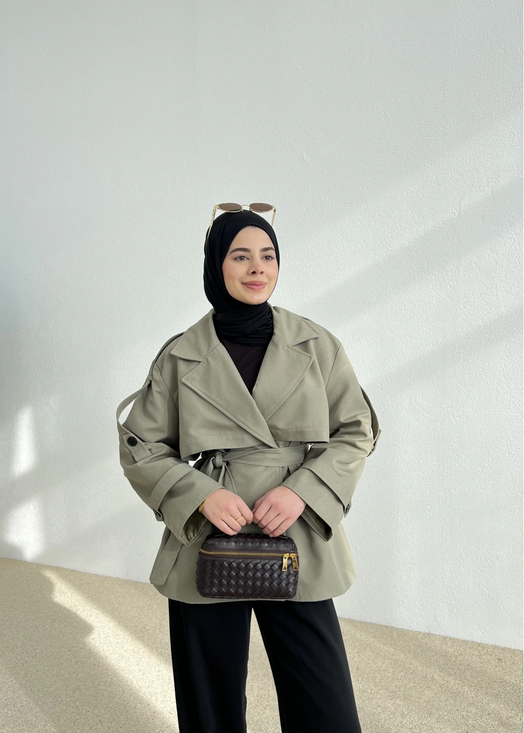 KIRÇILI KEMERLİ KAŞE CEKET ANTRASİT