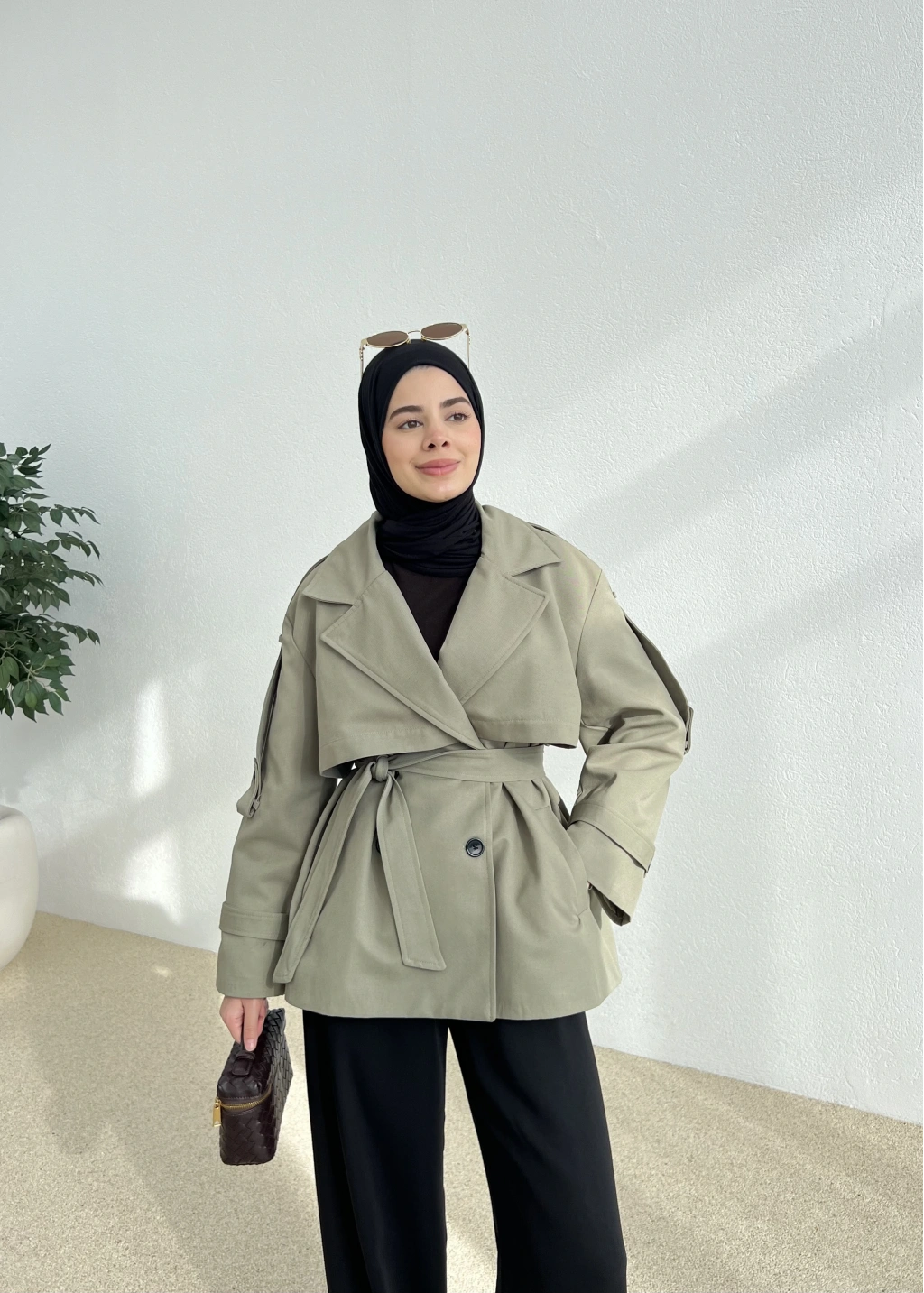KIRÇILI KEMERLİ KAŞE CEKET bej