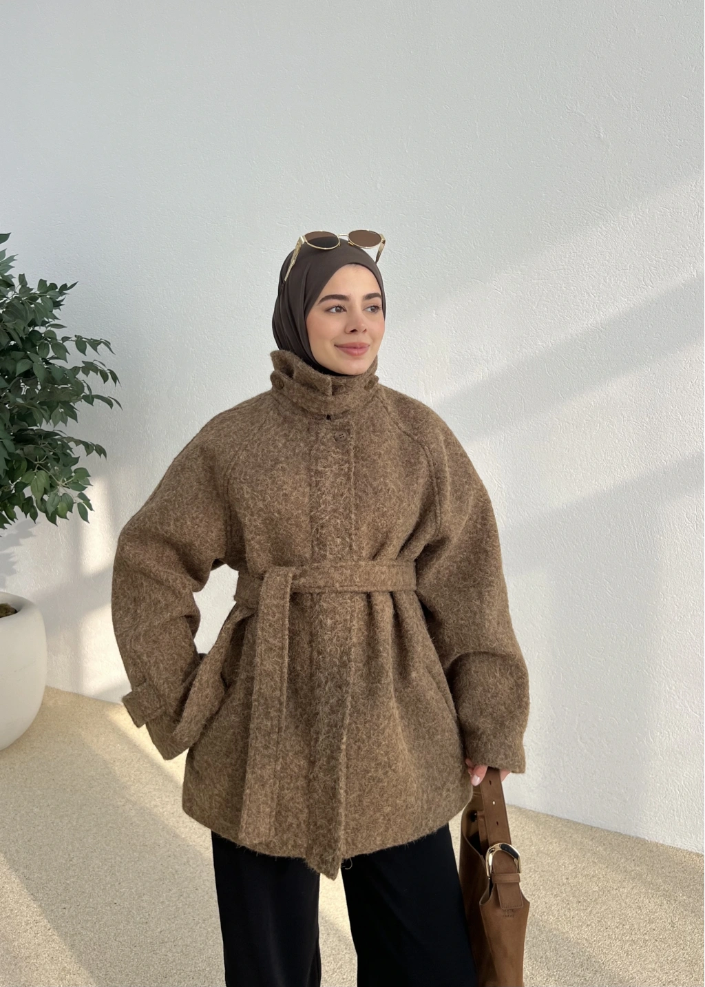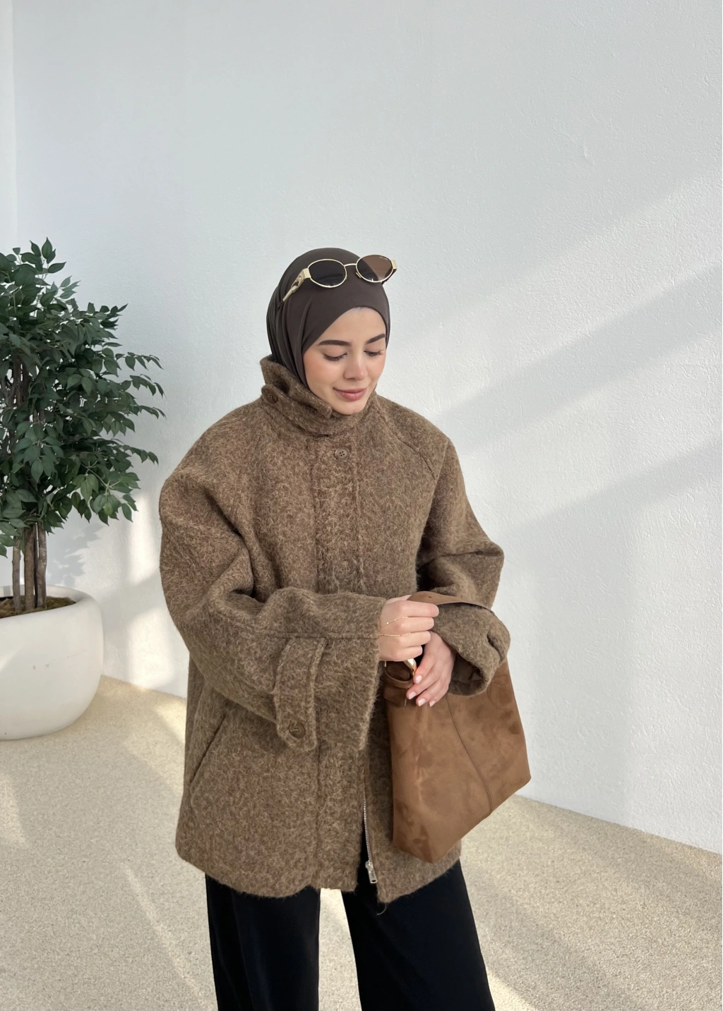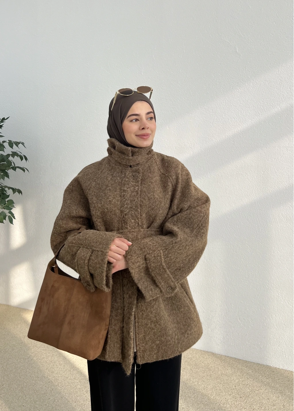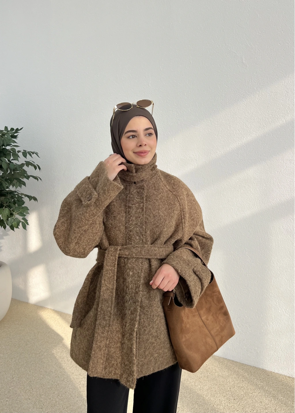 PREMİUM İTHAL KAŞE KABAN DİK YAKA kahve