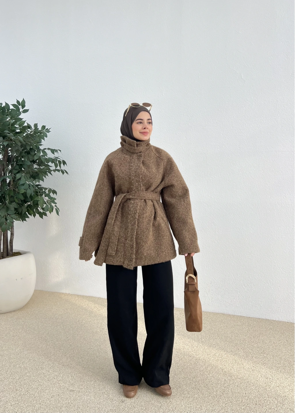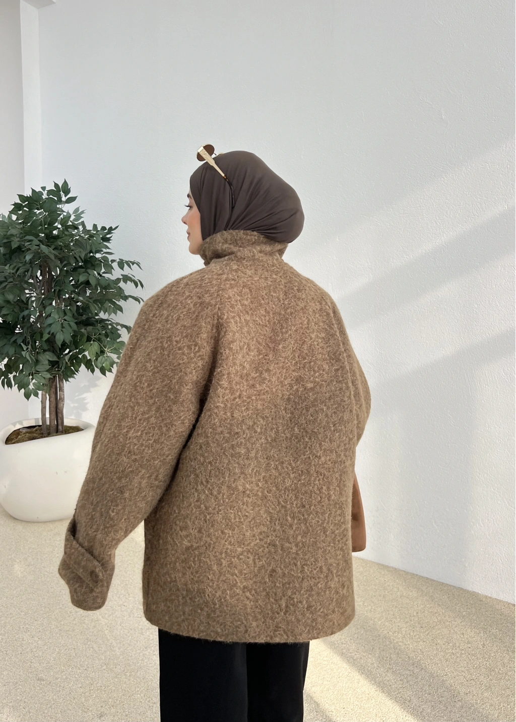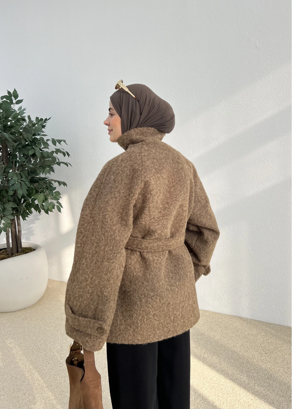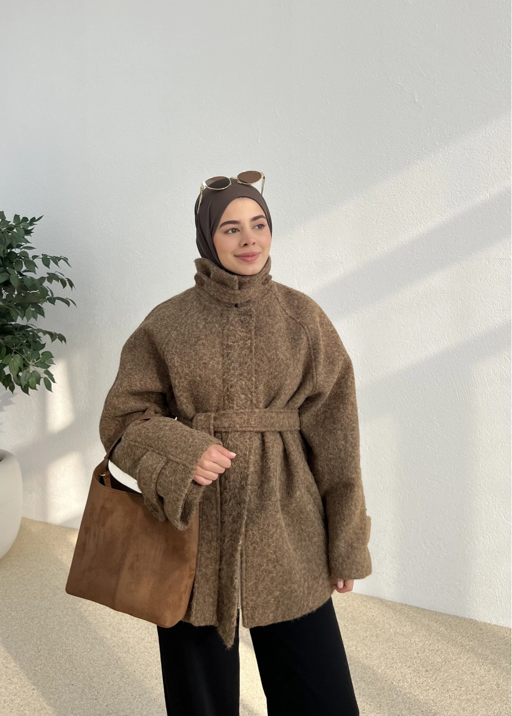 PREMİUM İTHAL KAŞE KABAN DİK YAKA kahve