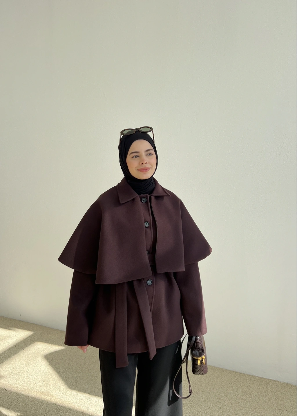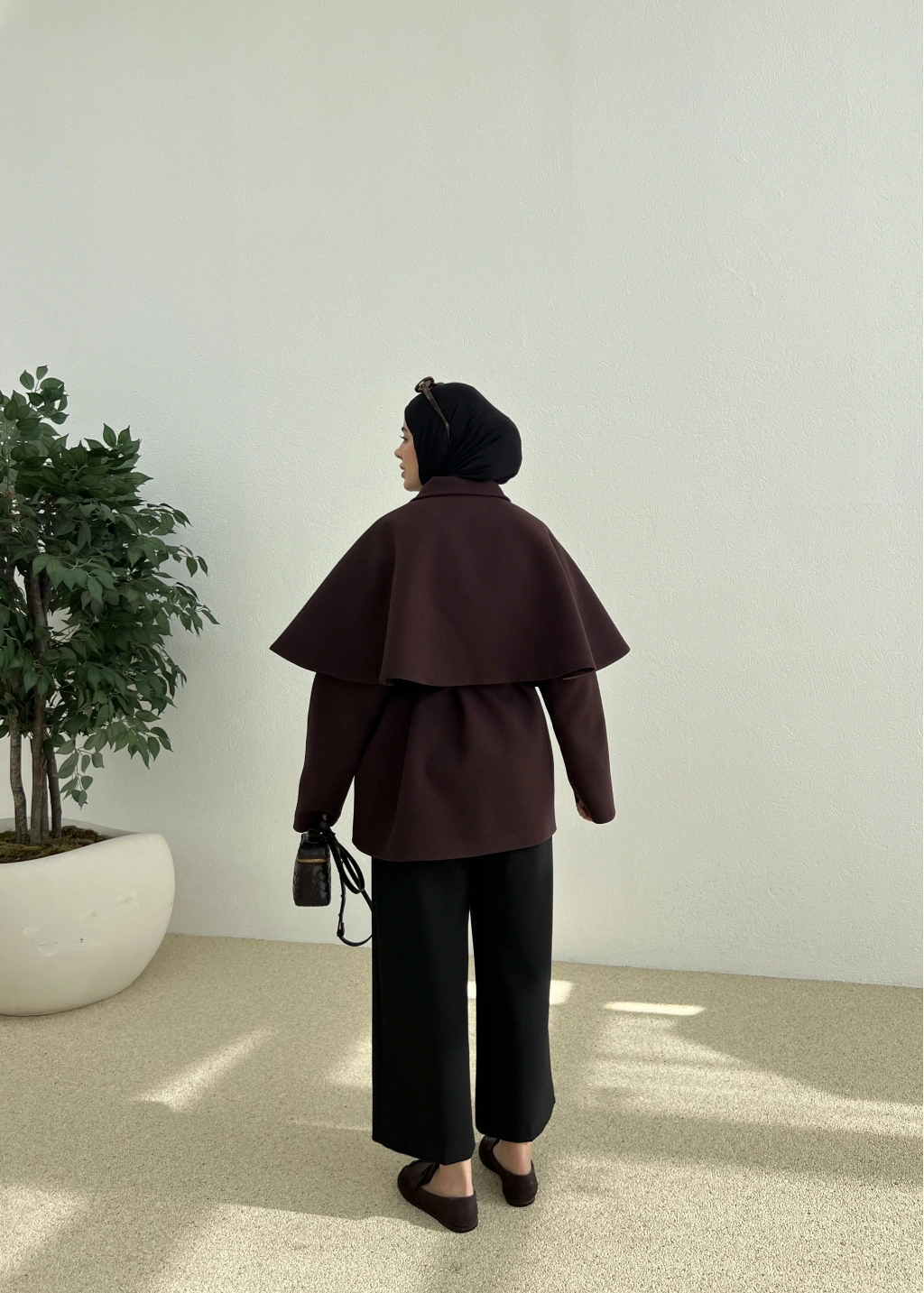 PREMİUM İTHAL KAŞE KABAN DİK YAKA kahve